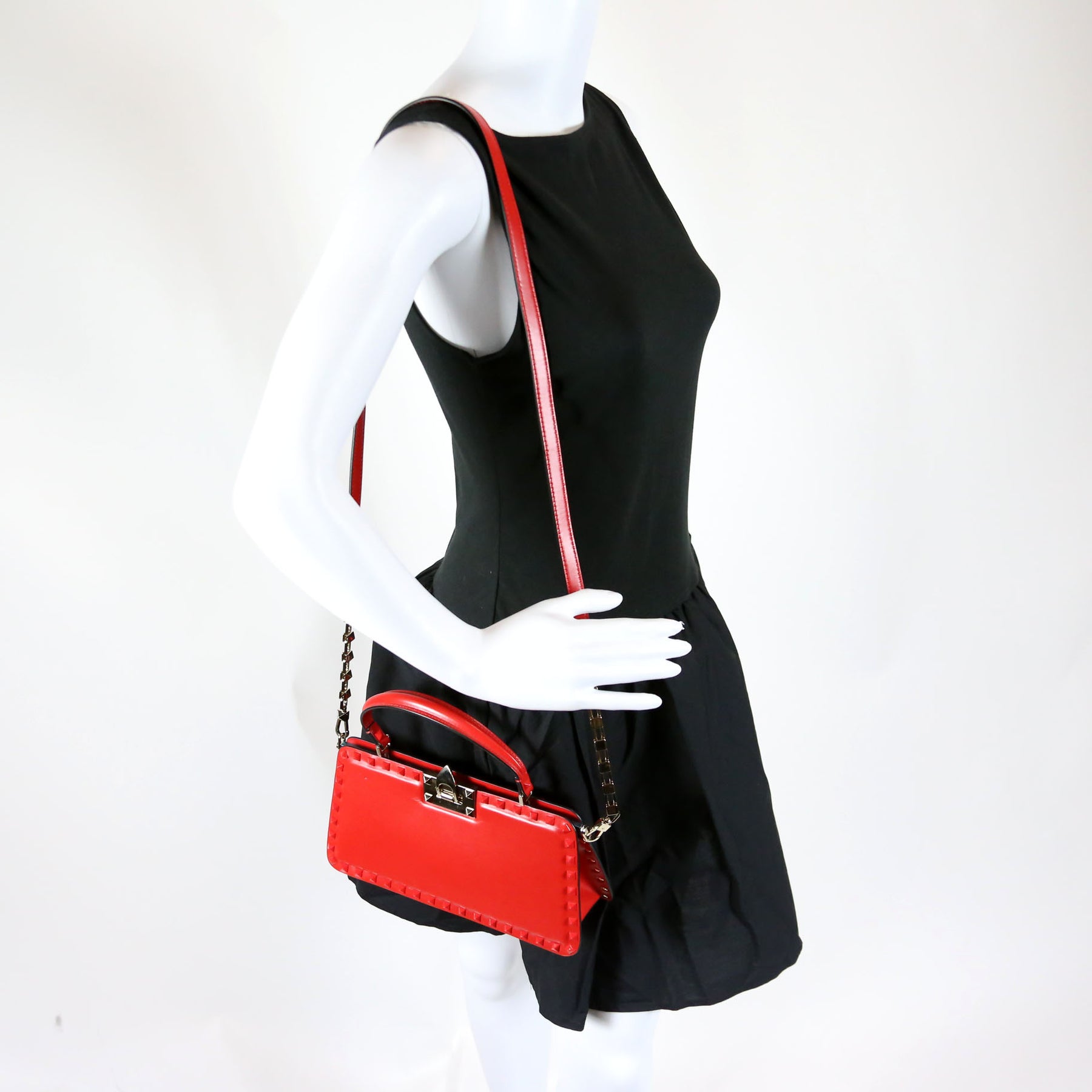 This pre-owned Valentino Rockstud Top Handle Clutch is guaranteed 100% authentic.