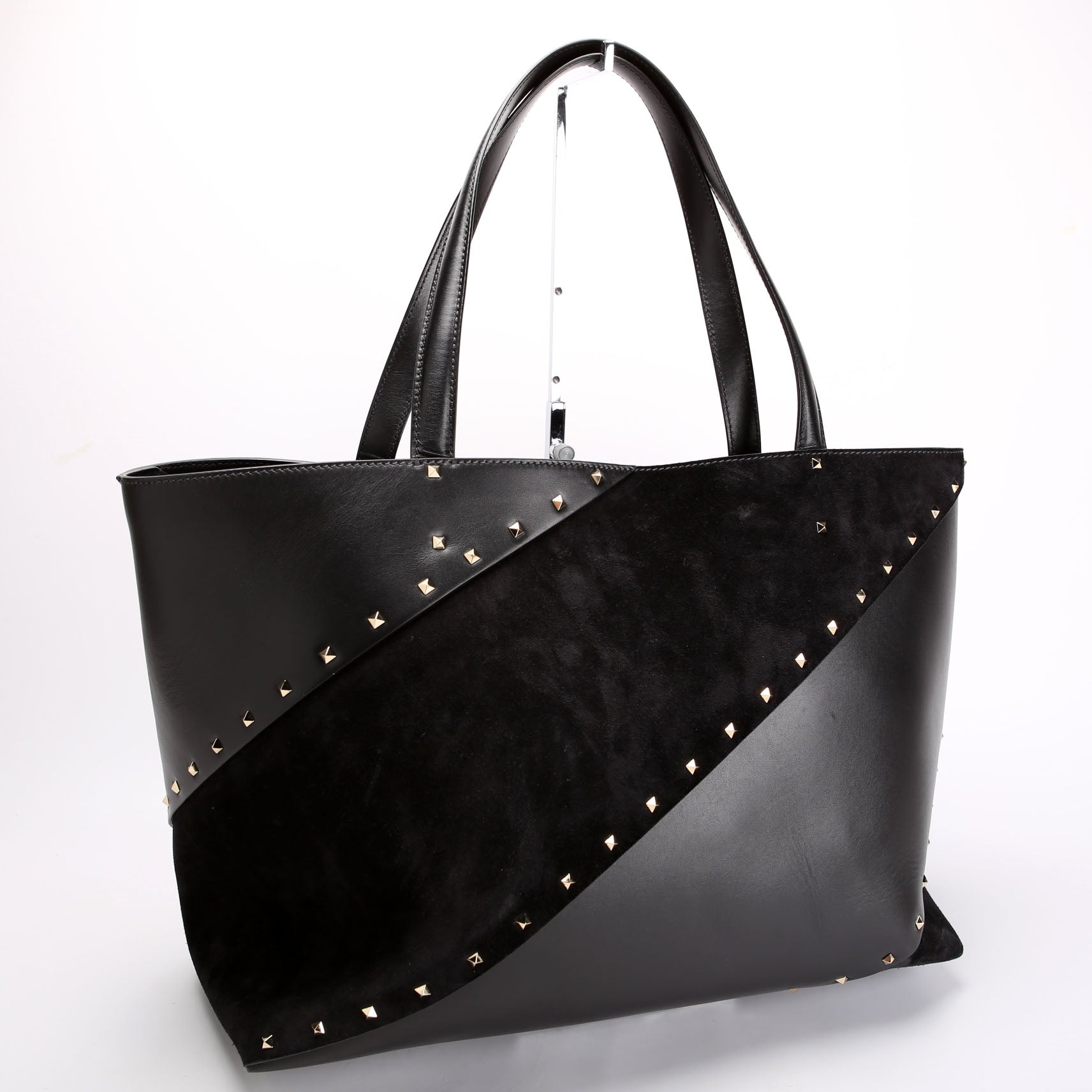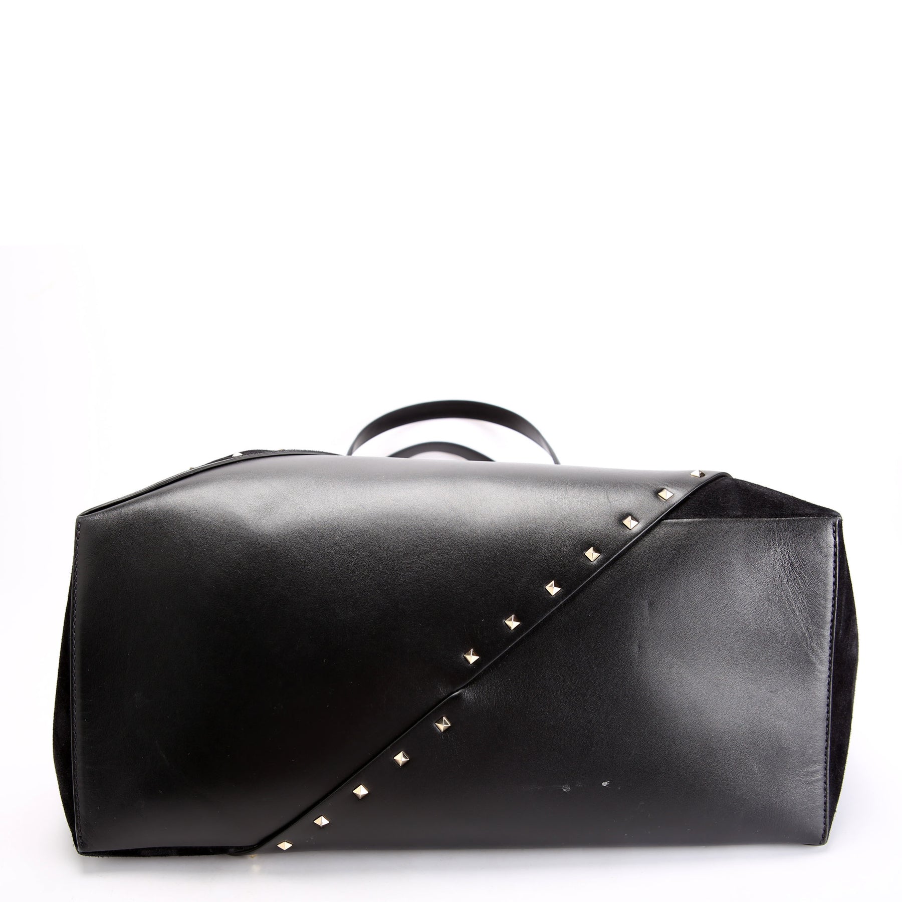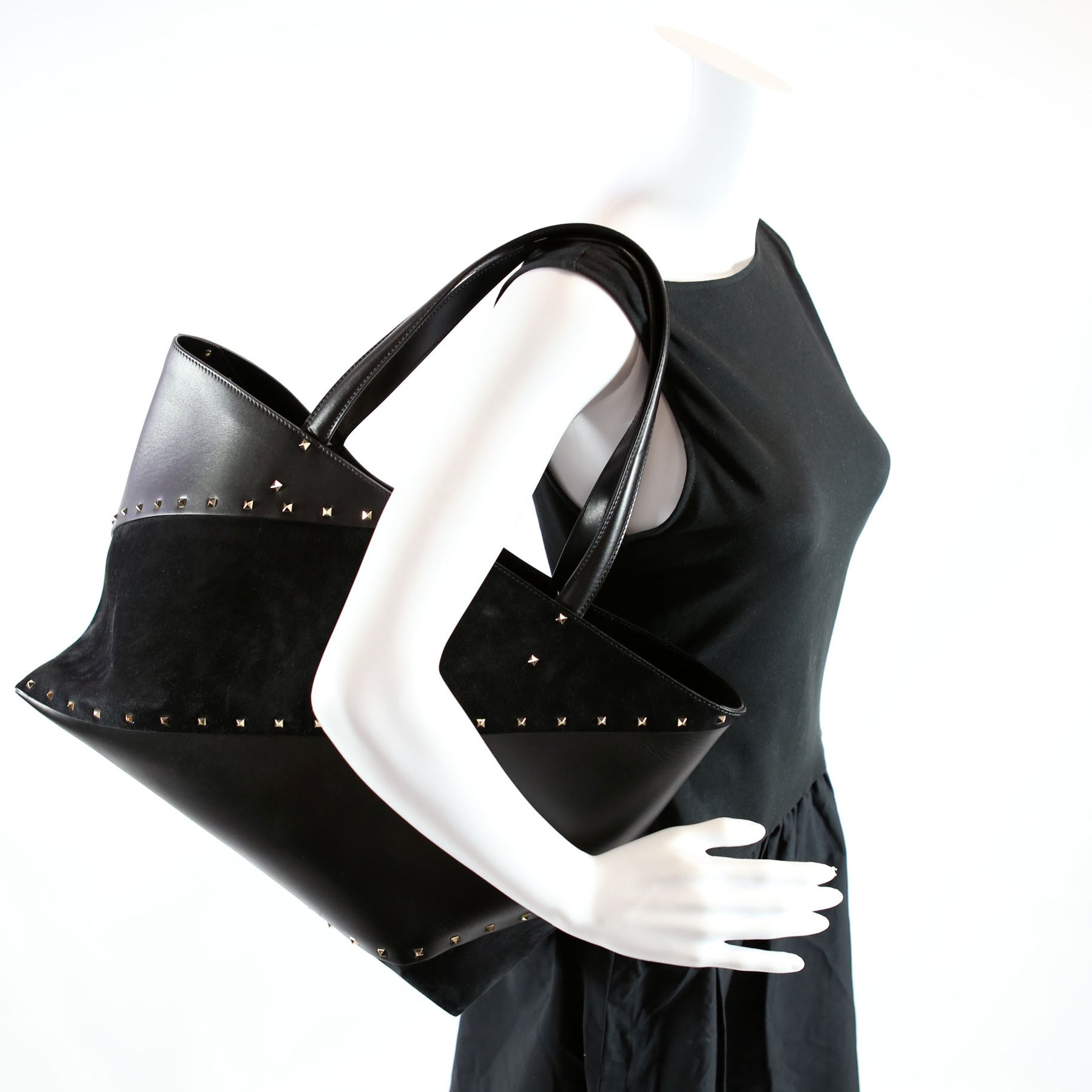 This pre-owned Valentino Rockstud Wispy Tote is guaranteed 100% authentic. The exterior is in the classic Valentino Leather and Suede.