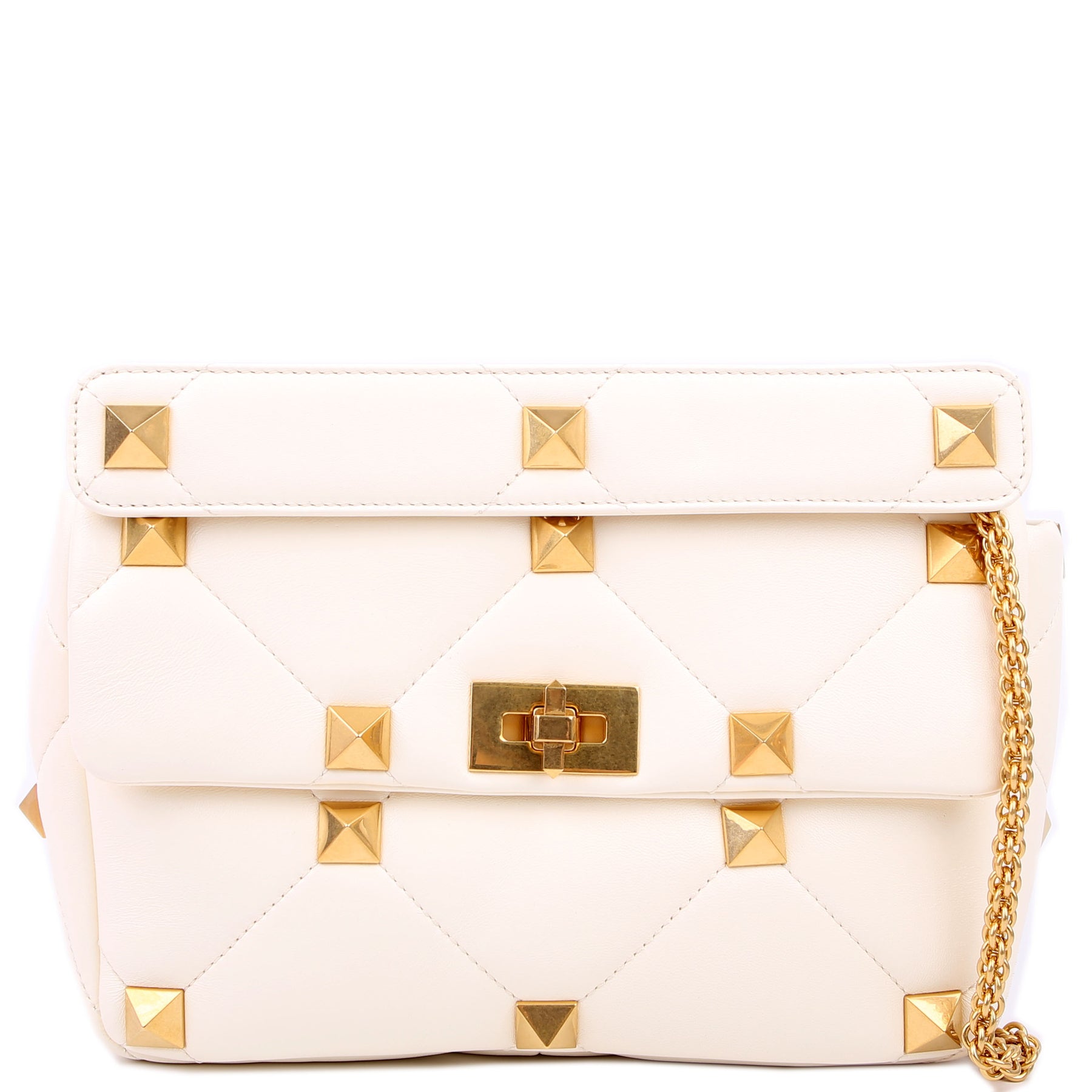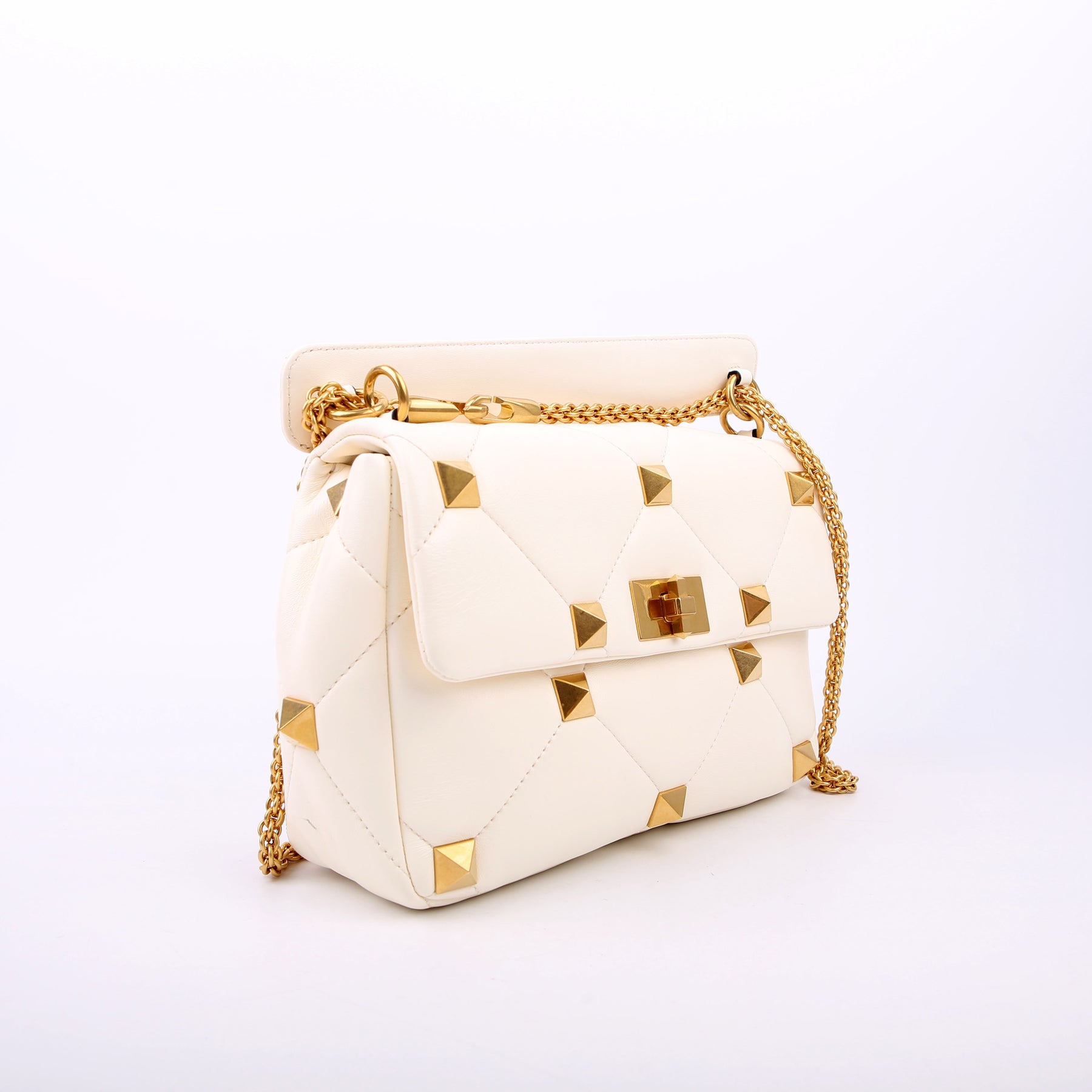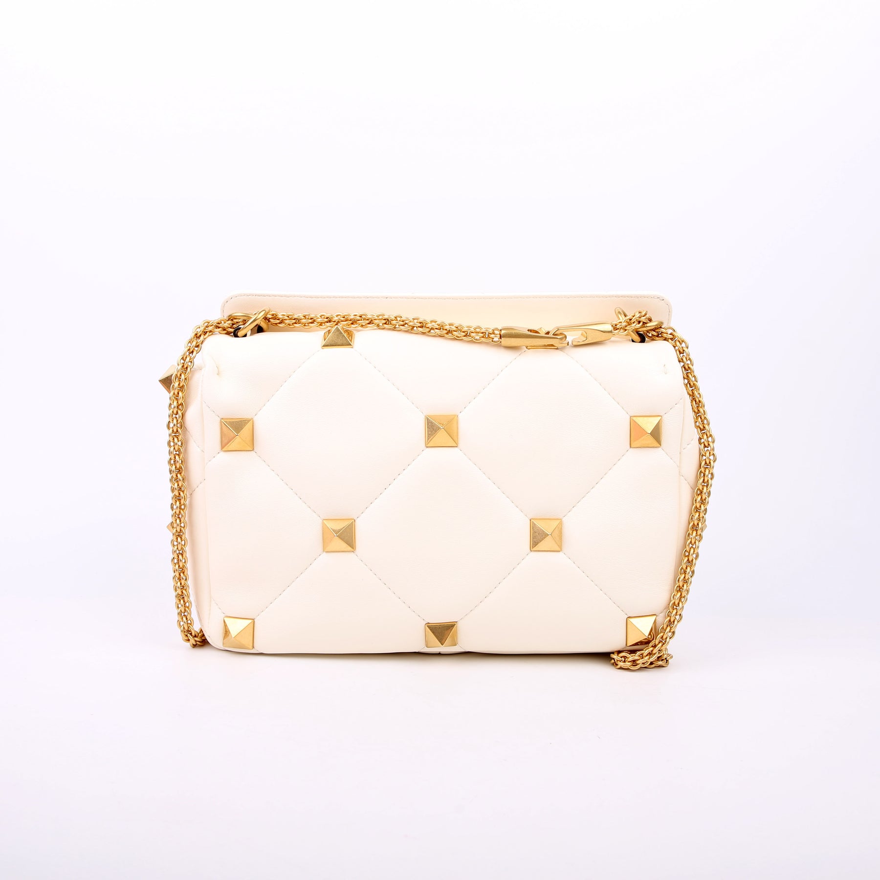 Roman Stud Medium Shoulder Bag White