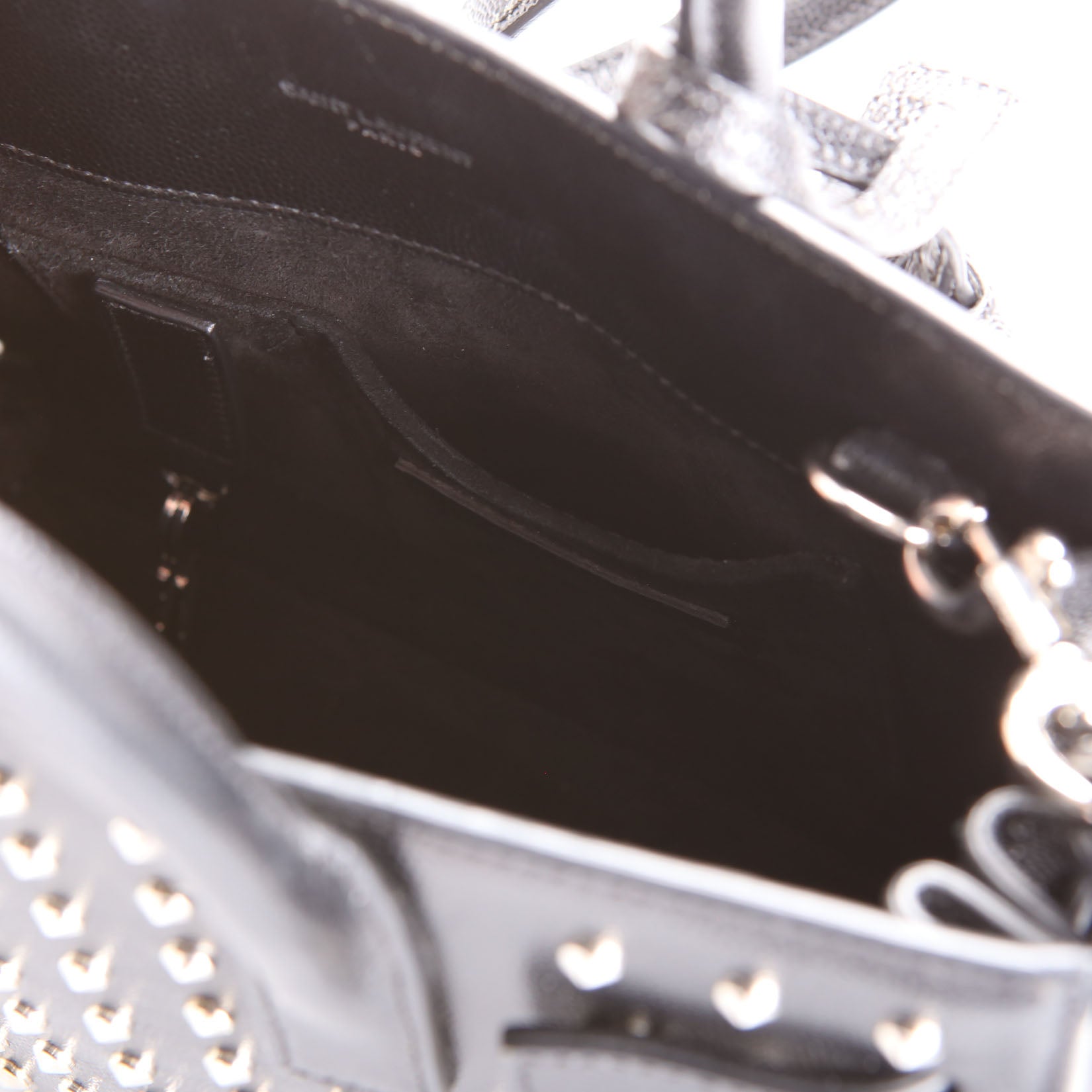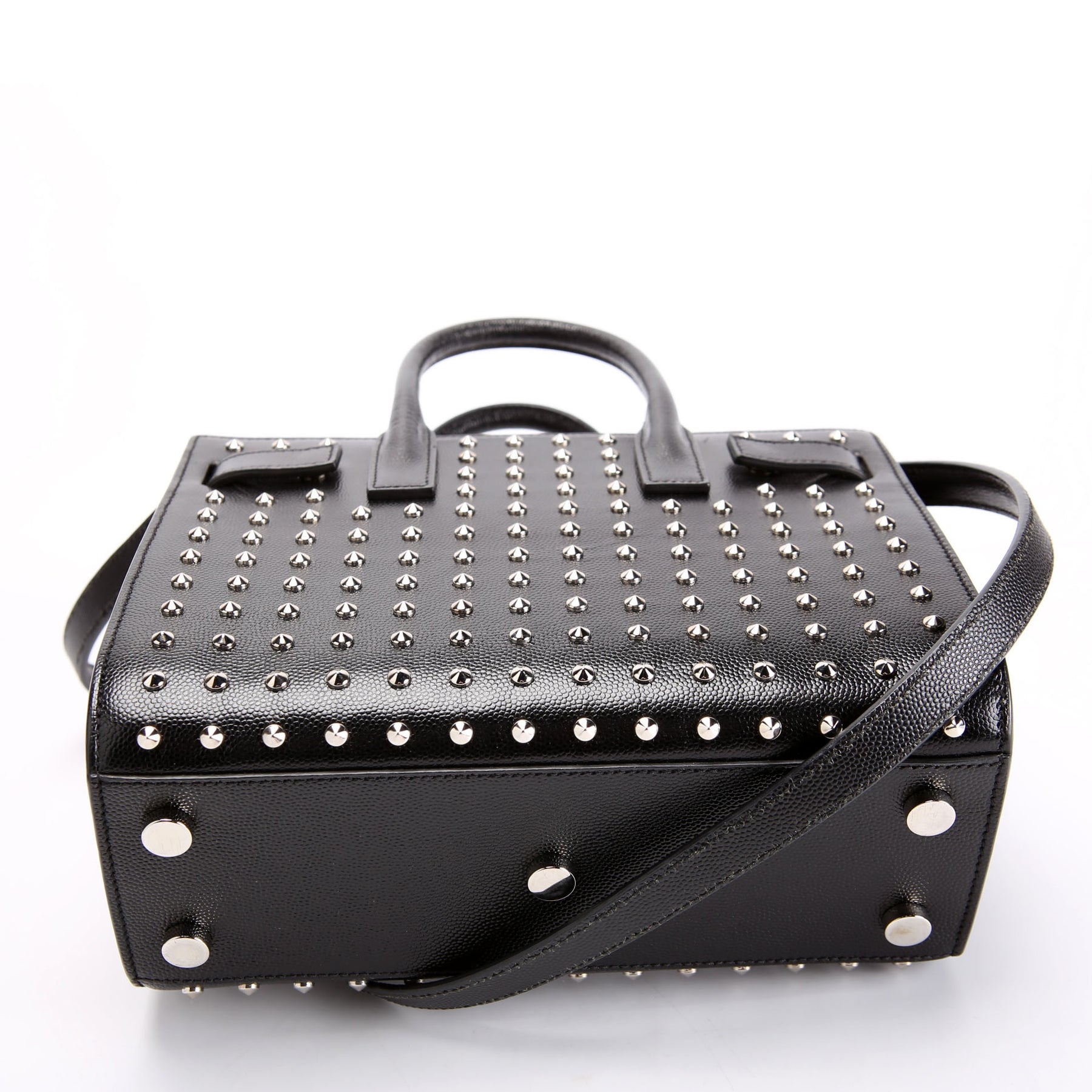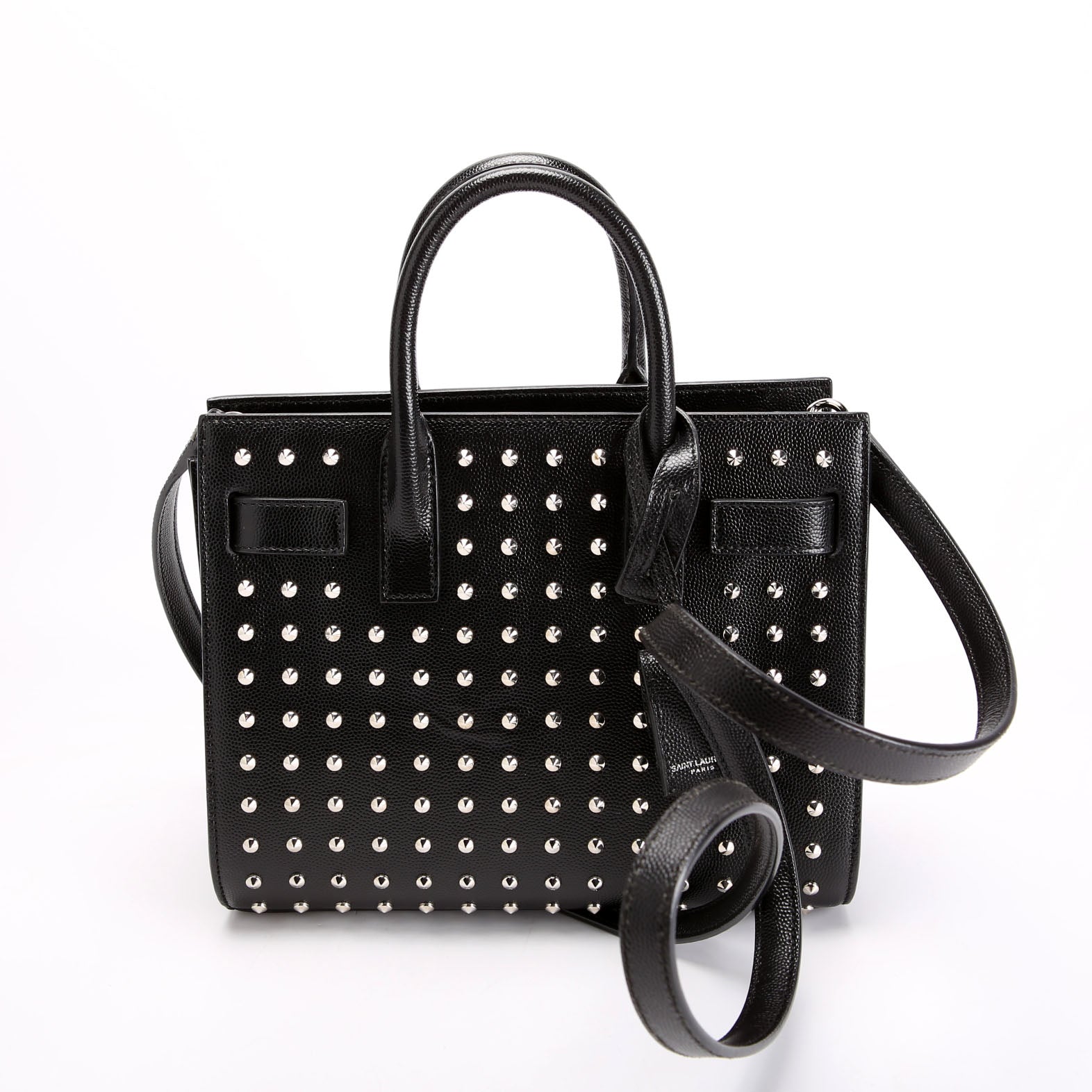 This pre-owned Saint Laurent Sac De Hour Nano Studded is guaranteed 100% authentic.
