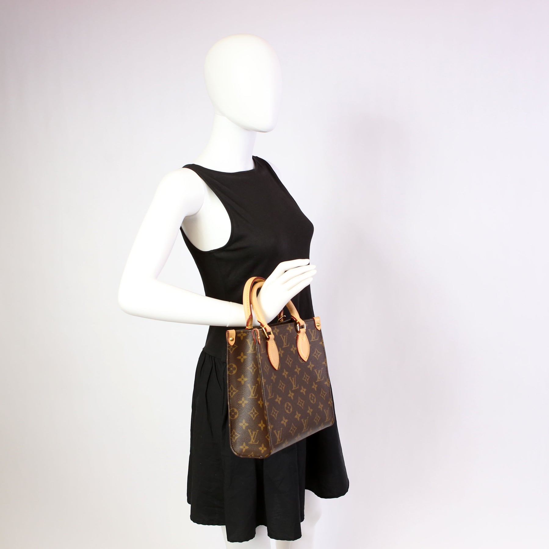 This pre-owned Louis Vuitton Sac Plat BB is guaranteed 100% authentic. The exterior is in the classic Louis Vuitton Monogram coated canvas.