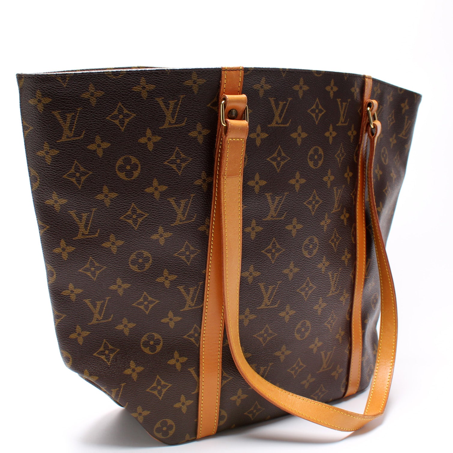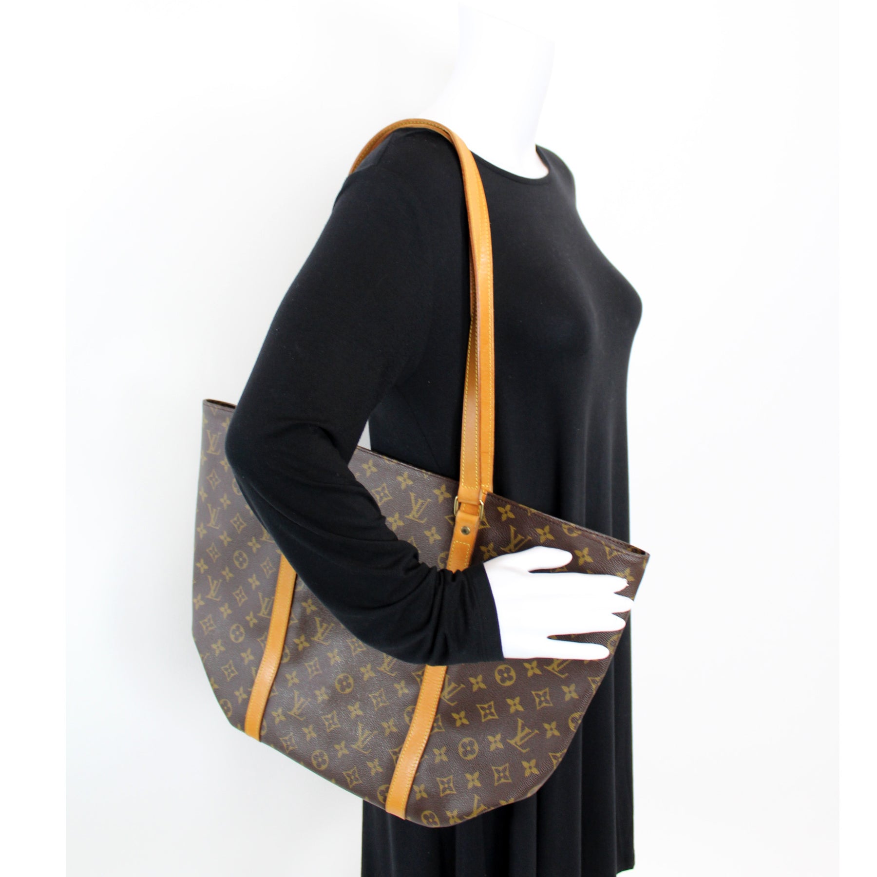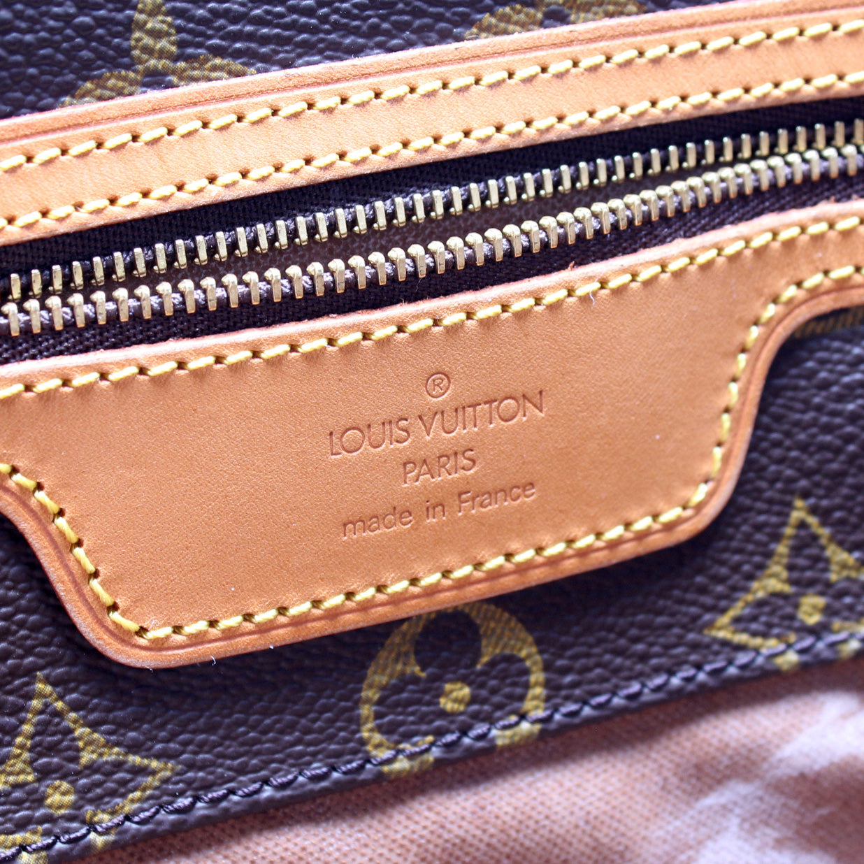 This pre-owned Louis Vuitton Sac Shopping Tote is guaranteed 100% authentic. The exterior is in the classic Louis Vuitton Monogram coated canvas.