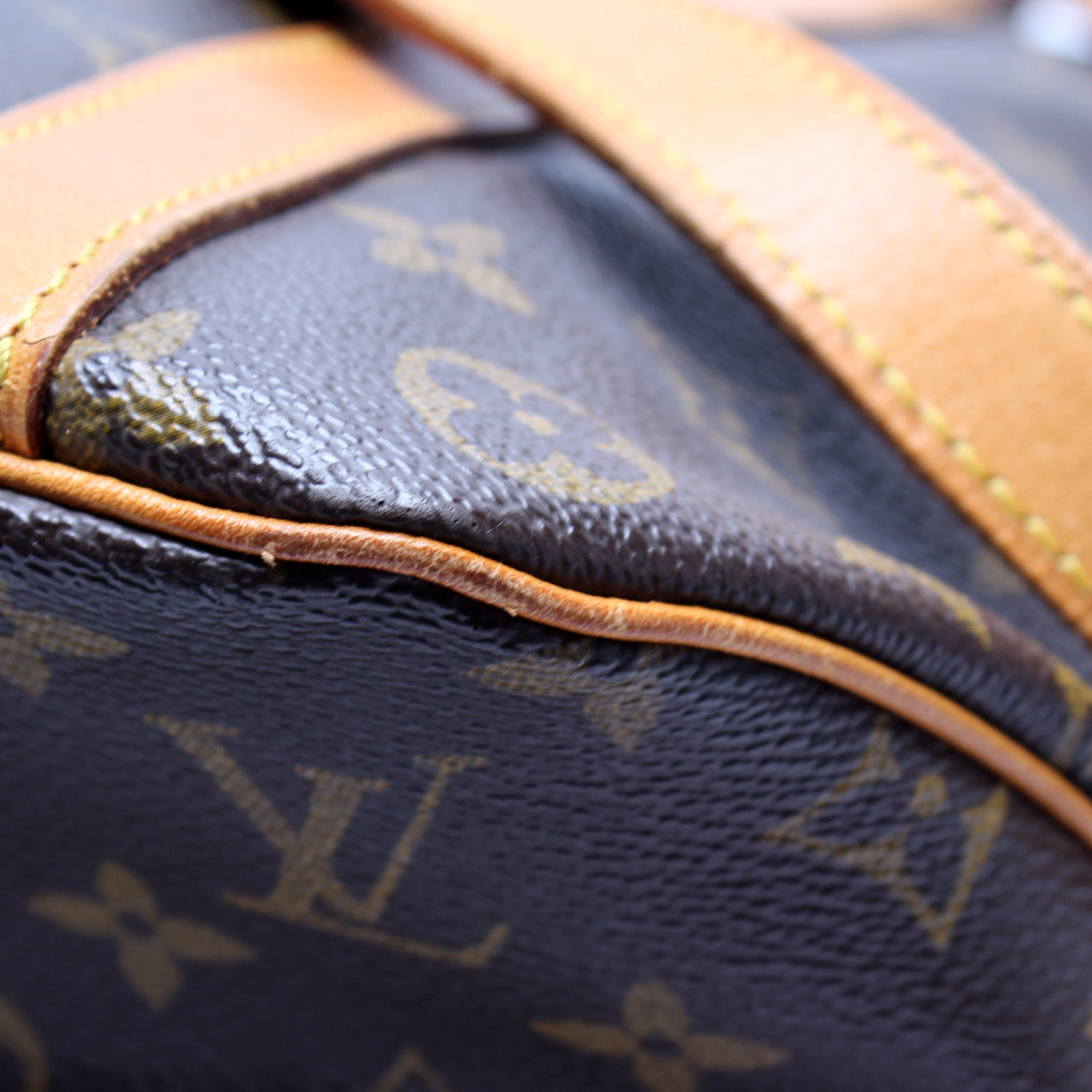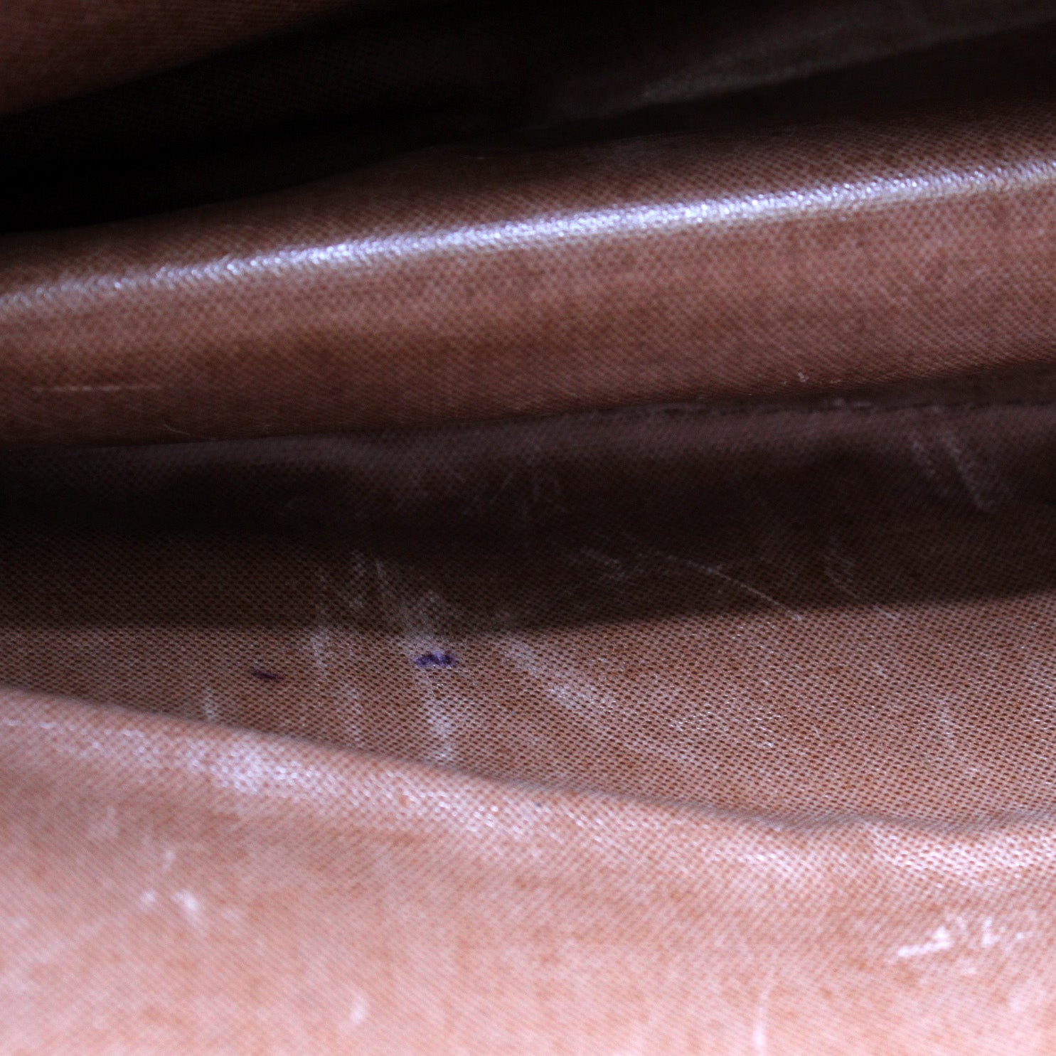 Exterior: The exterior coated canvas is free of any rips or cracks. The corners and leather details show minor wear and discoloration as pictured.