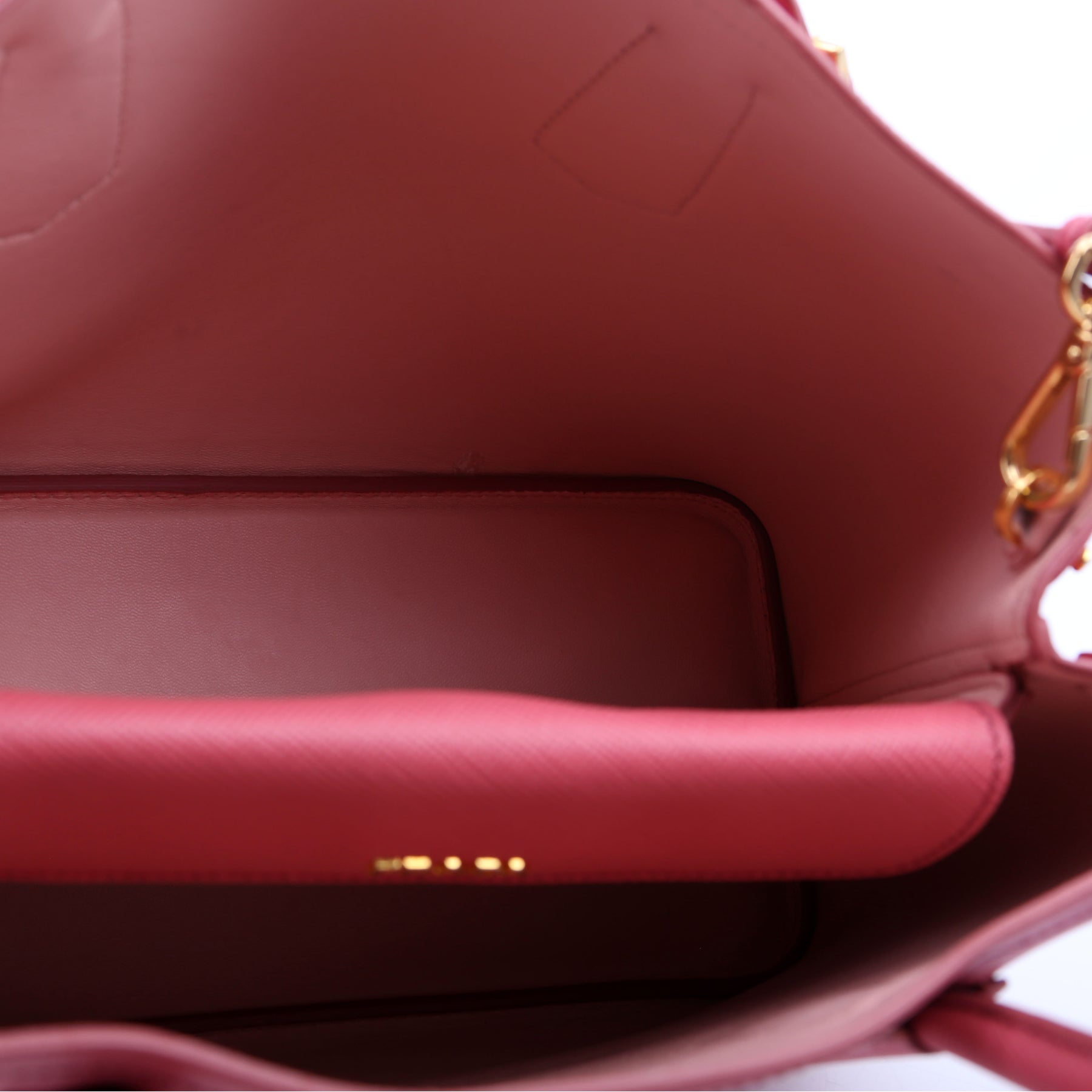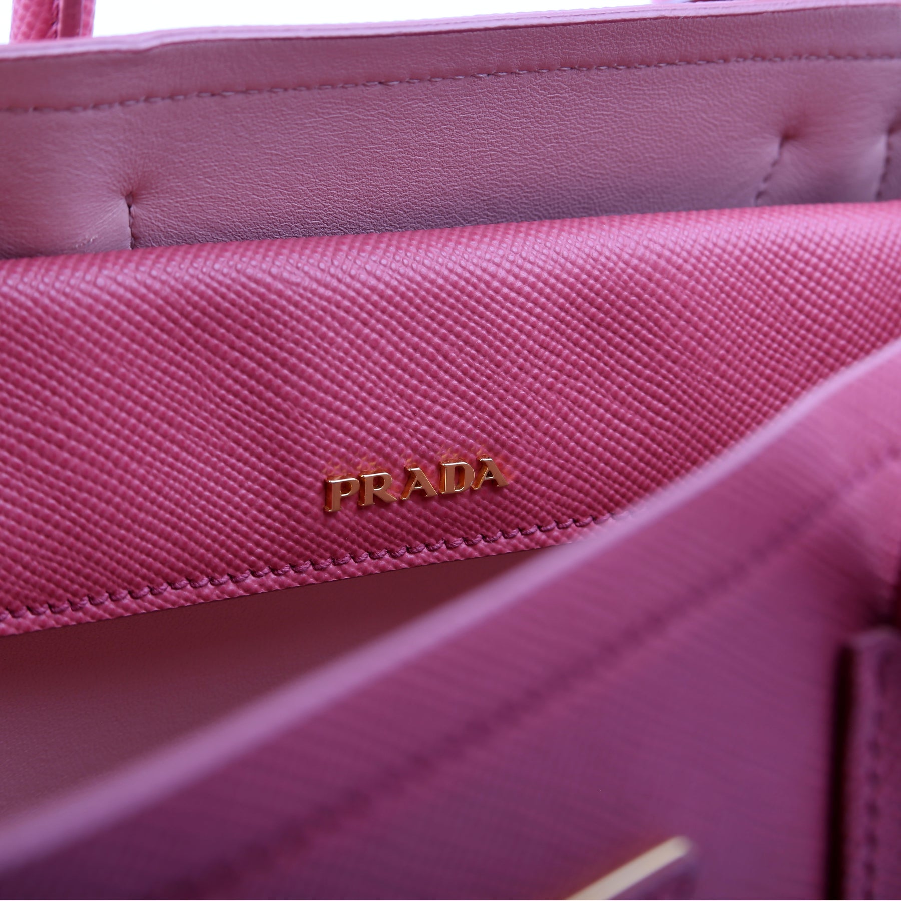 This pre-owned Prada Cuir Double Medium is guaranteed 100% authentic. The exterior is in the classic Prada Saffiano leather.