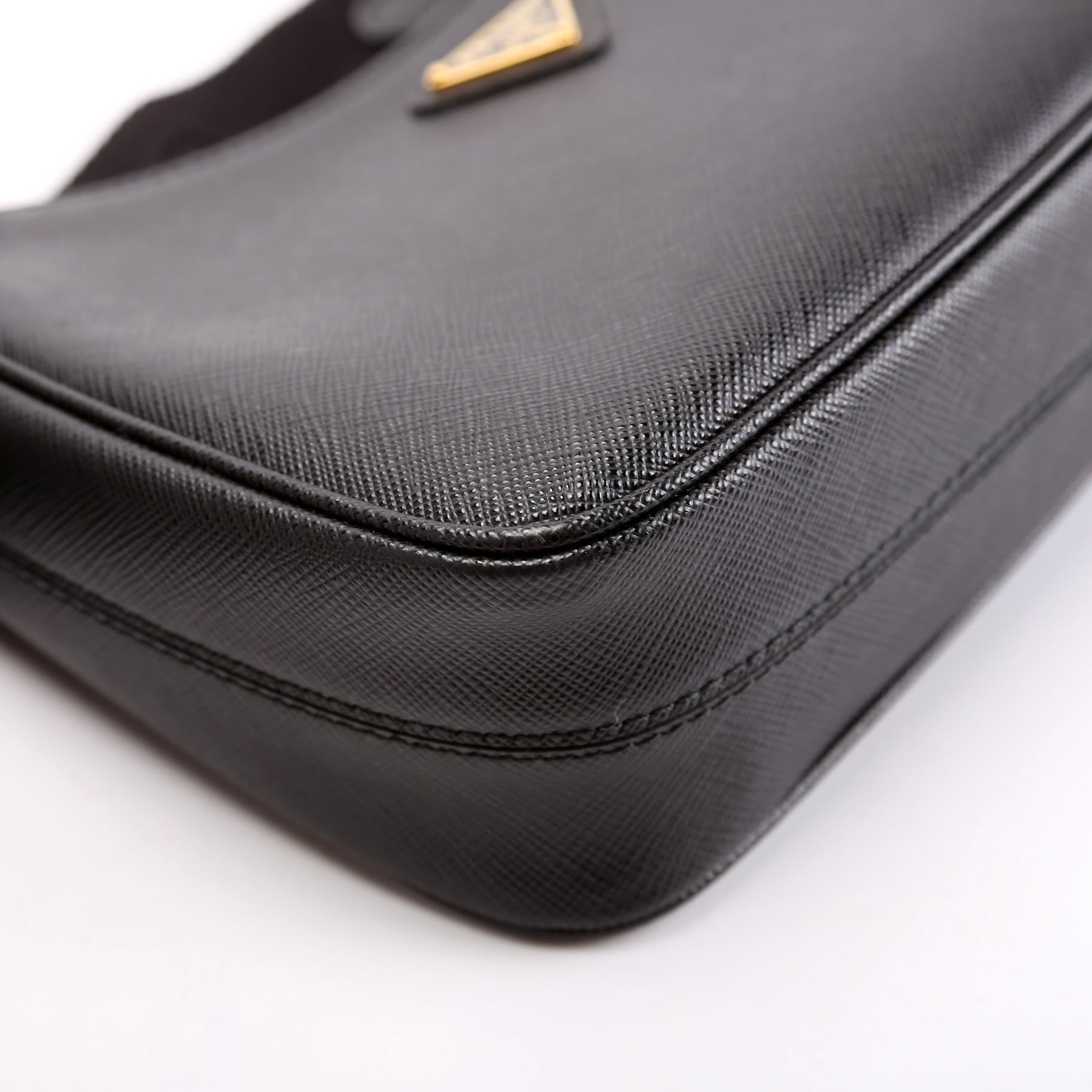 This pre-owned Prada Saffiano Re-Edition 2005 is guaranteed 100% authentic. The exterior is in the classic Prada Saffiano leather.