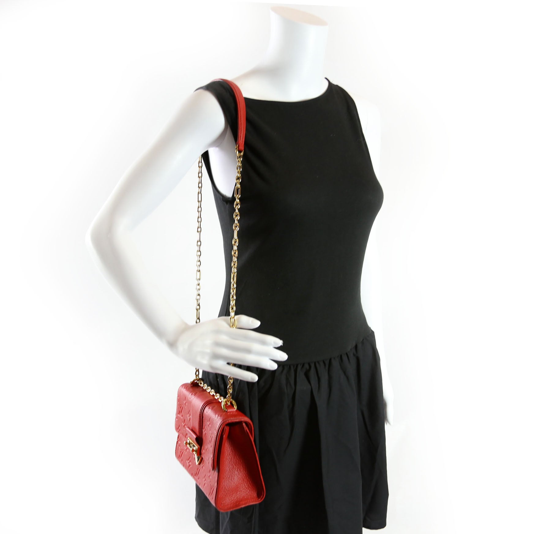 This pre-owned Louis Vuitton Saint Sulpice BB Empreinte is guaranteed 100% authentic. The exterior is in the classic Louis Vuitton Empreinte Leather.