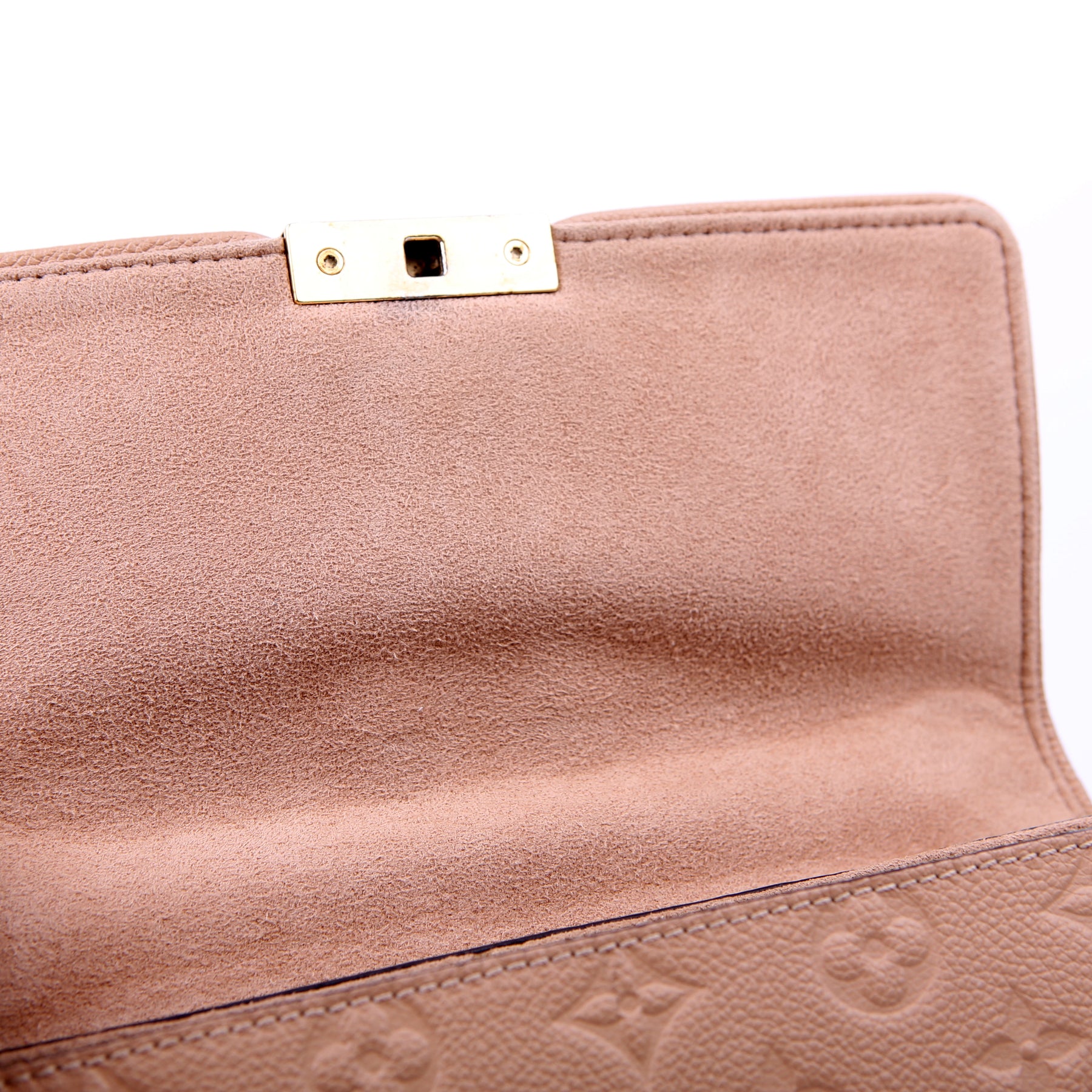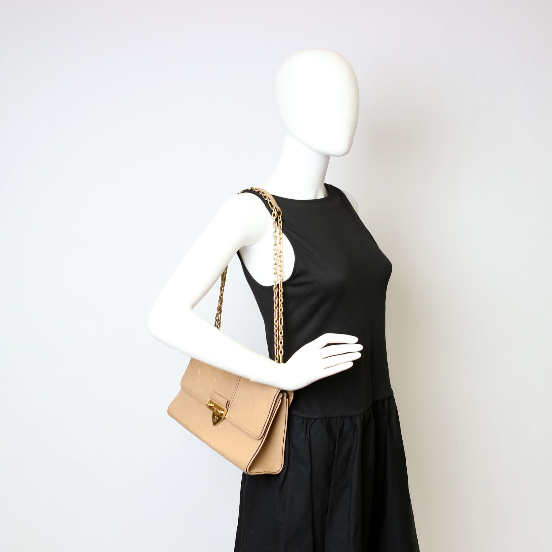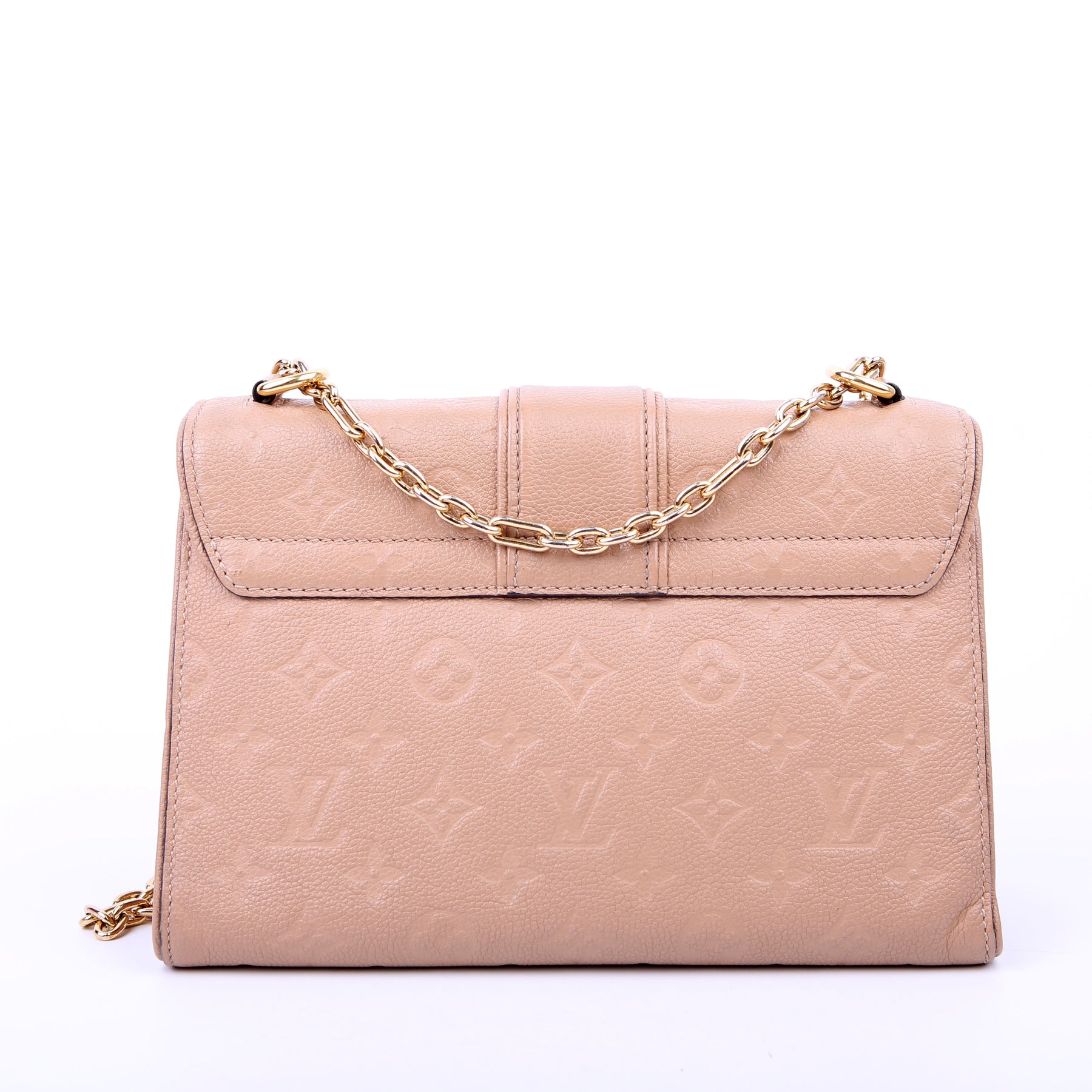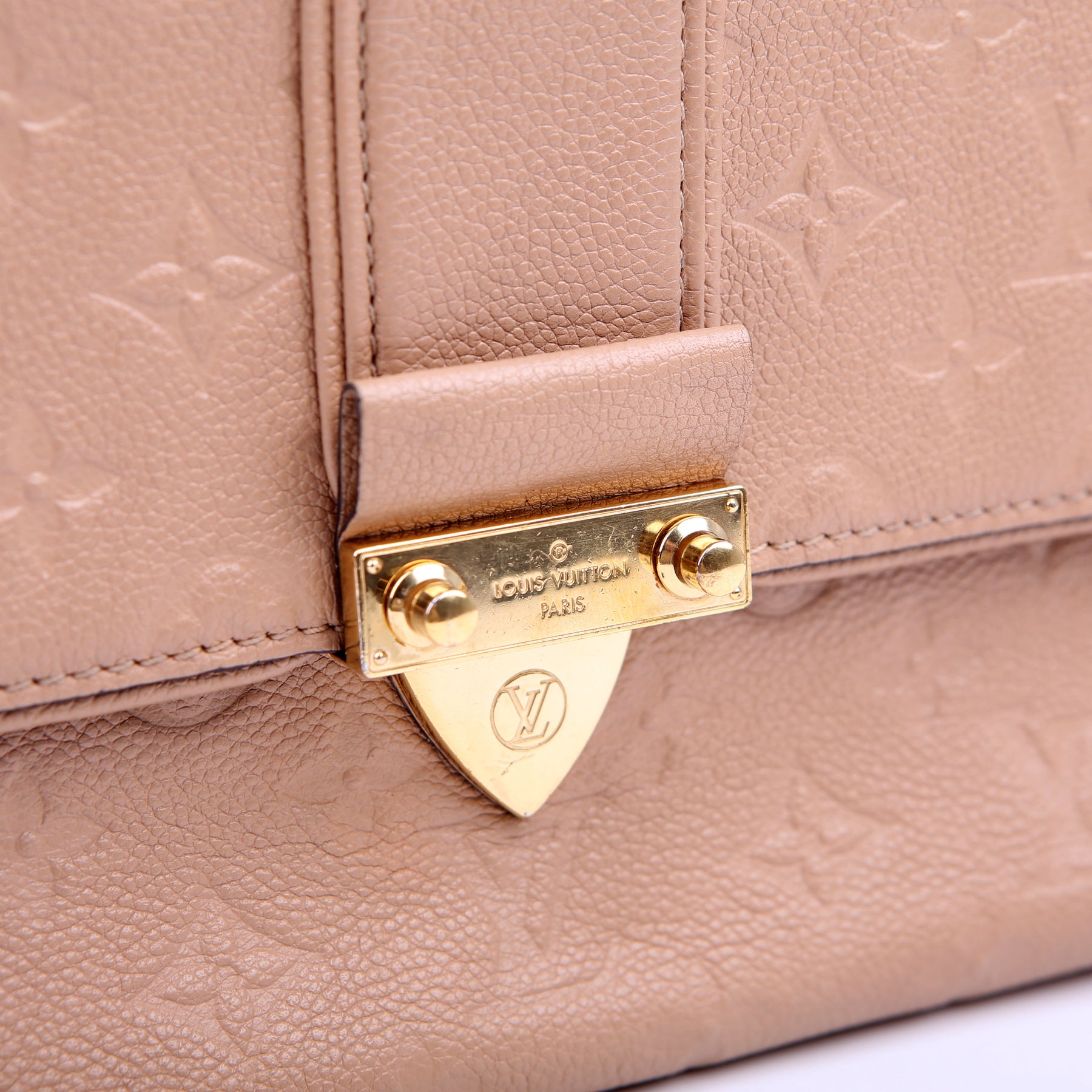 This pre-owned Louis Vuitton Saint Sulpice PM is guaranteed 100% authentic. The exterior is in the classic Louis Vuitton Empreinte leather.