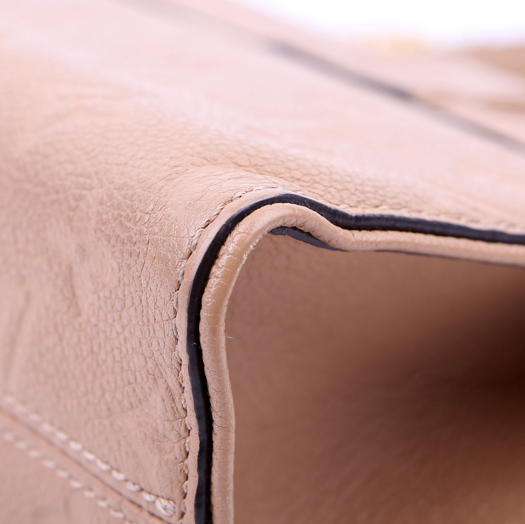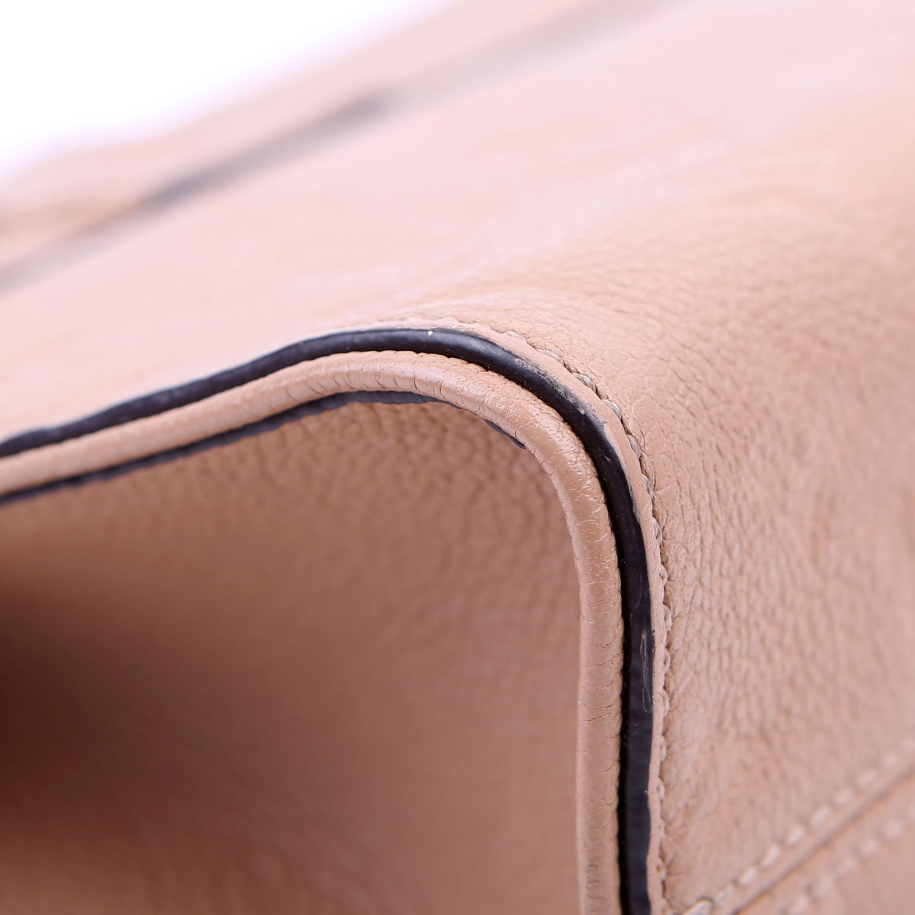 Exterior: The exterior leather has minor discoloration.