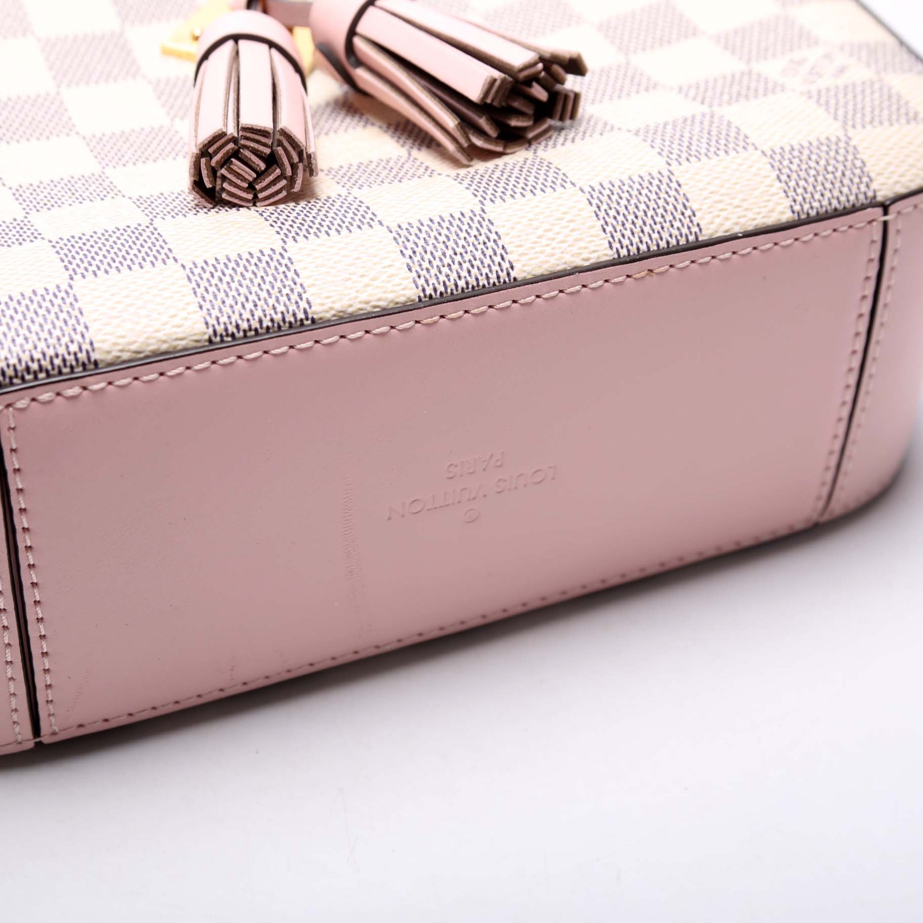 This pre-owned Louis Vuitton Saintonge is guaranteed 100% authentic. The exterior is in the classic Louis Vuitton Damier Azur coated canvas.
