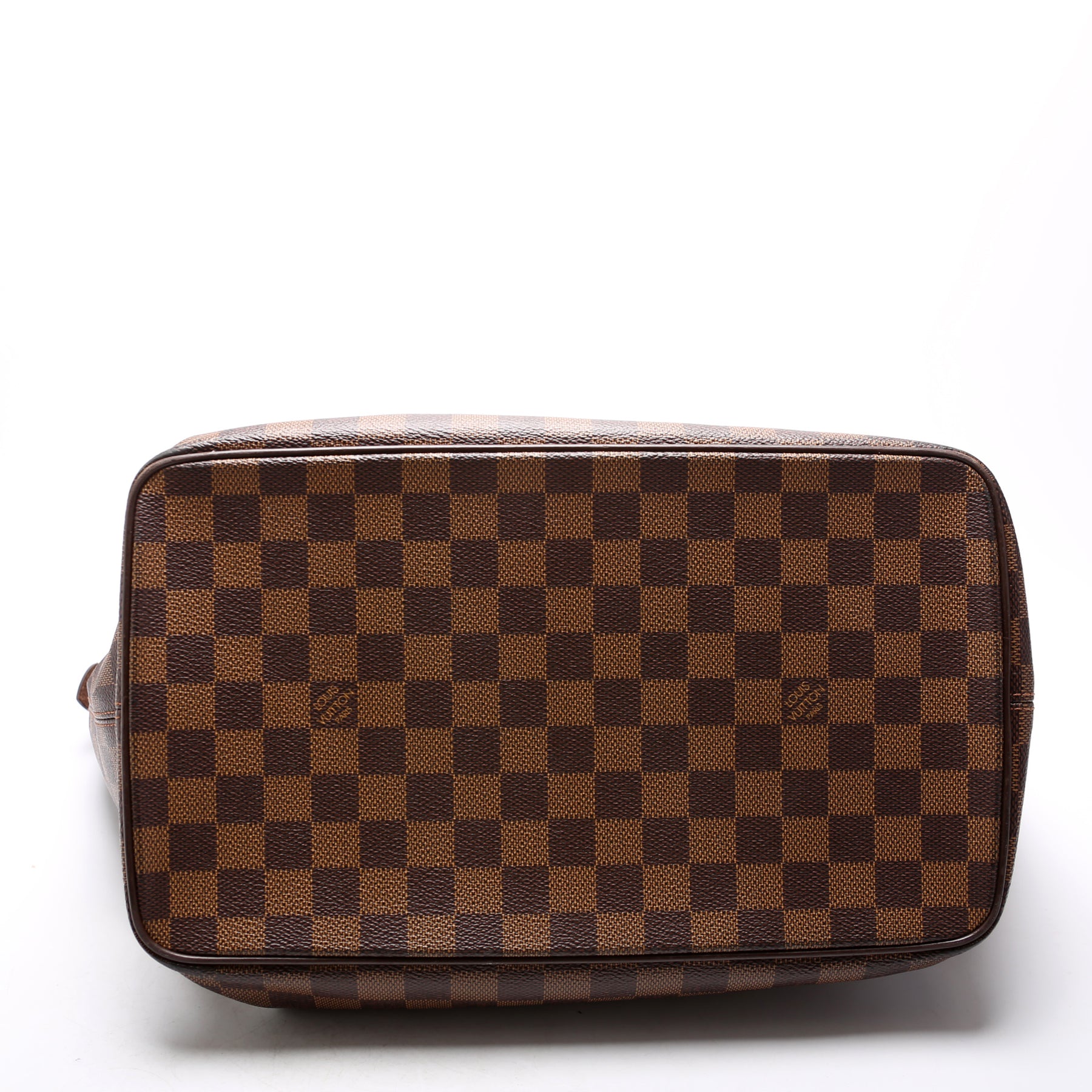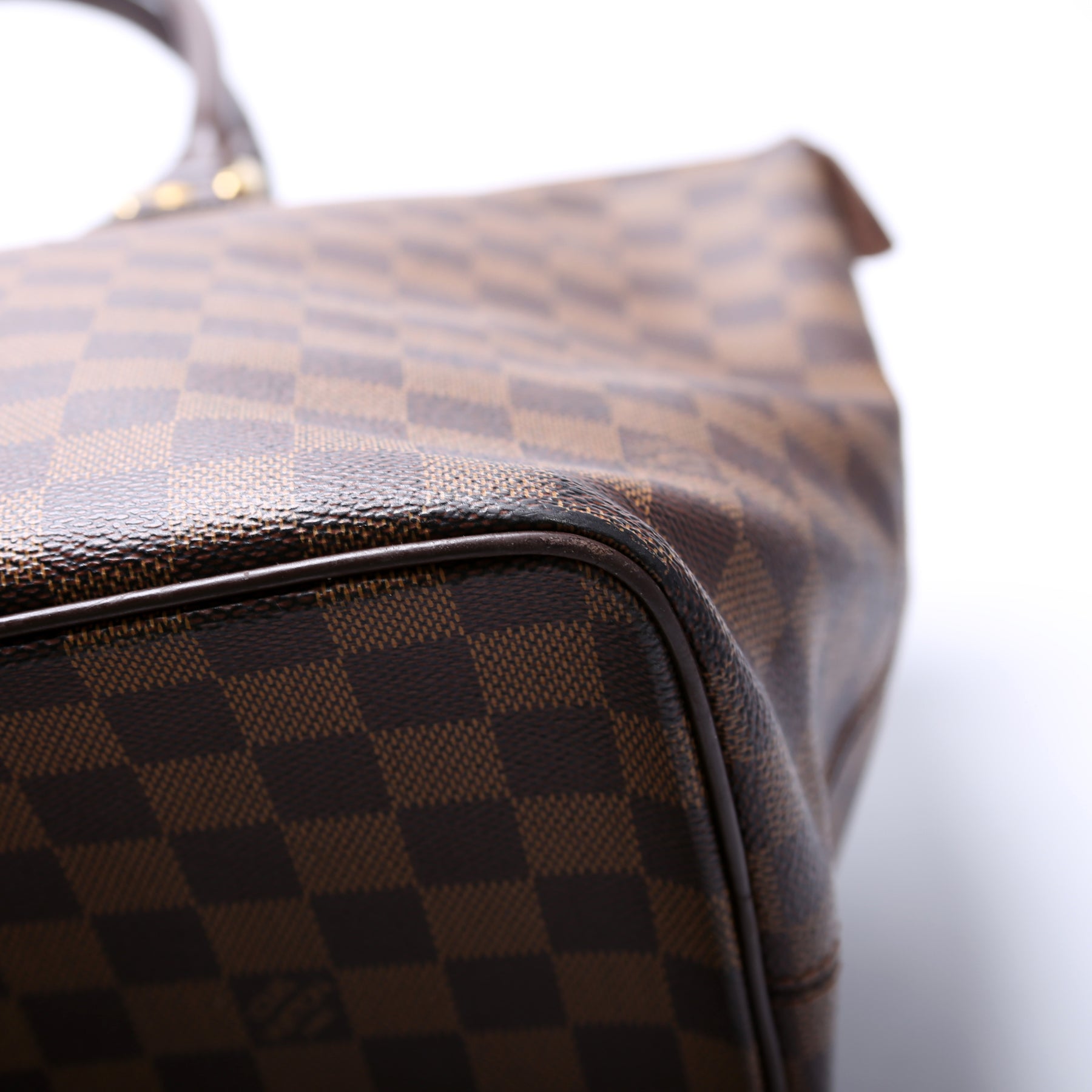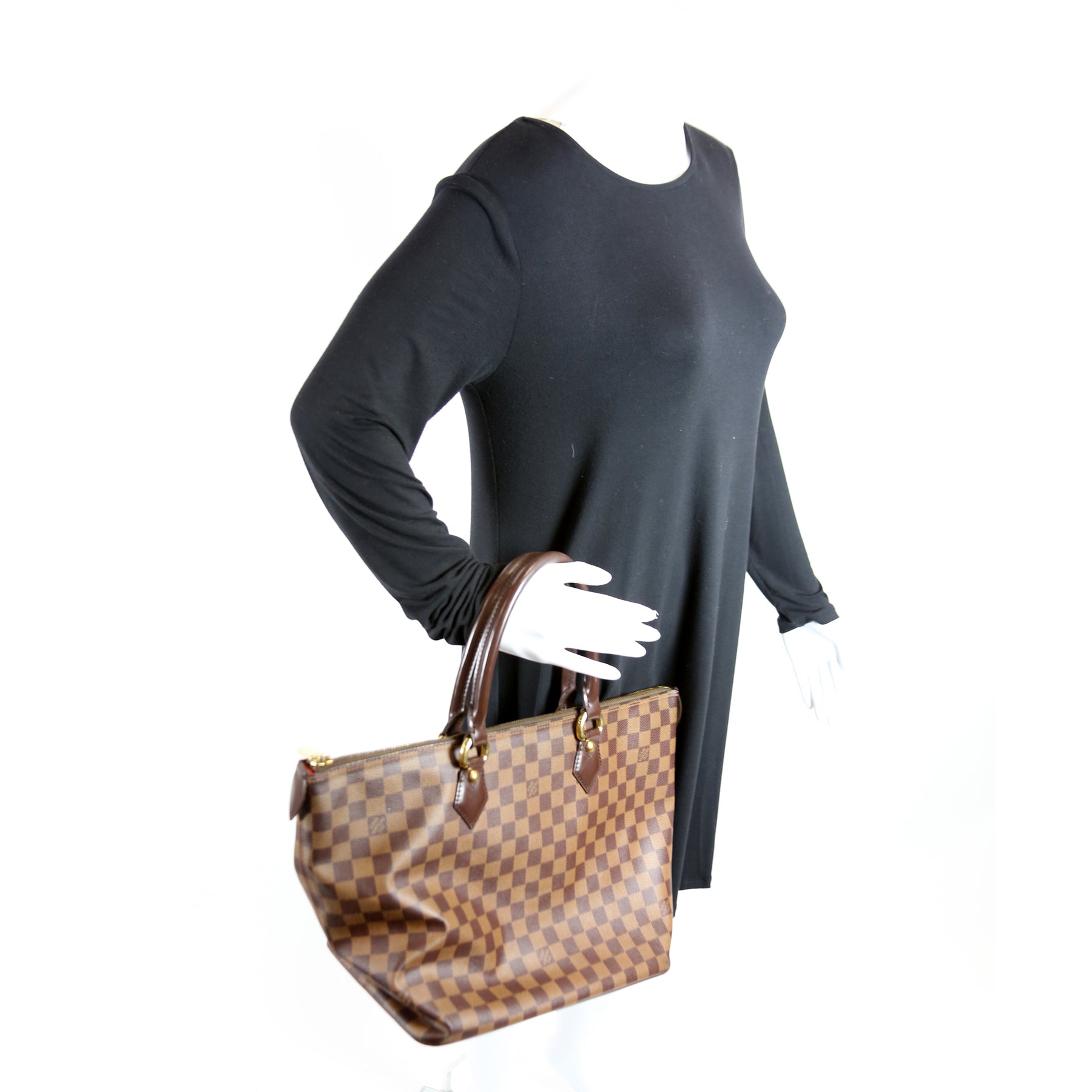 This pre-owned Louis Vuitton Saleya MM is guaranteed 100% authentic. The exterior is in the classic Louis Vuitton Damier Ebene coated canvas.