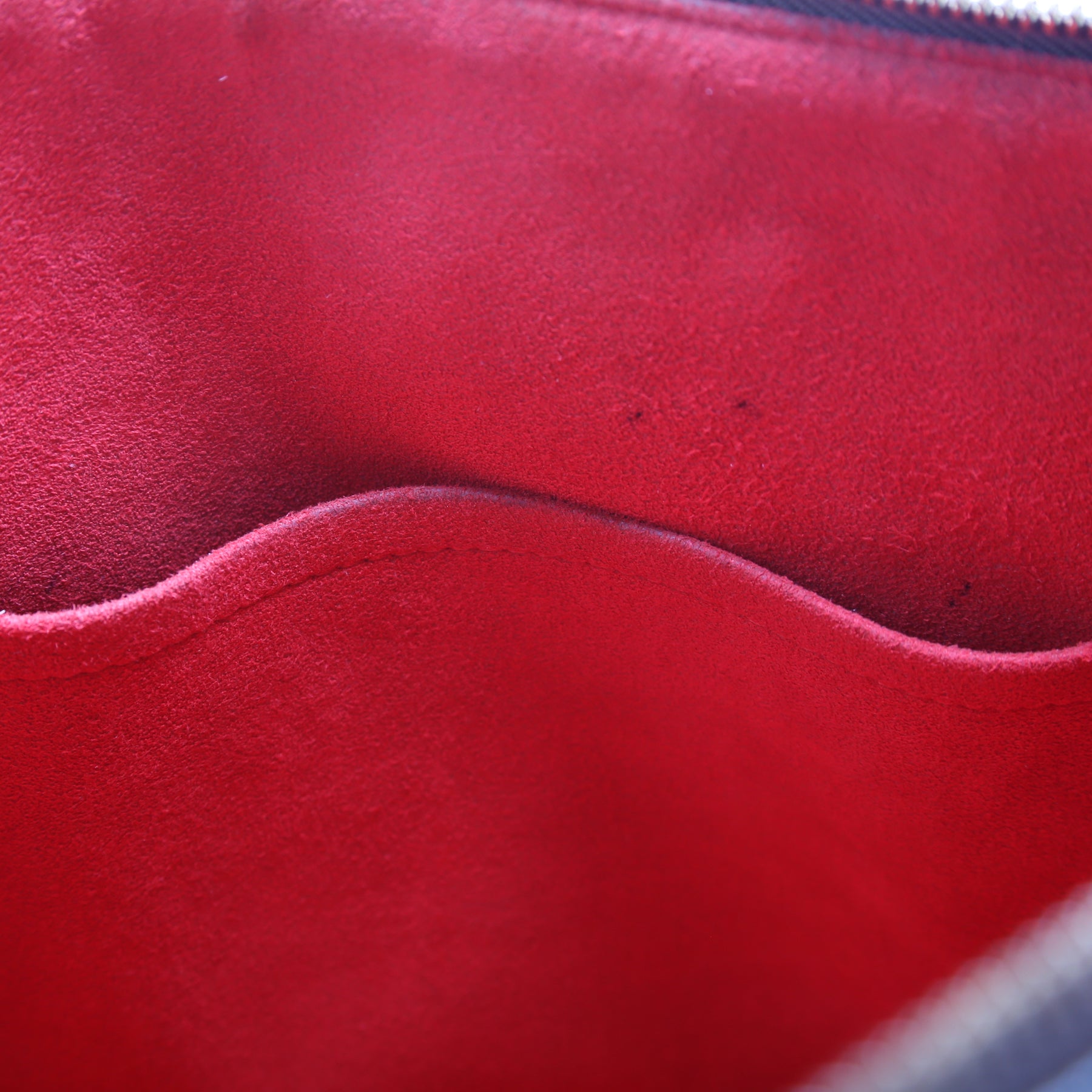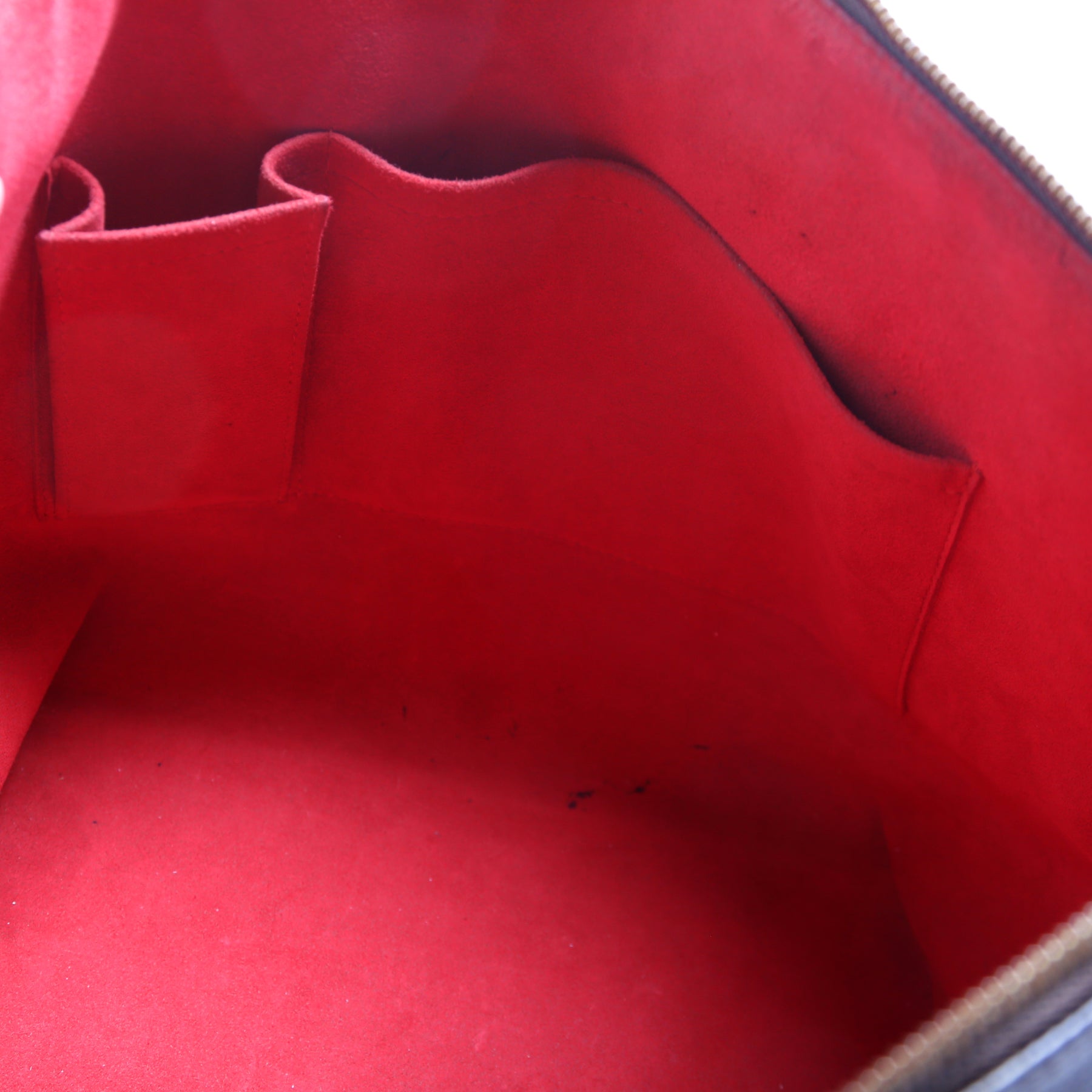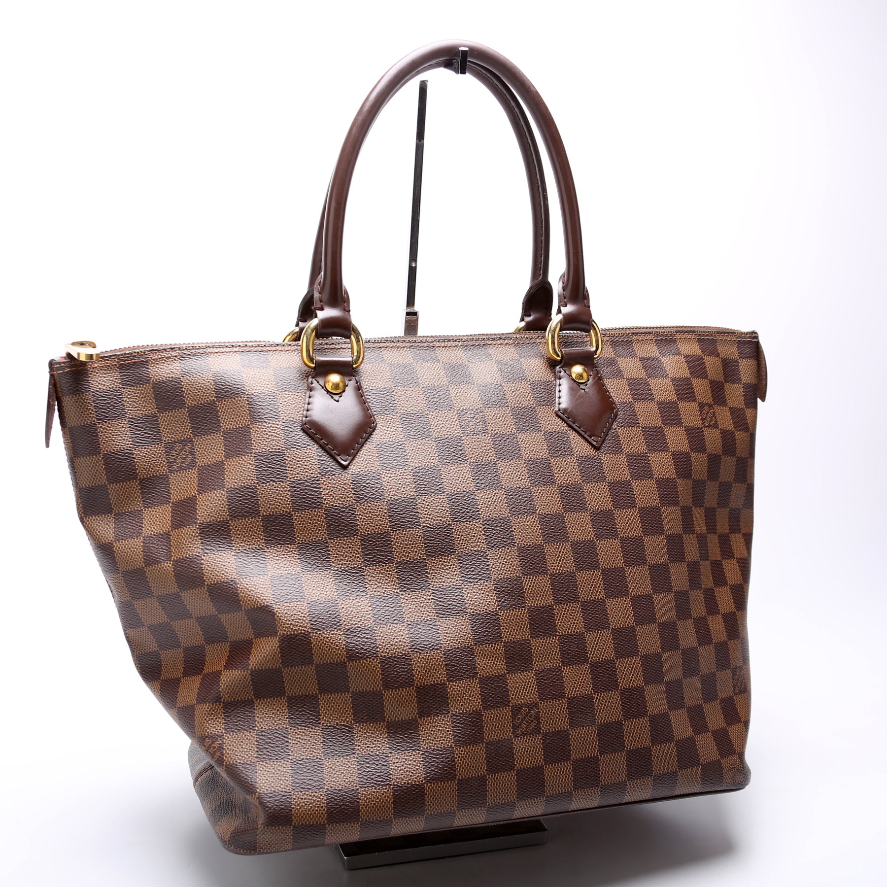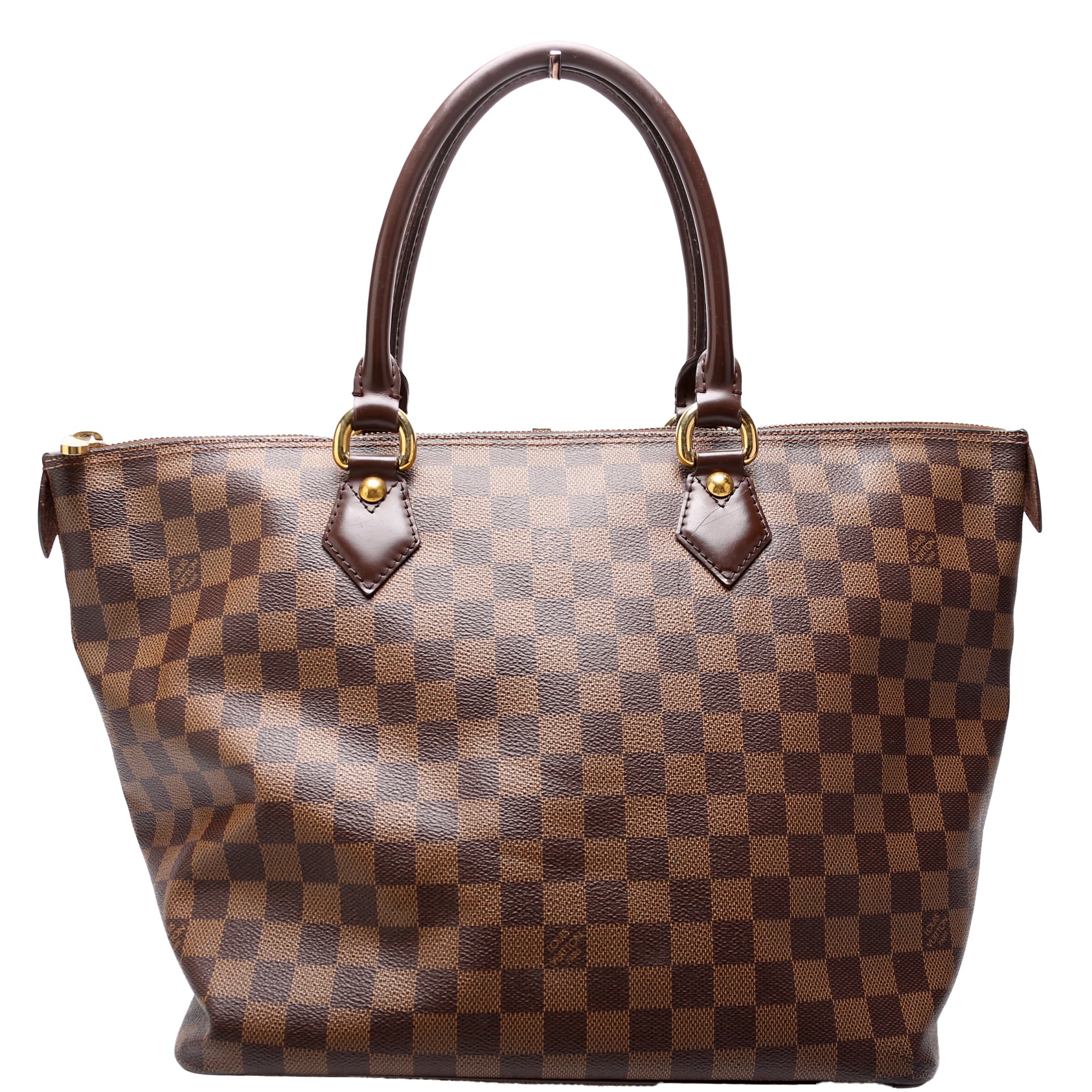 This pre-owned Louis Vuitton Saleya MM is guaranteed 100% authentic. The exterior is in the classic Louis Vuitton Damier Ebene coated canvas.