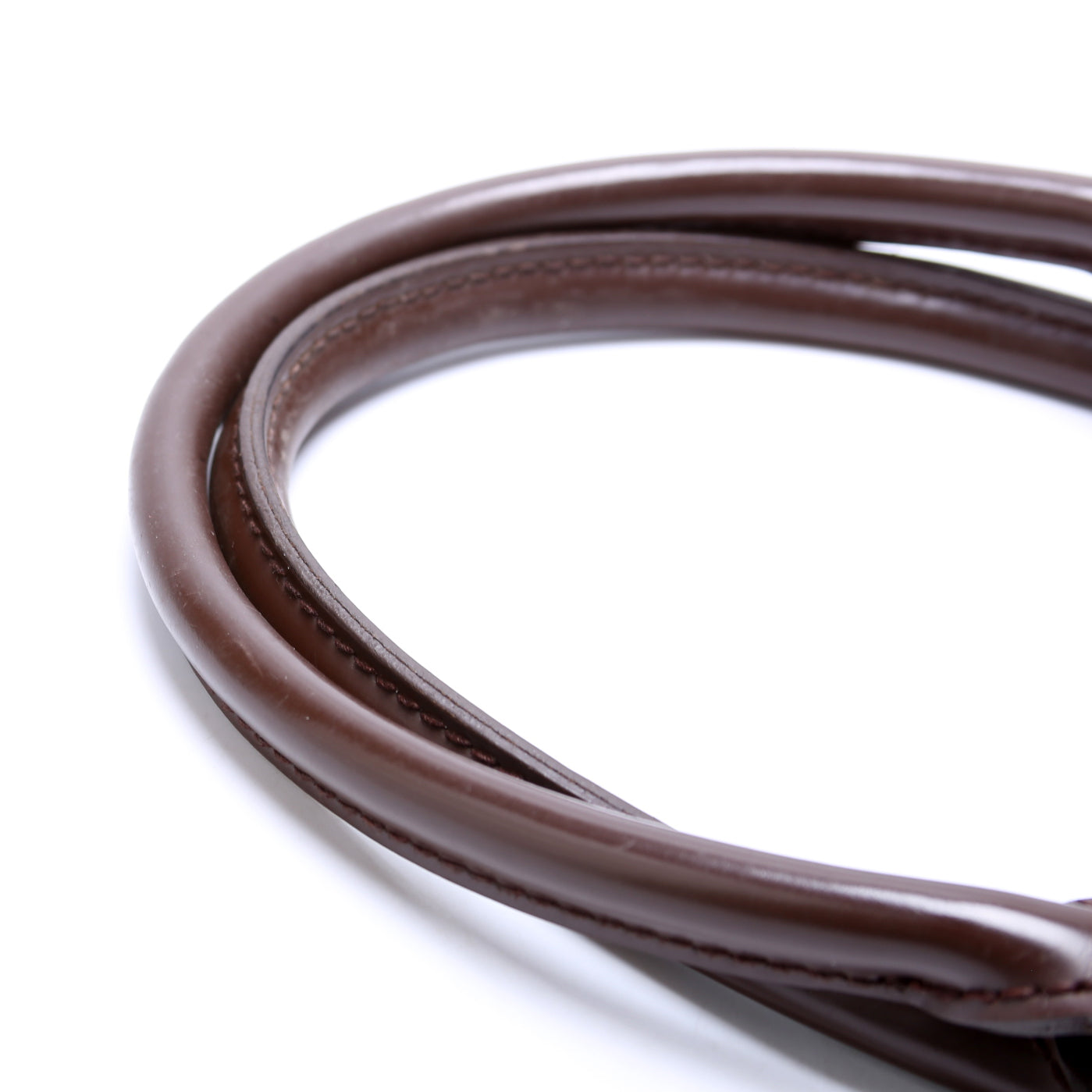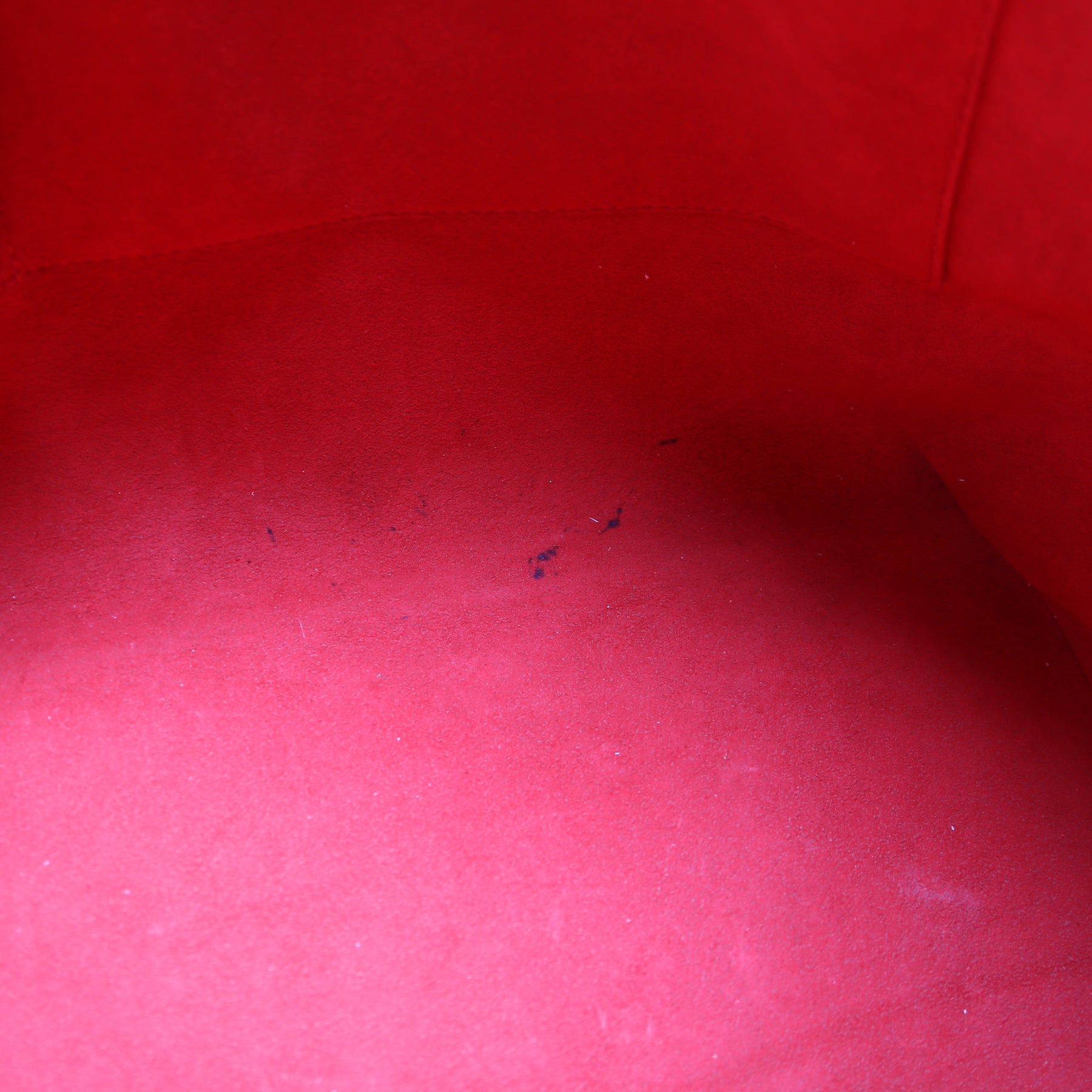 Handle: The leather handles shows wear, discoloration, and scuffs throughout.