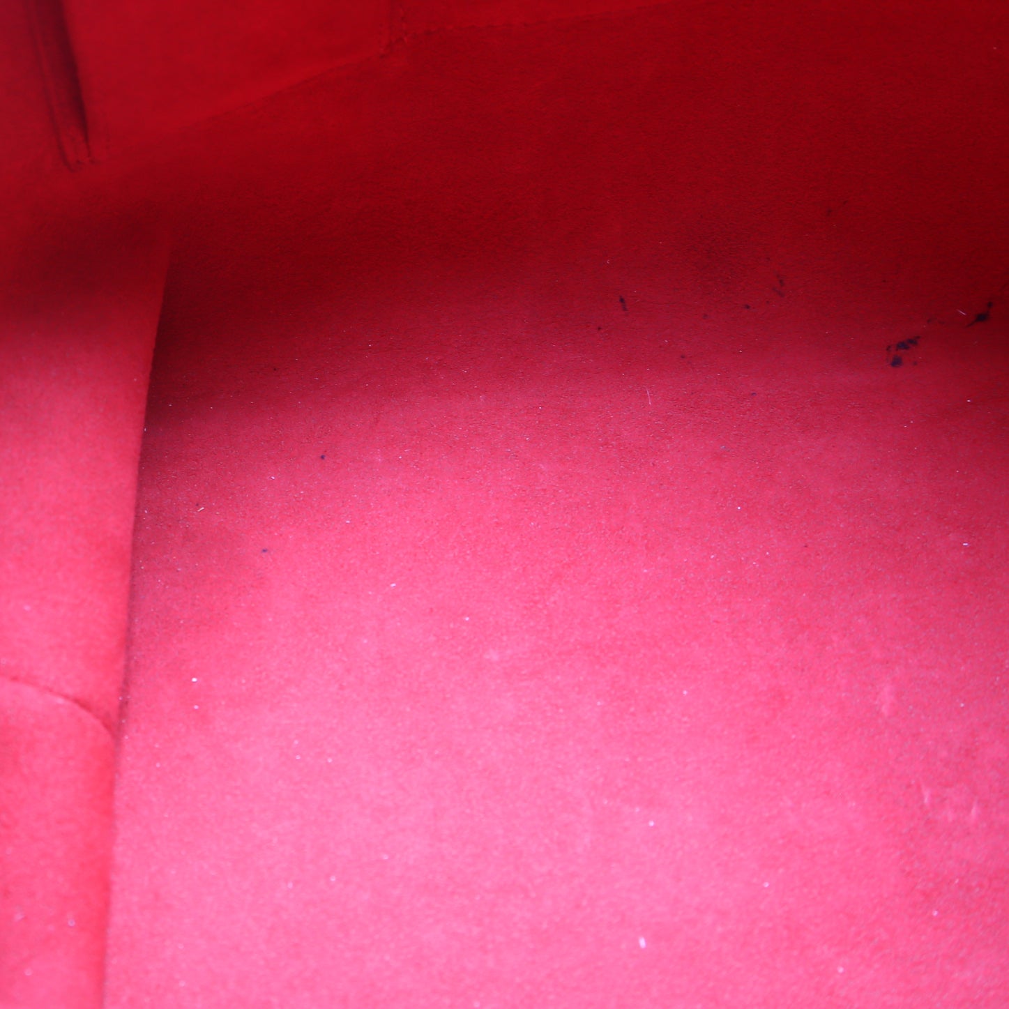 Interior: The interior has minor stains and wear throughout. The interior features two open pockets.