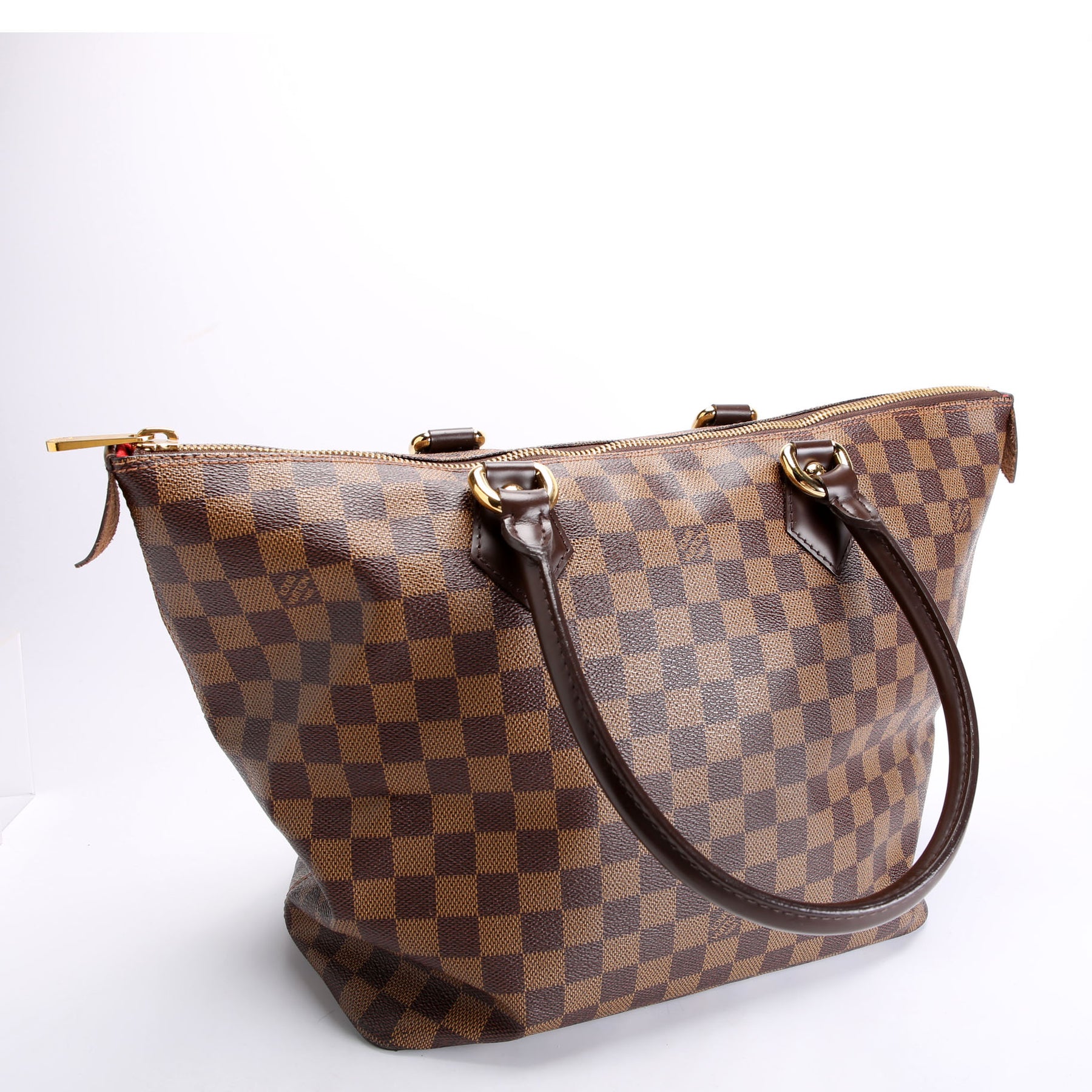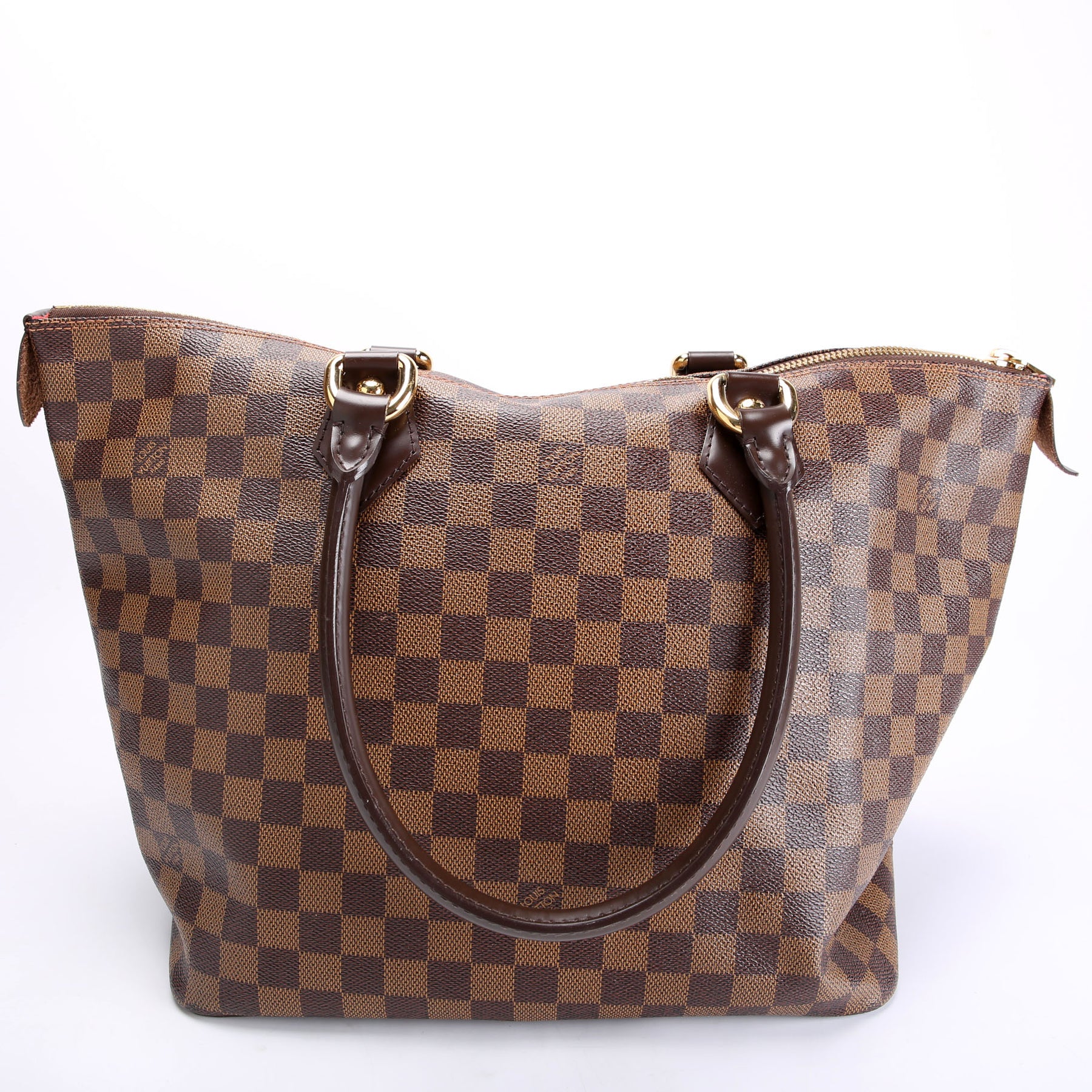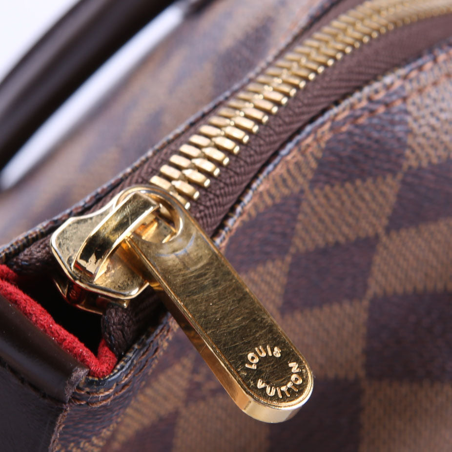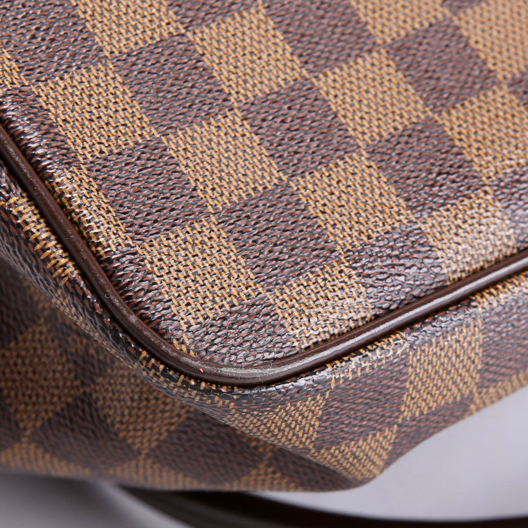 This pre-owned Louis Vuitton Saleya MM Ebene is guaranteed 100% authentic. The exterior is in the classic Louis Vuitton Ebene coated canvas.