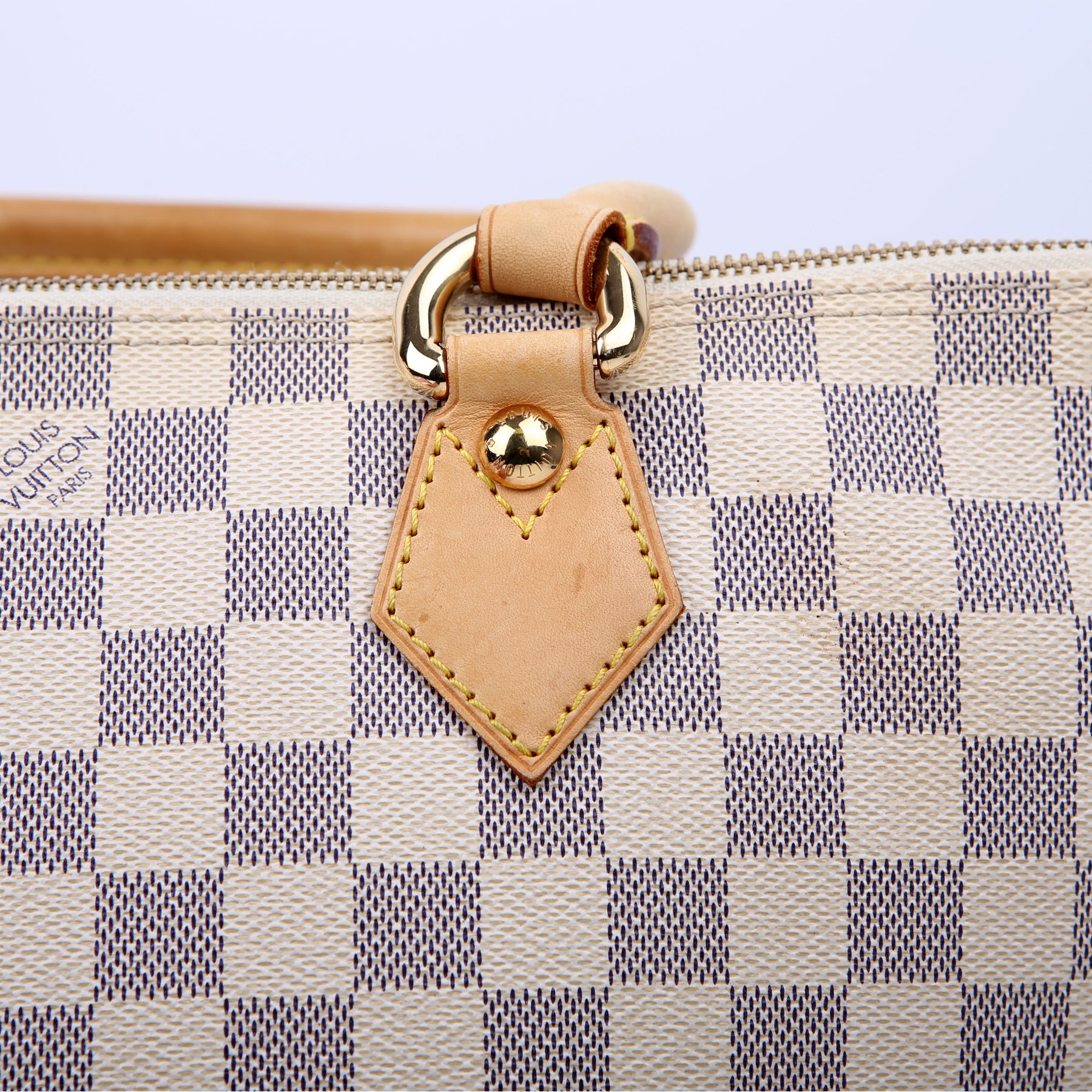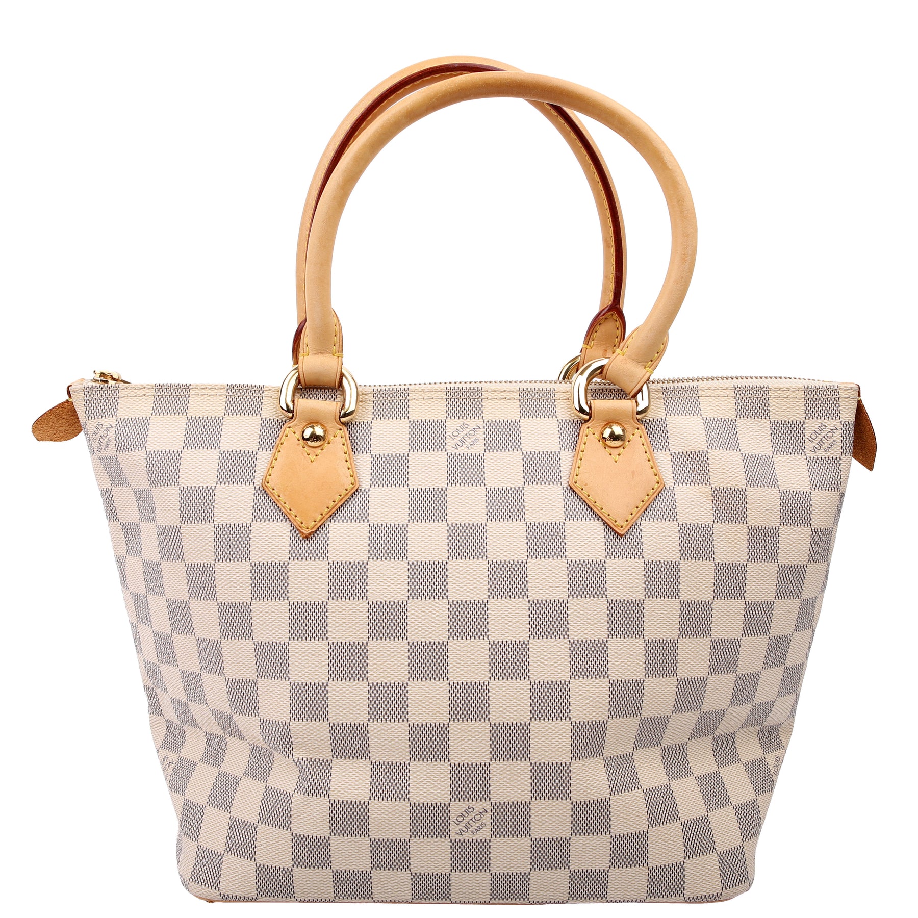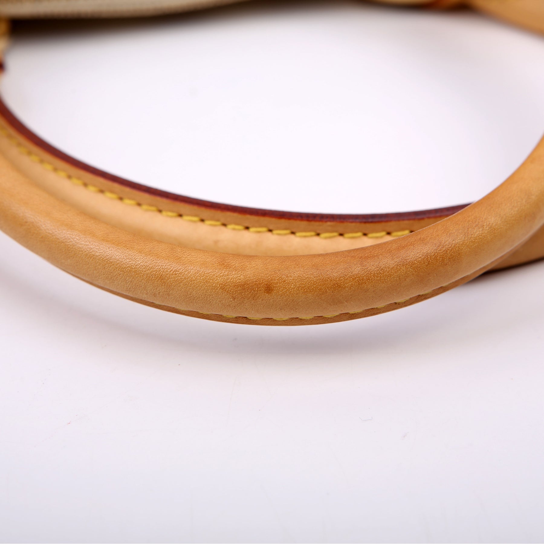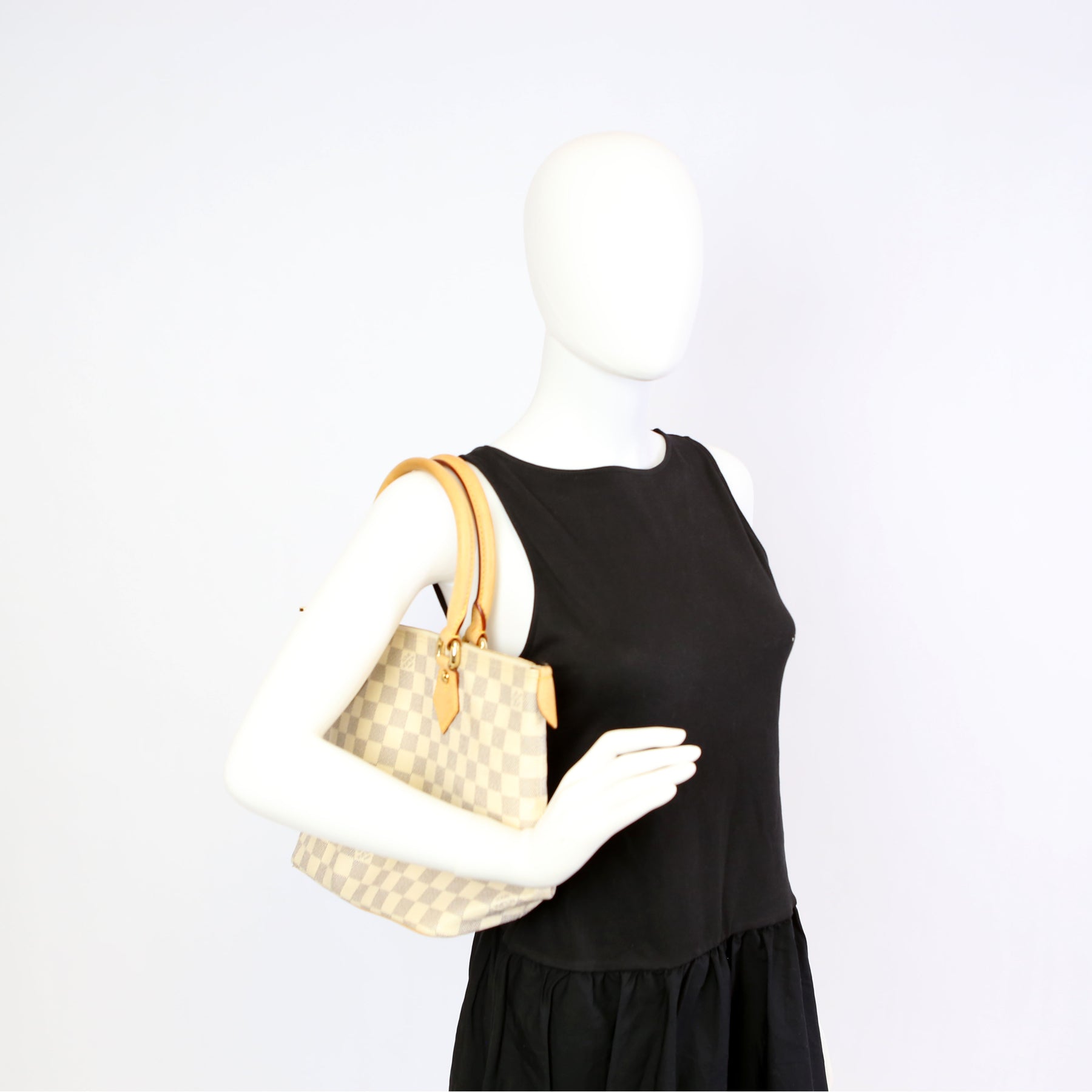 This pre-owned Saleya PM is guaranteed 100% authentic. The exterior is in the classic Louis Vuitton Damier Azur coated canvas.