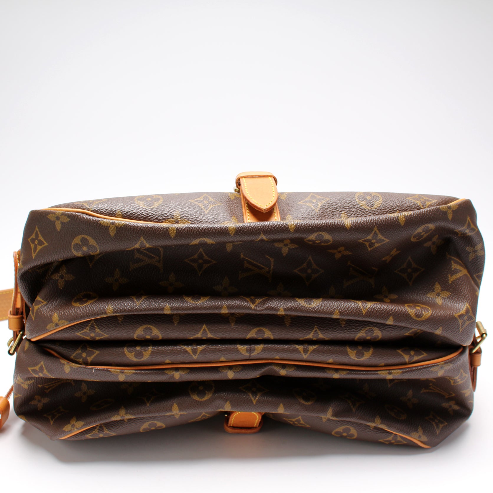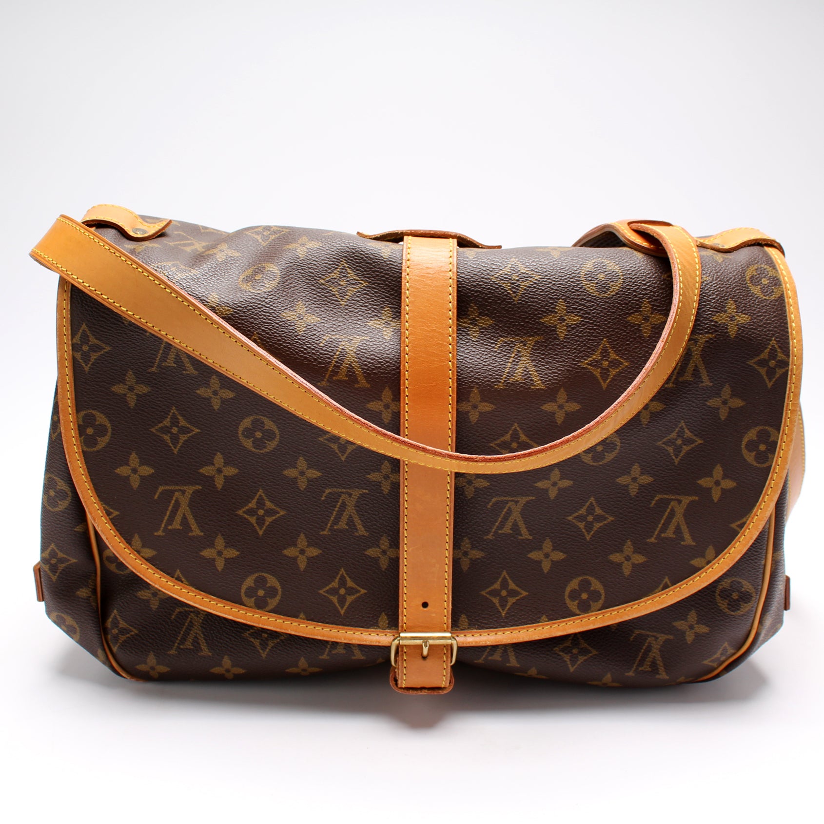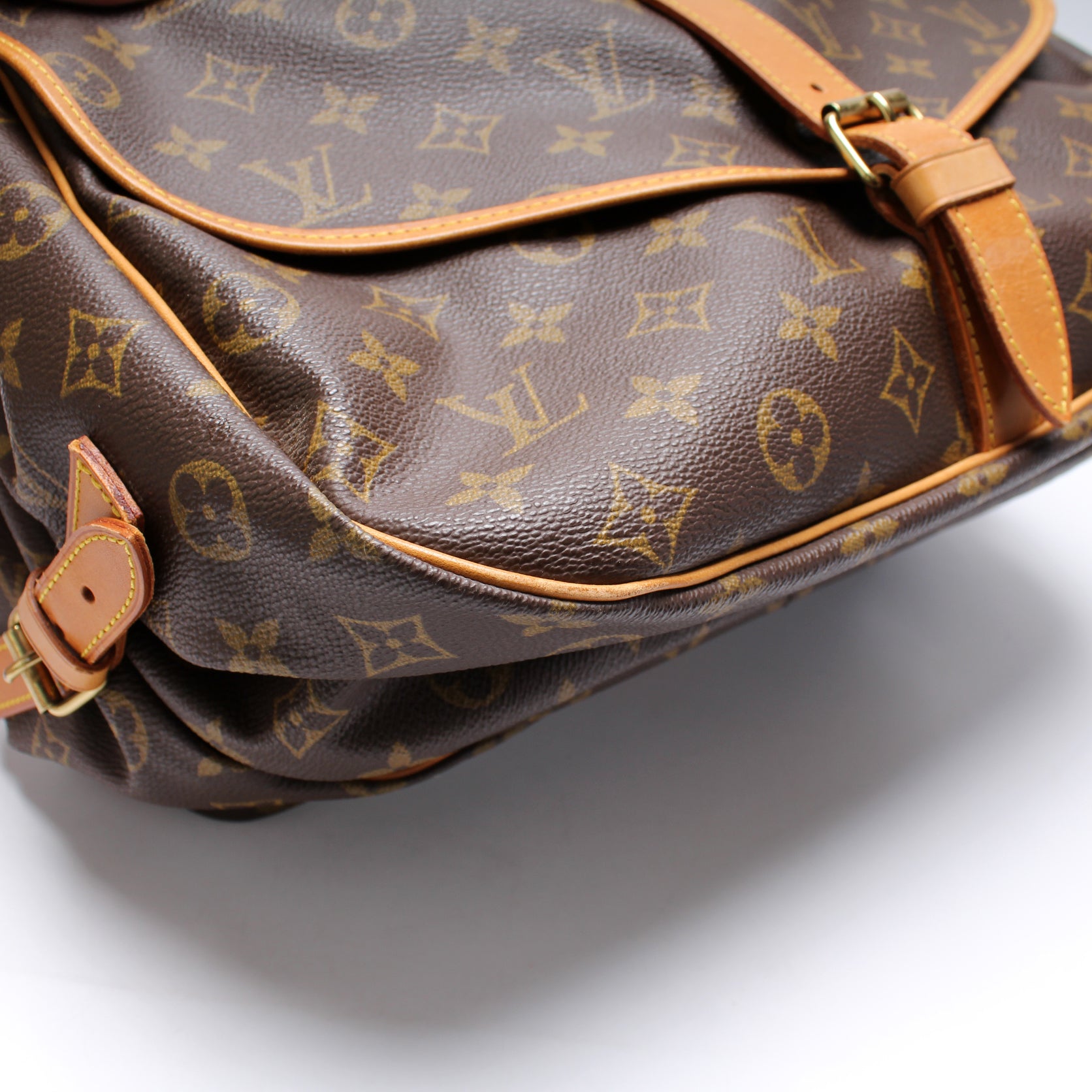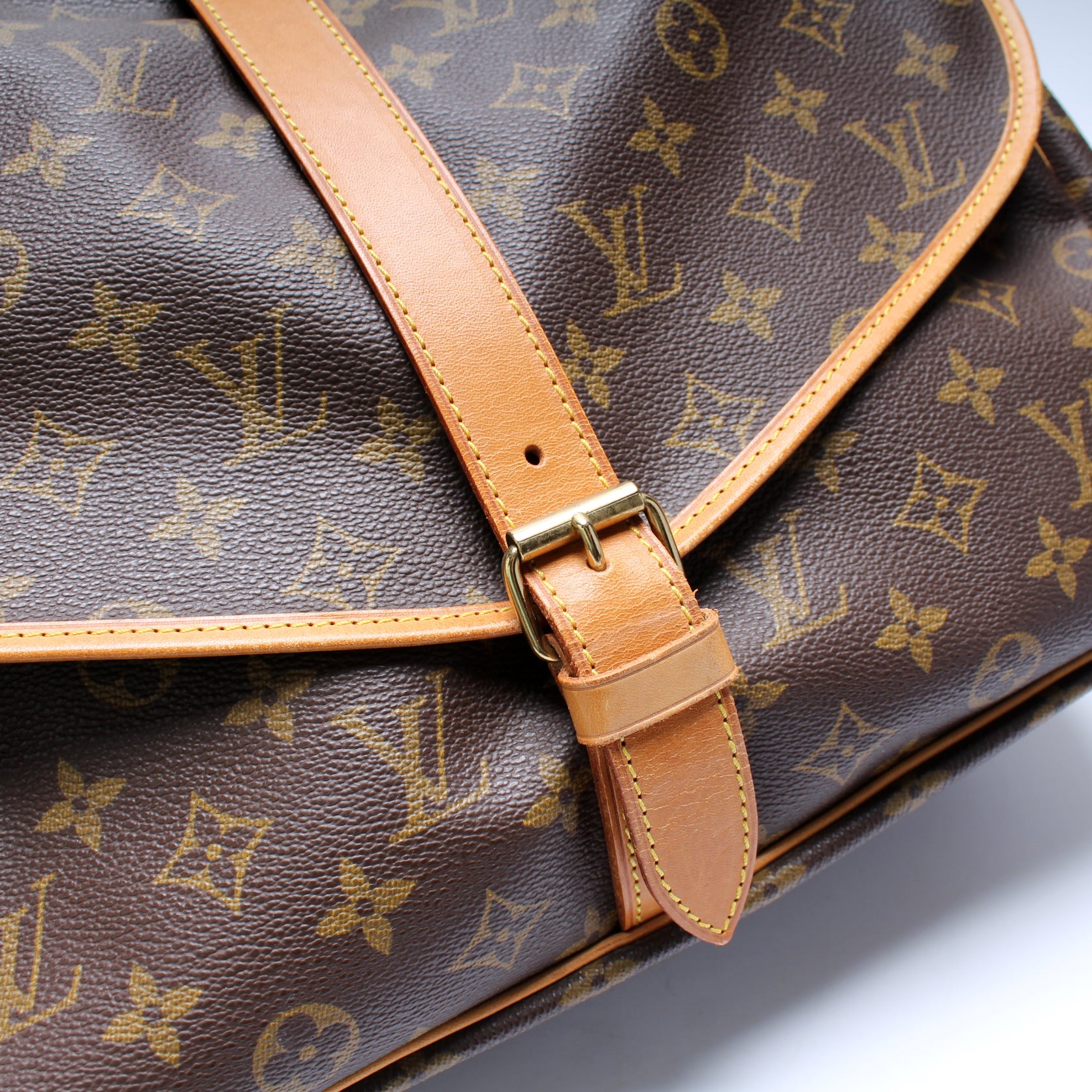 This pre-owned Louis Vuitton Saumur 35 is guaranteed 100% authentic. The exterior is in the classic Louis Vuitton Monogram coated canvas.