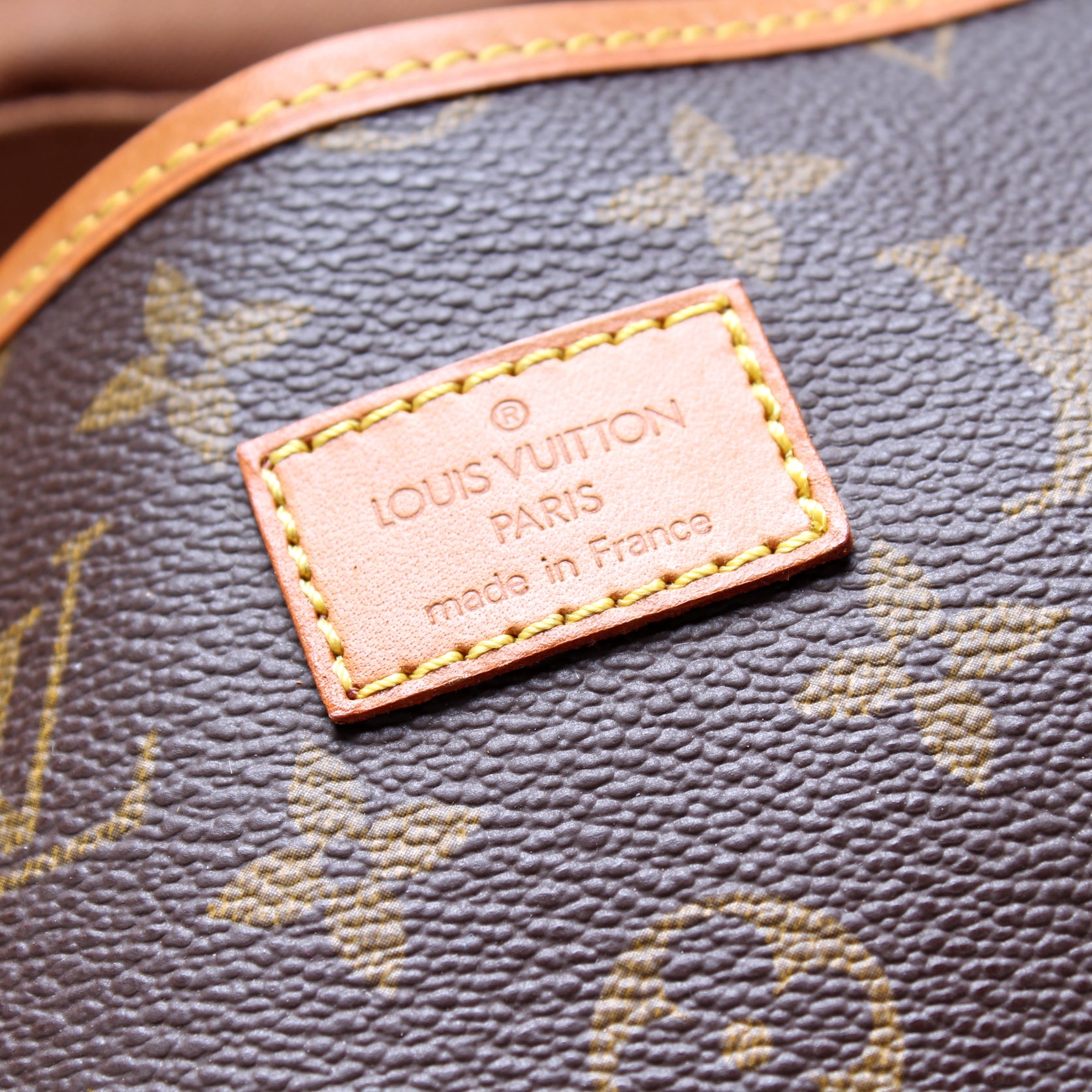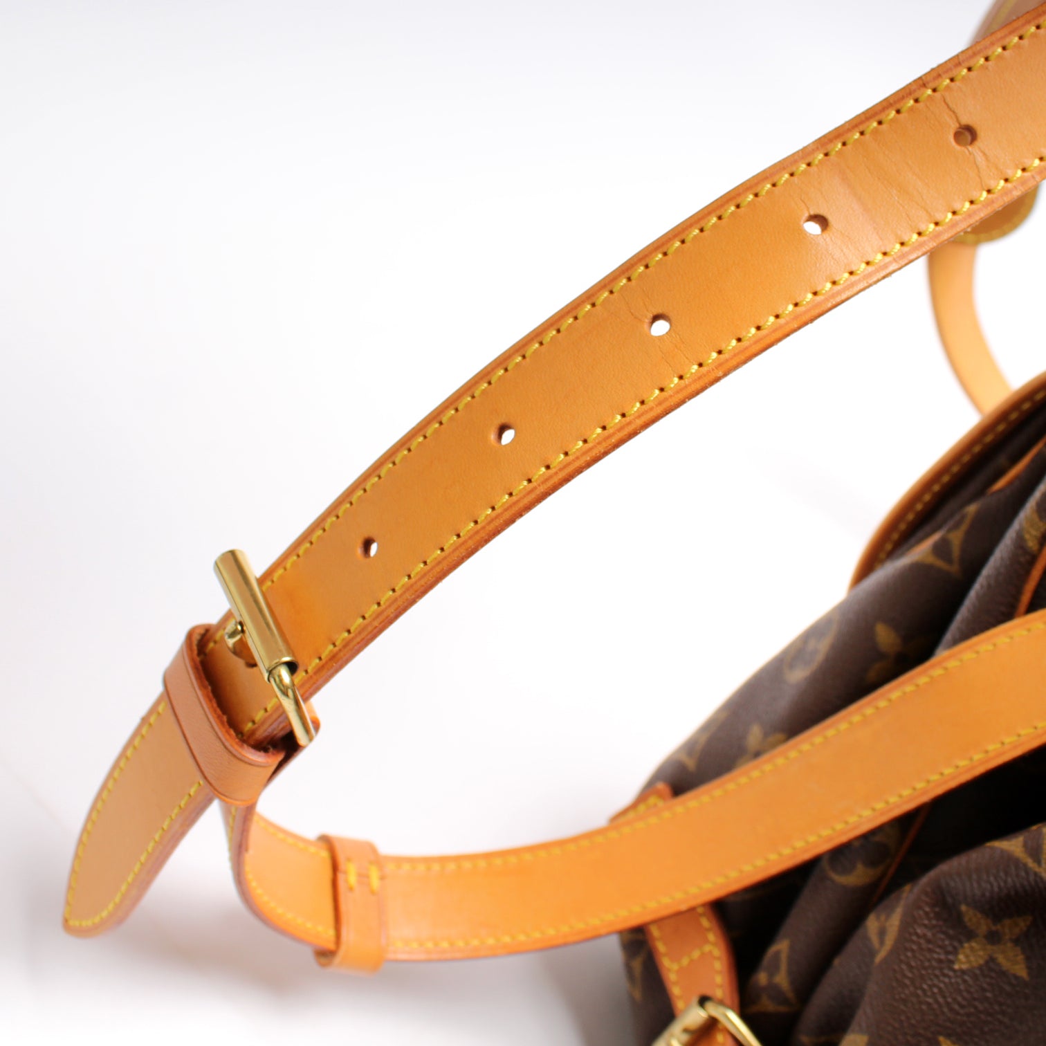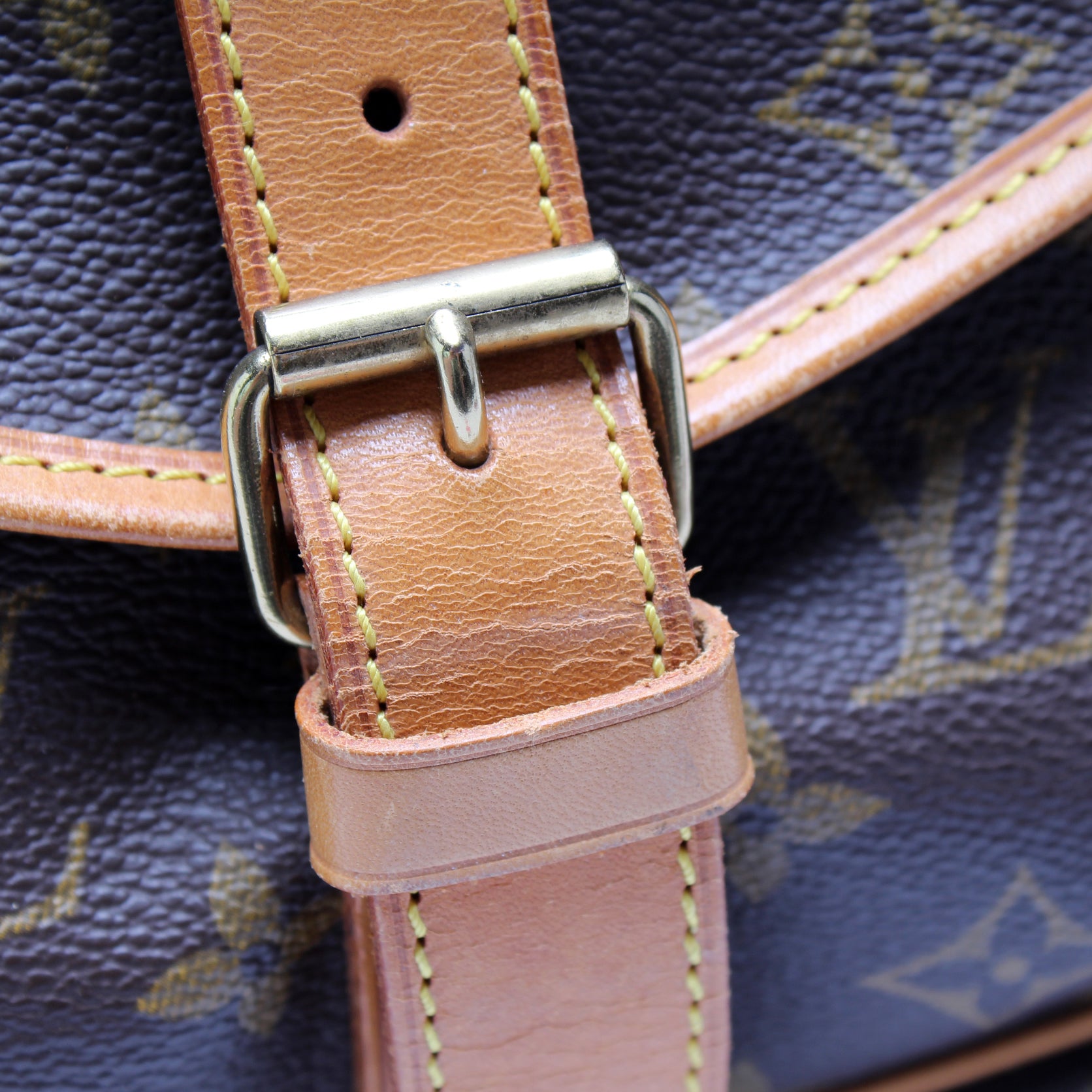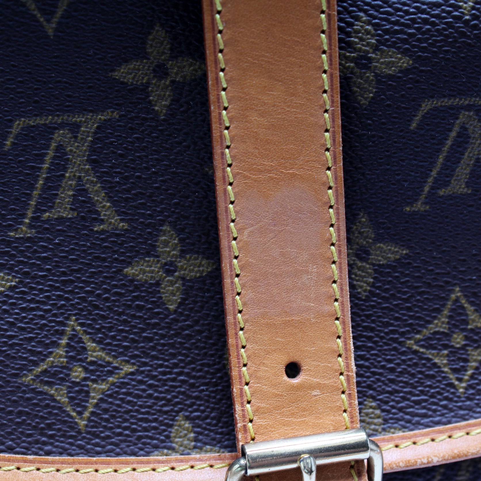 This pre-owned Louis Vuitton Saumur 35 is guaranteed 100% authentic. The exterior is in the classic Louis Vuitton Monogram coated canvas.