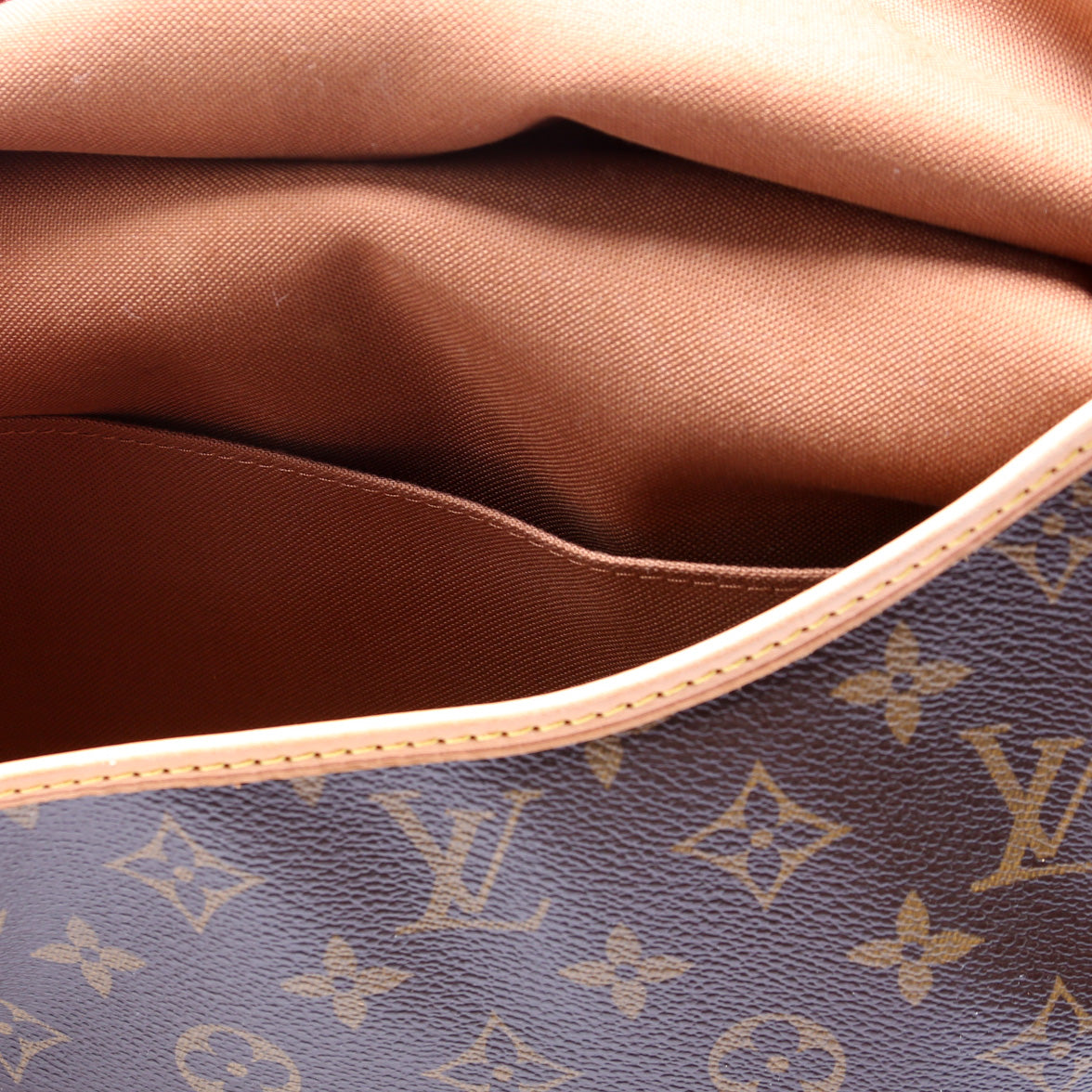 This pre-owned Louis Vuitton Saumur 30 is guaranteed 100% authentic. The exterior is in the classic Louis Vuitton Monogram coated canvas.