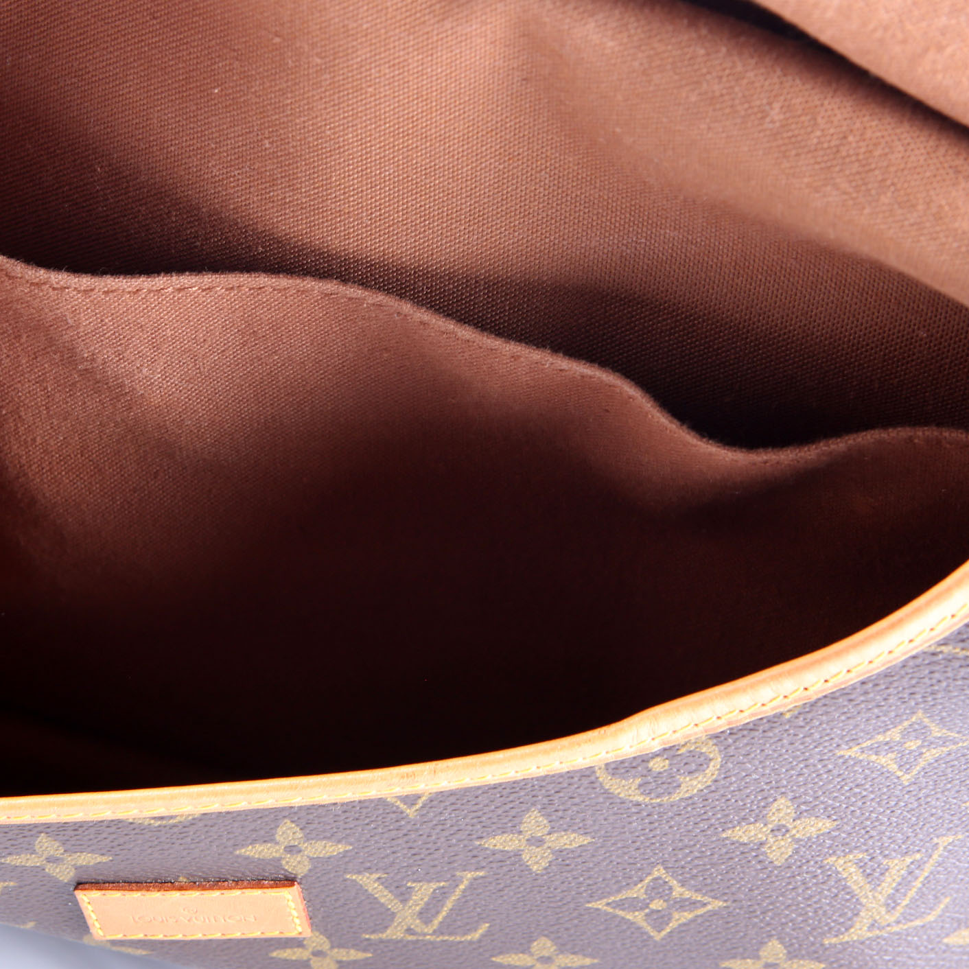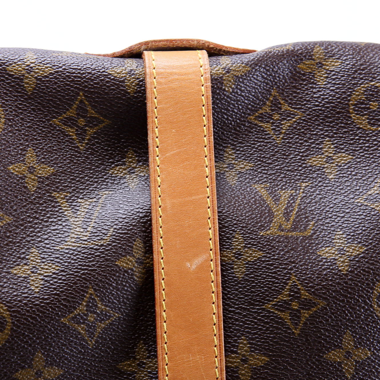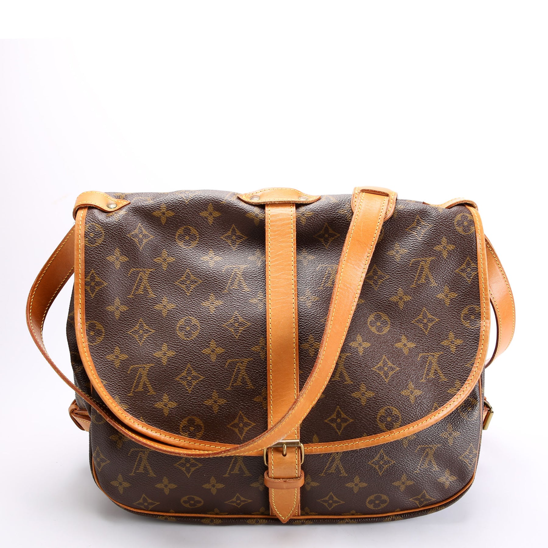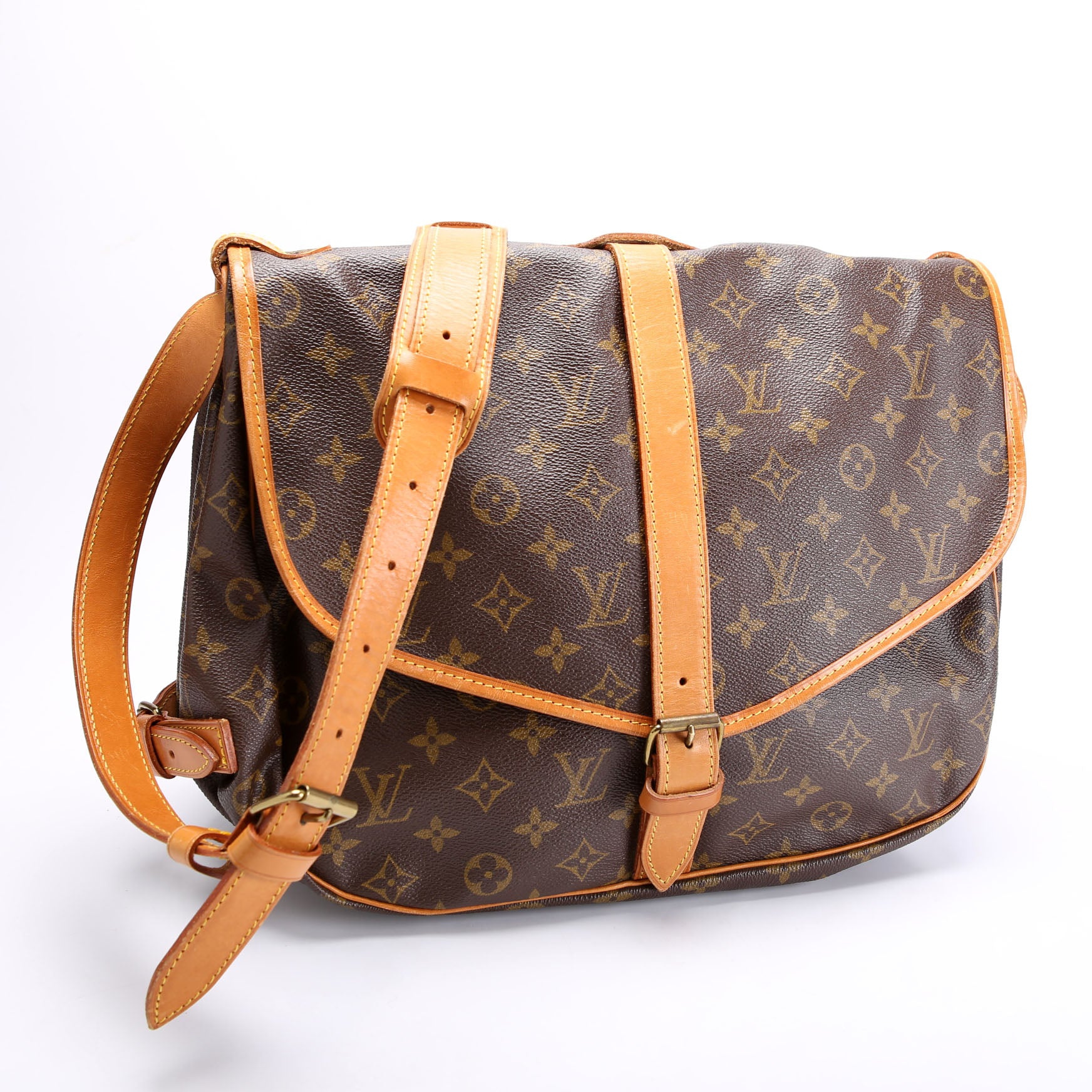This pre-owned Louis Vuitton Saumur 35 is guaranteed 100% authentic. The exterior is in the classic Louis Vuitton Monogram coated canvas.
