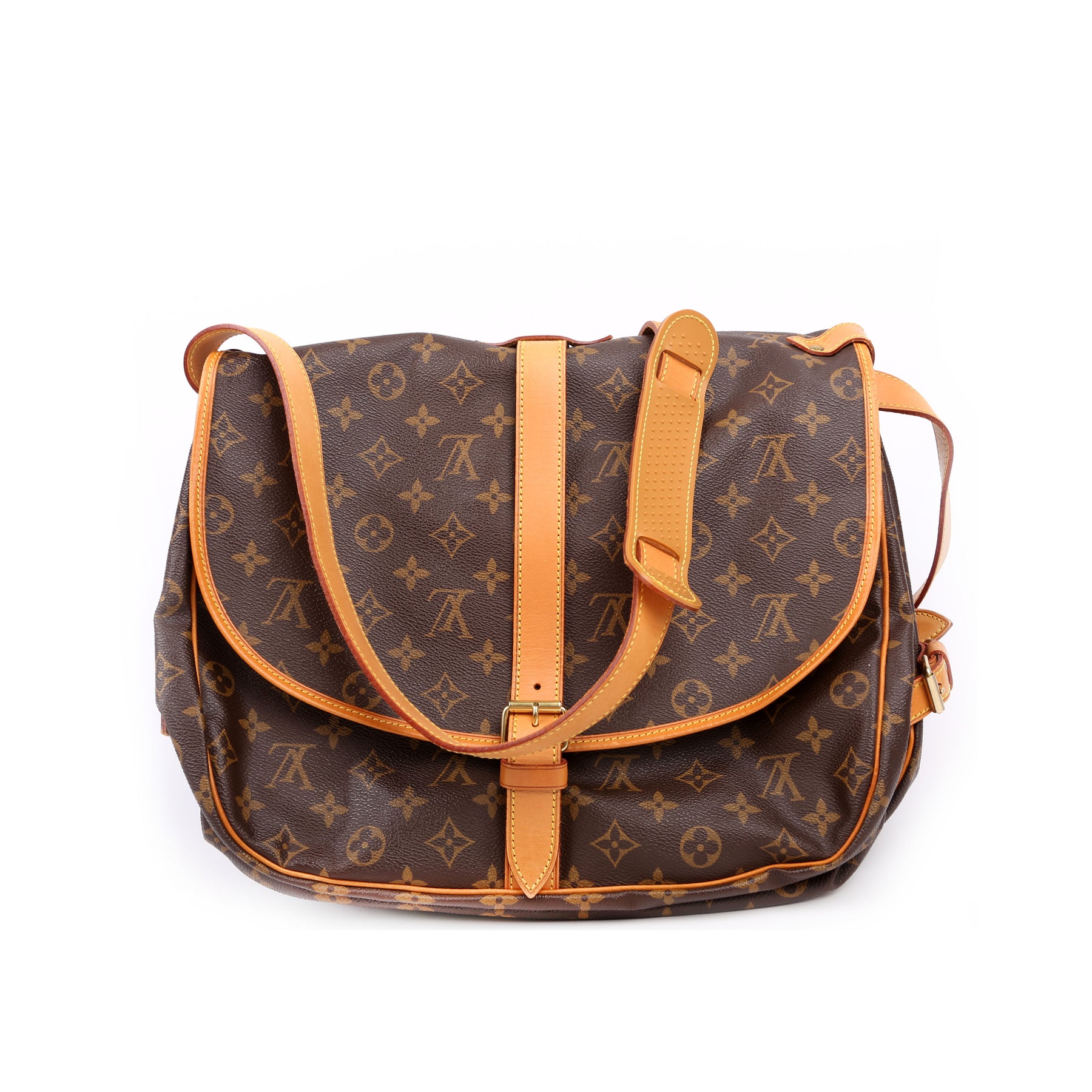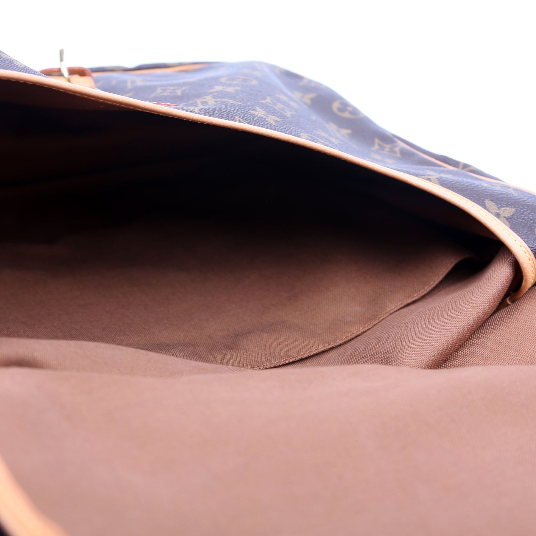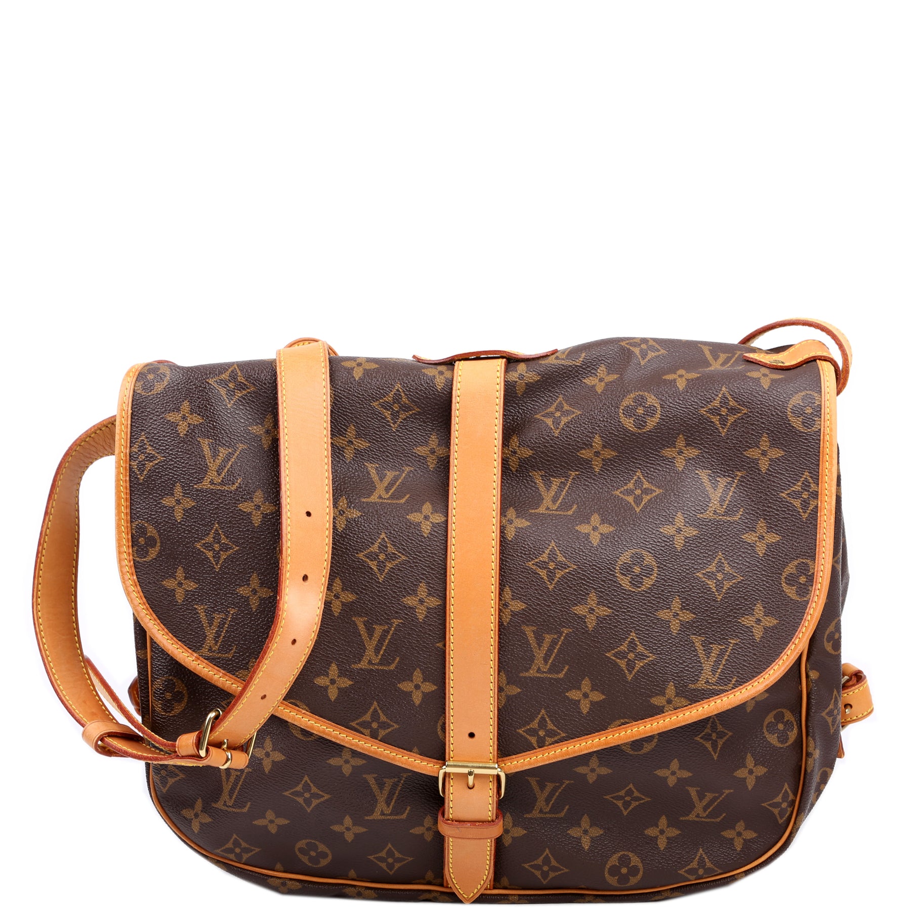 This pre-owned Louis Vuitton Saumur 35 is guaranteed 100% authentic. The exterior is in the classic Louis Vuitton Monogram coated canvas.