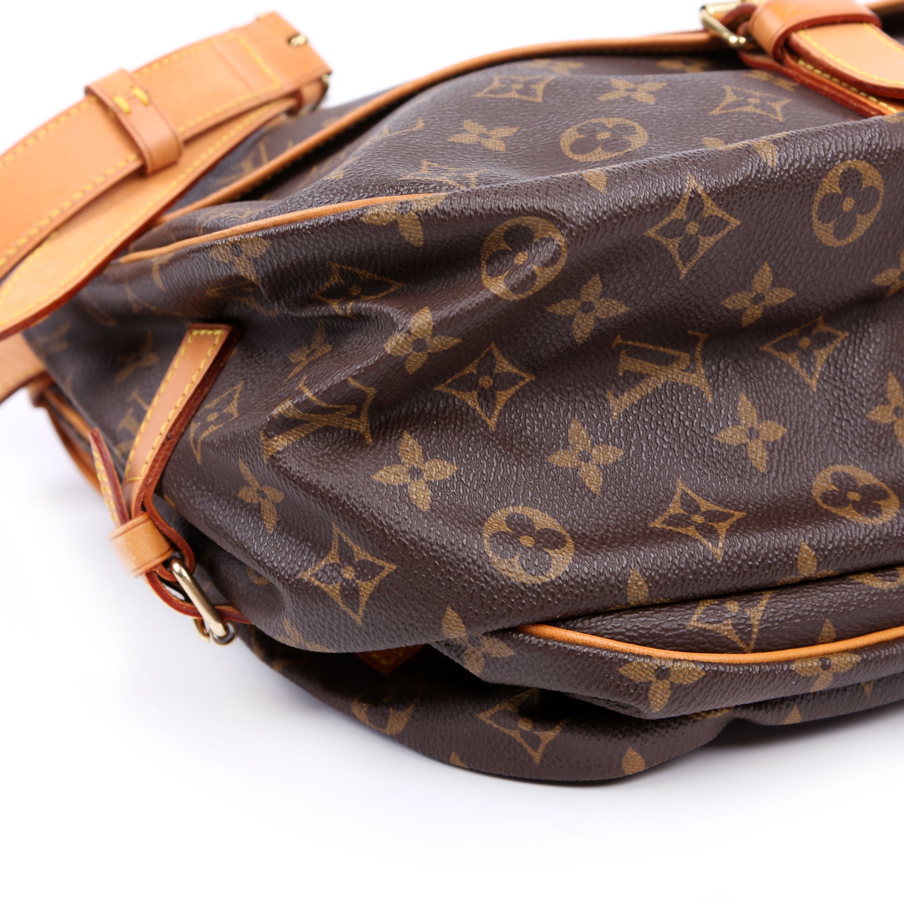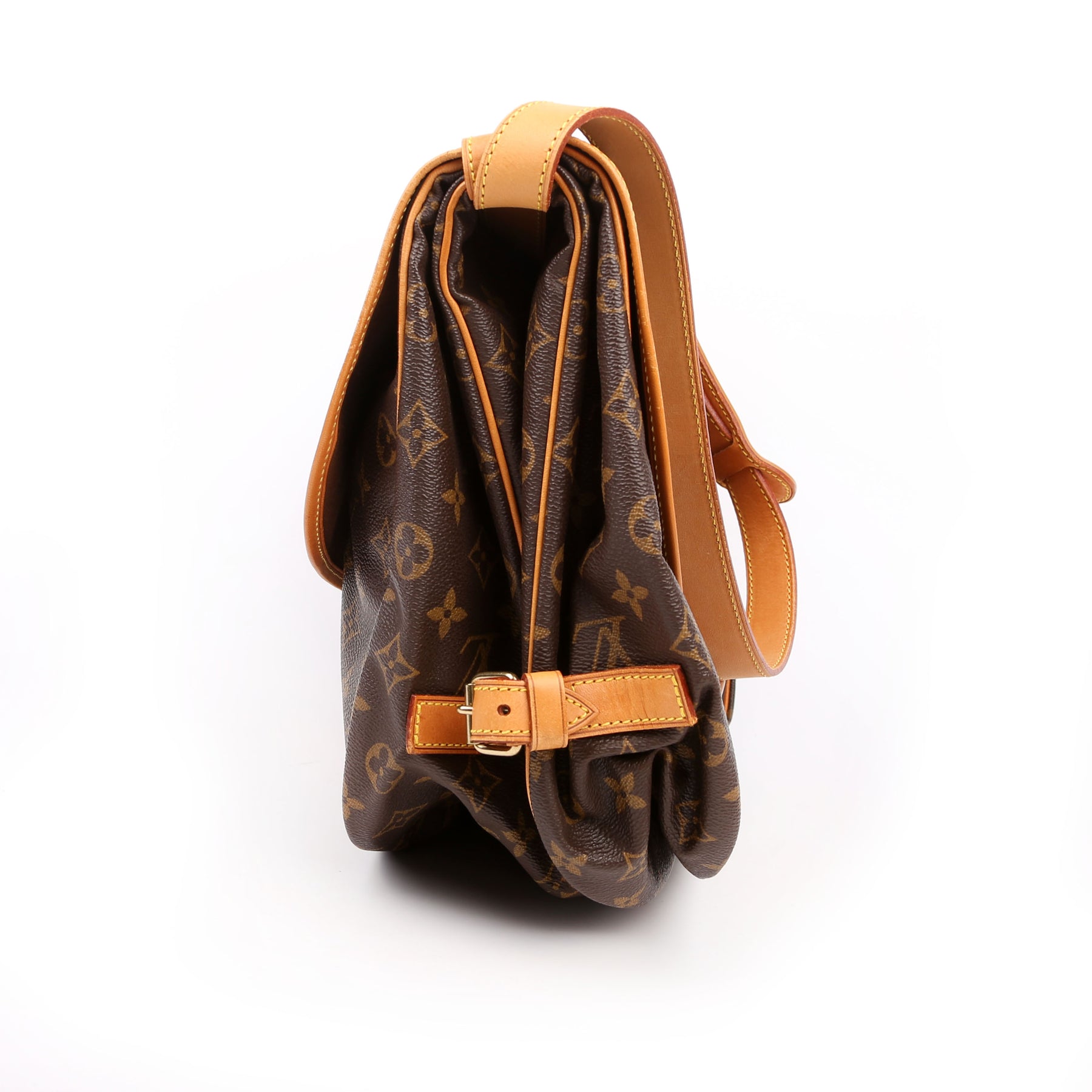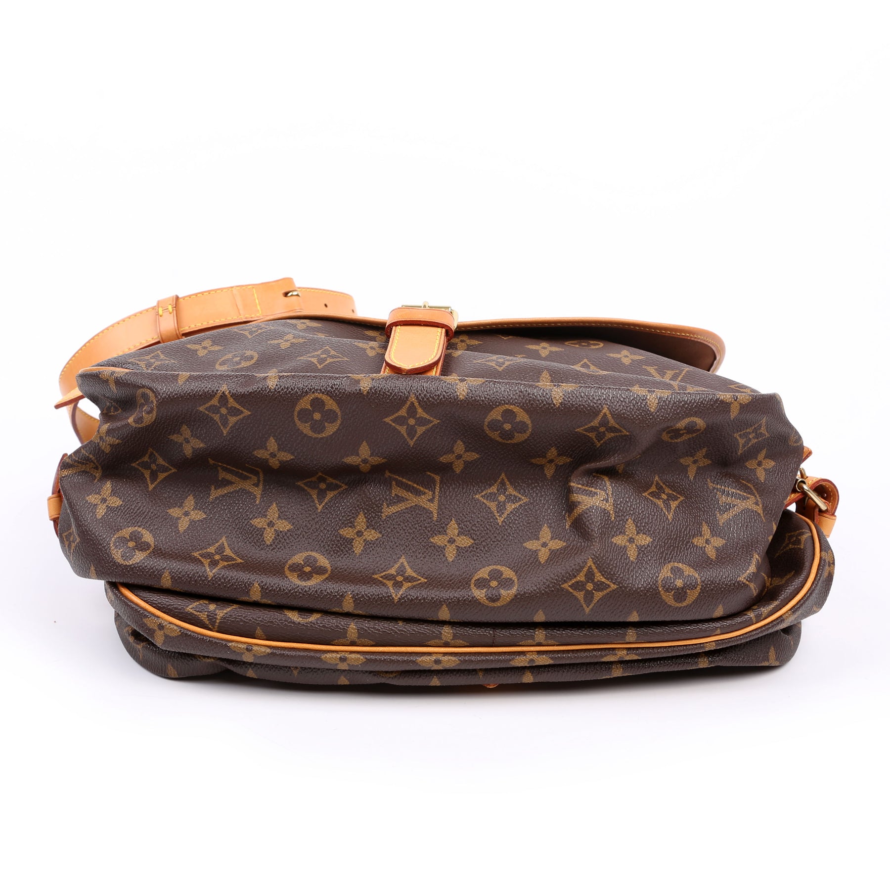 This pre-owned Louis Vuitton Saumur 35 is guaranteed 100% authentic. The exterior is in the classic Louis Vuitton Monogram coated canvas.