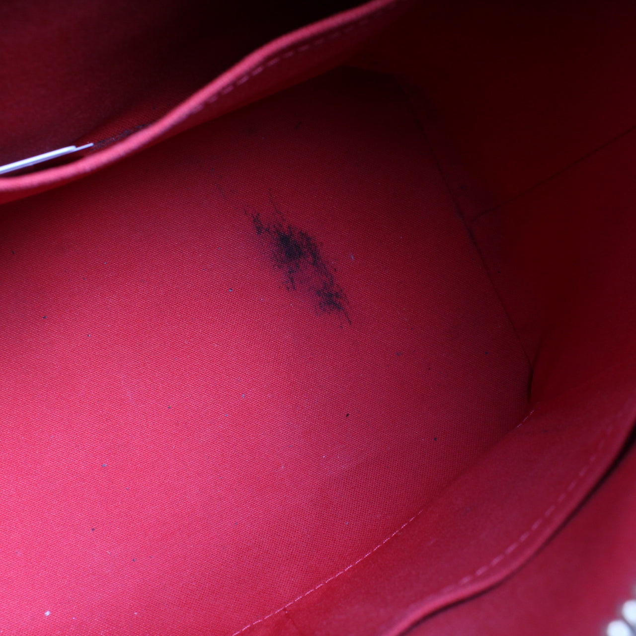 Interior: The interior is free of rips or tears. The interior features three pockets. There are ink stains to the interior fabric.