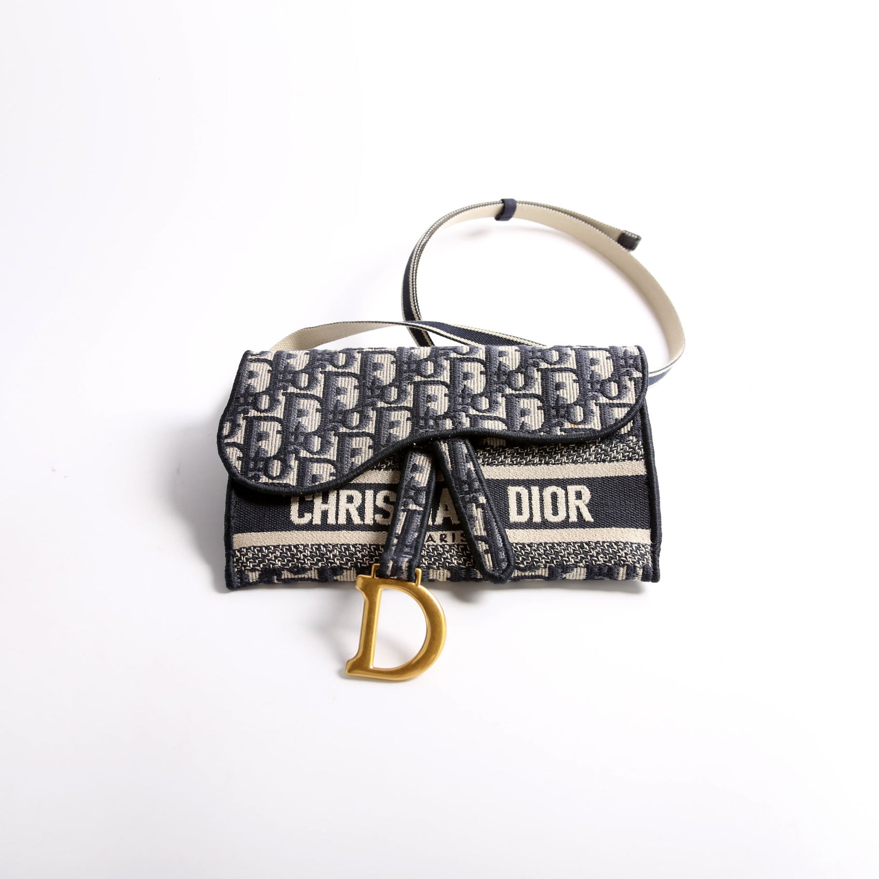 This pre-owned Christian Dior Slim Saddle Belt Bag is guaranteed 100% authentic. The exterior is in the classic Dior Oblique canvas.