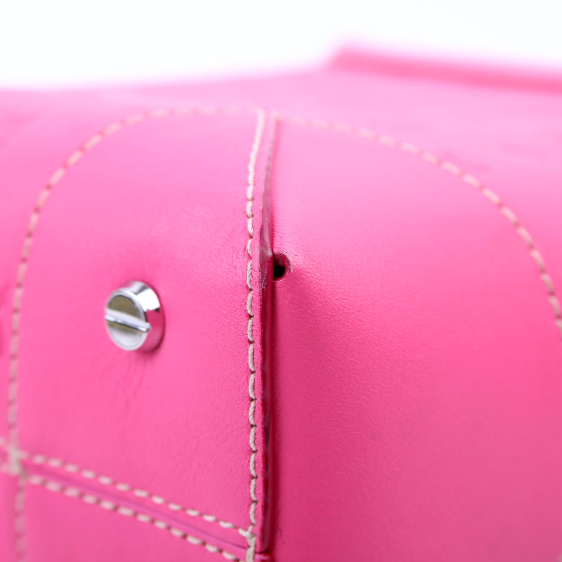 Exterior: The exterior leather has light marks throughout. The corners and pipping show light wear.
