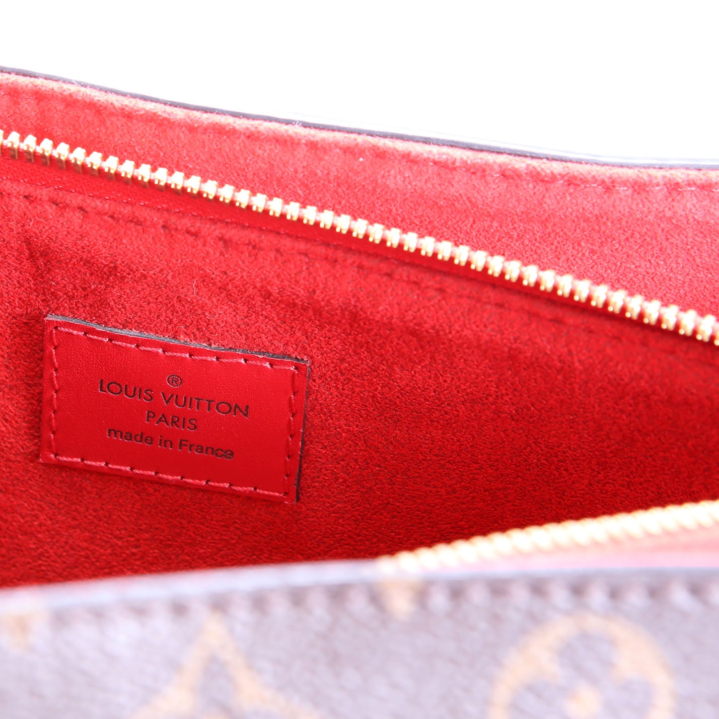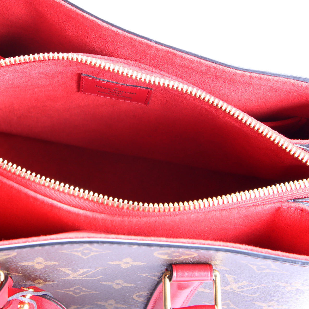 Interior: The interior is free from wear. It features two open sections, one open pocket, and one zip closure pocket.