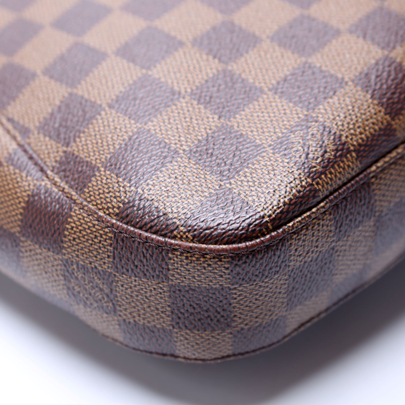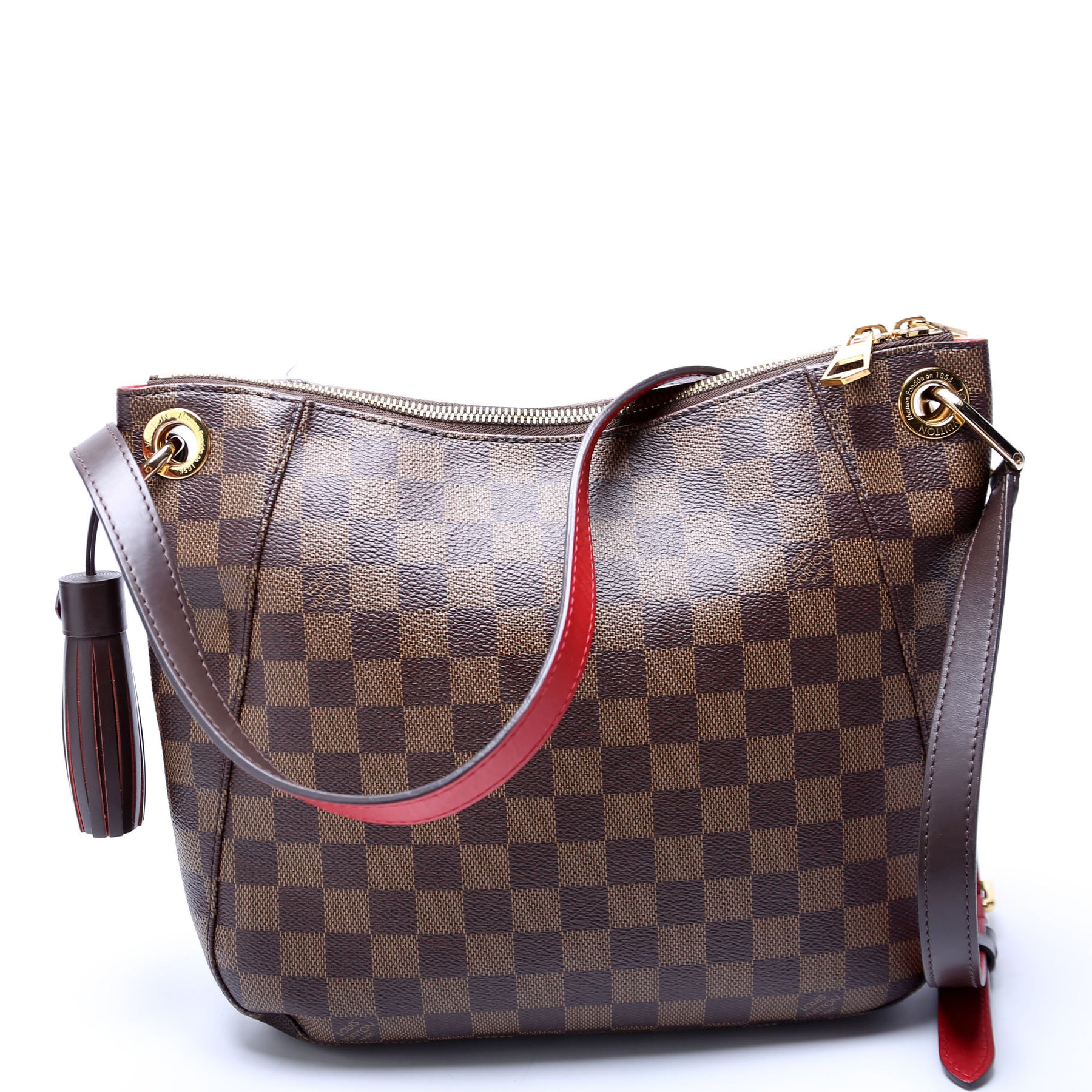 This pre-owned Louis Vuitton South Bank Besace is guaranteed 100% authentic. The exterior is in the classic Louis Vuitton Damier Ebene coated canvas.