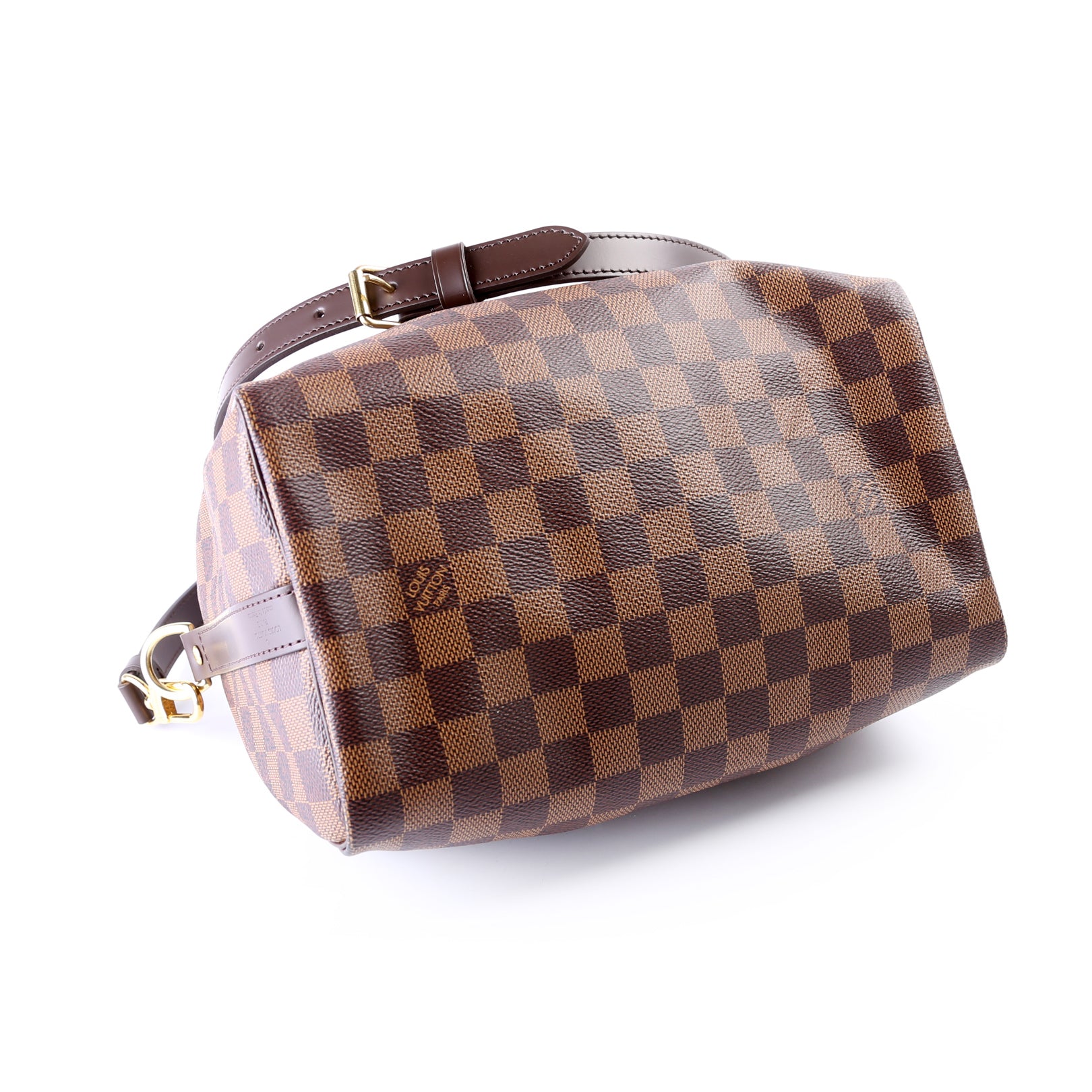 This pre-owned Louis Vuitton Speedy 25 is guaranteed 100% authentic. The exterior is in the classic Louis Vuitton Damier Ebene coated canvas.