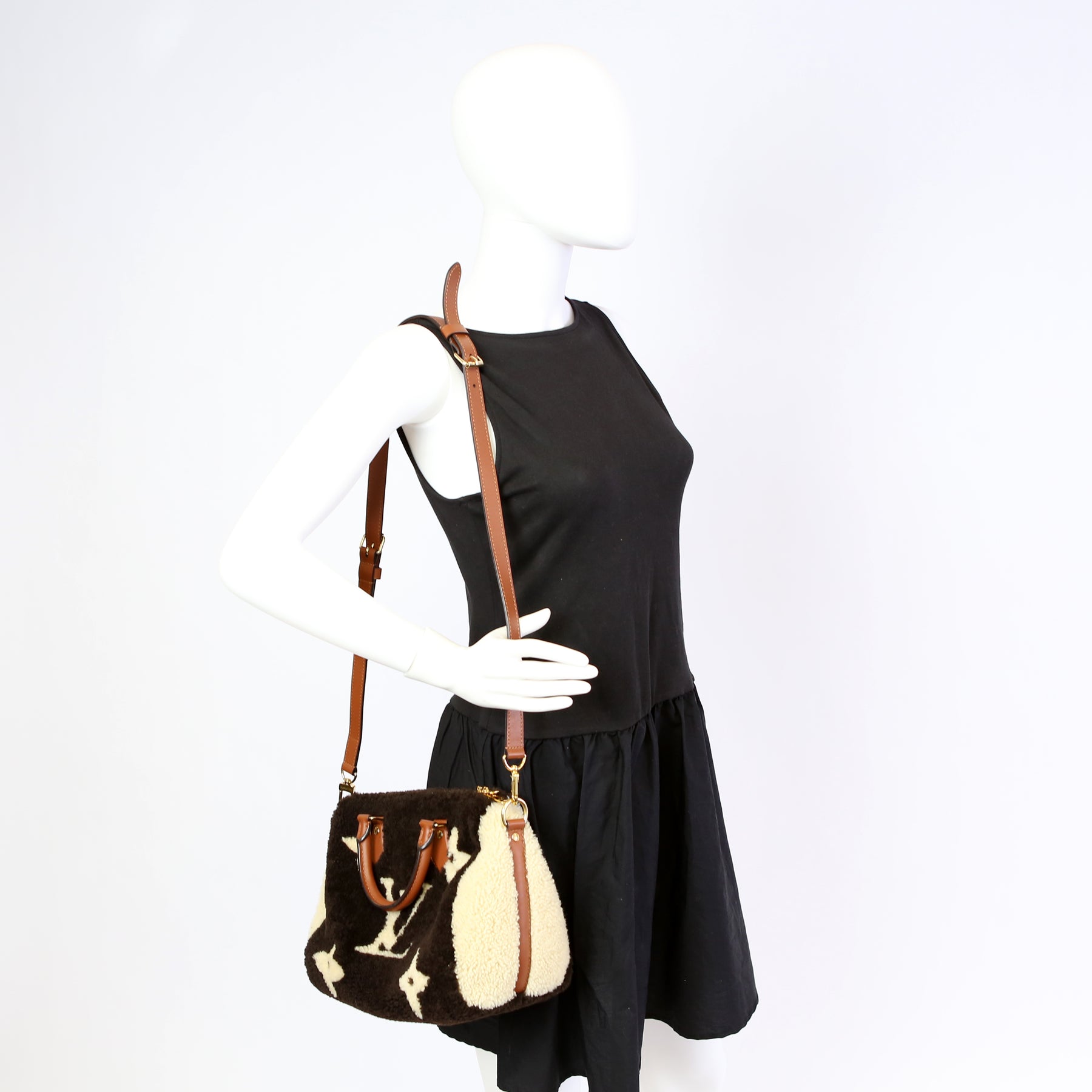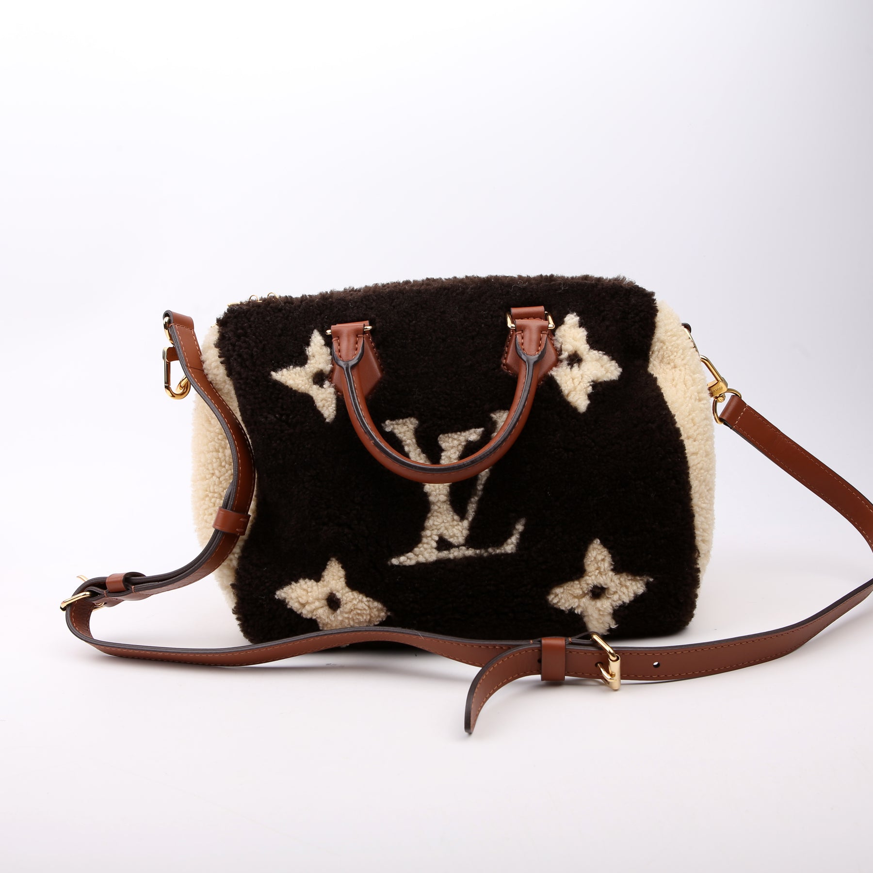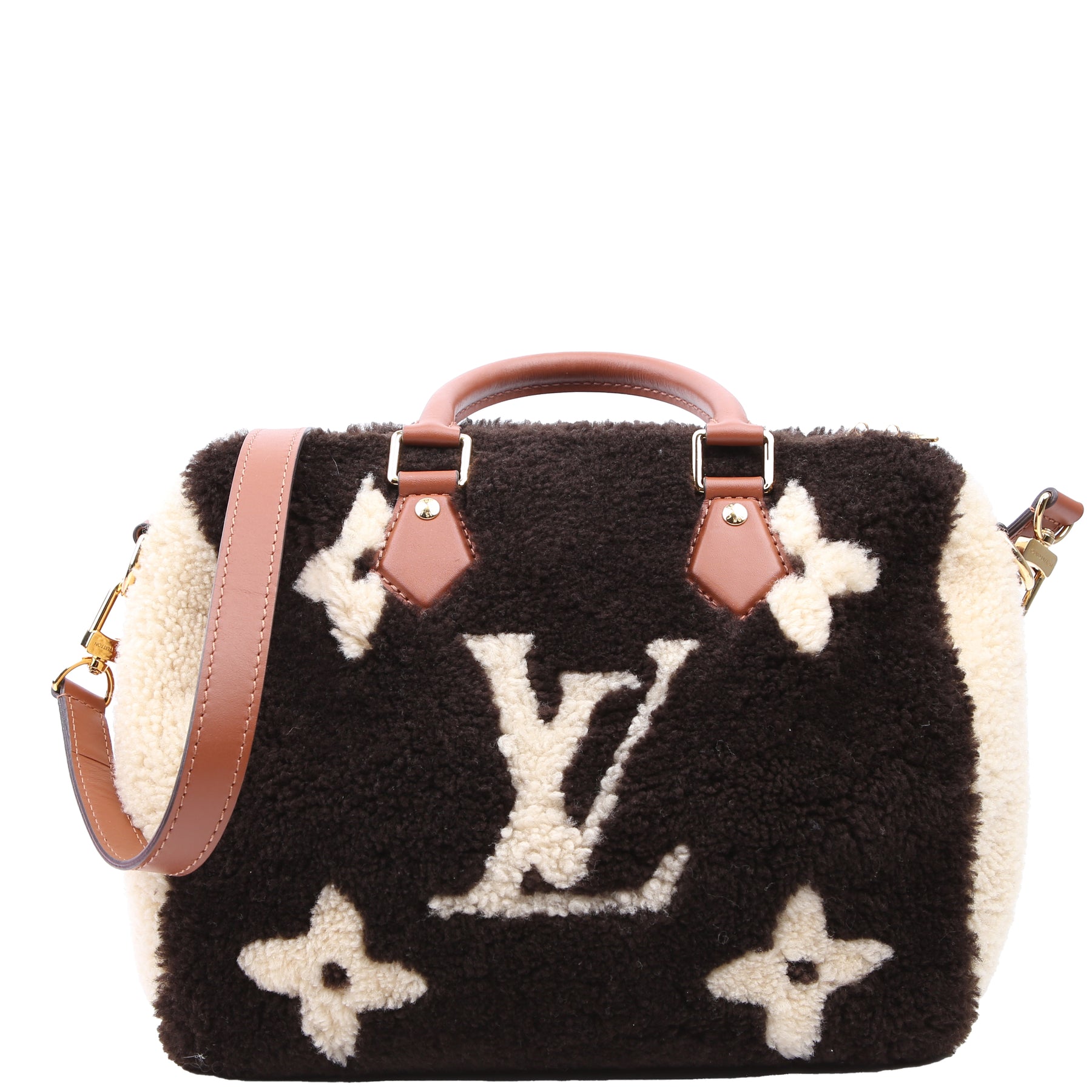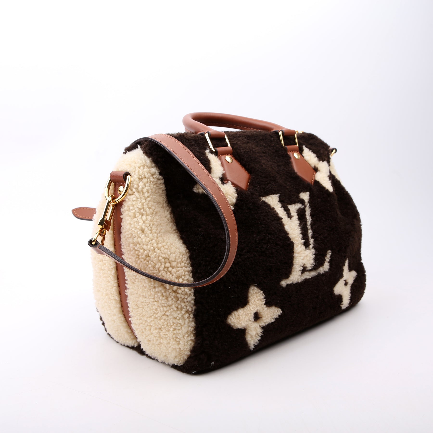 This pre-owned Louis Vuitton Speedy 25 is guaranteed 100% authentic. The exterior is in the classic Louis Vuitton Teddy shearling.