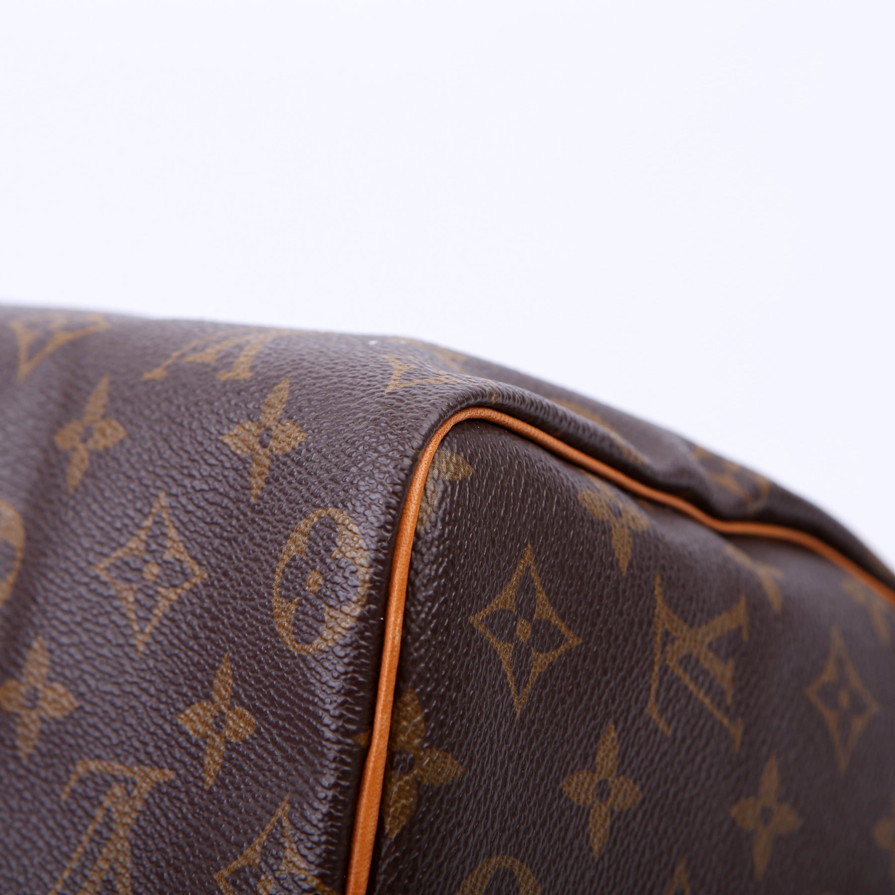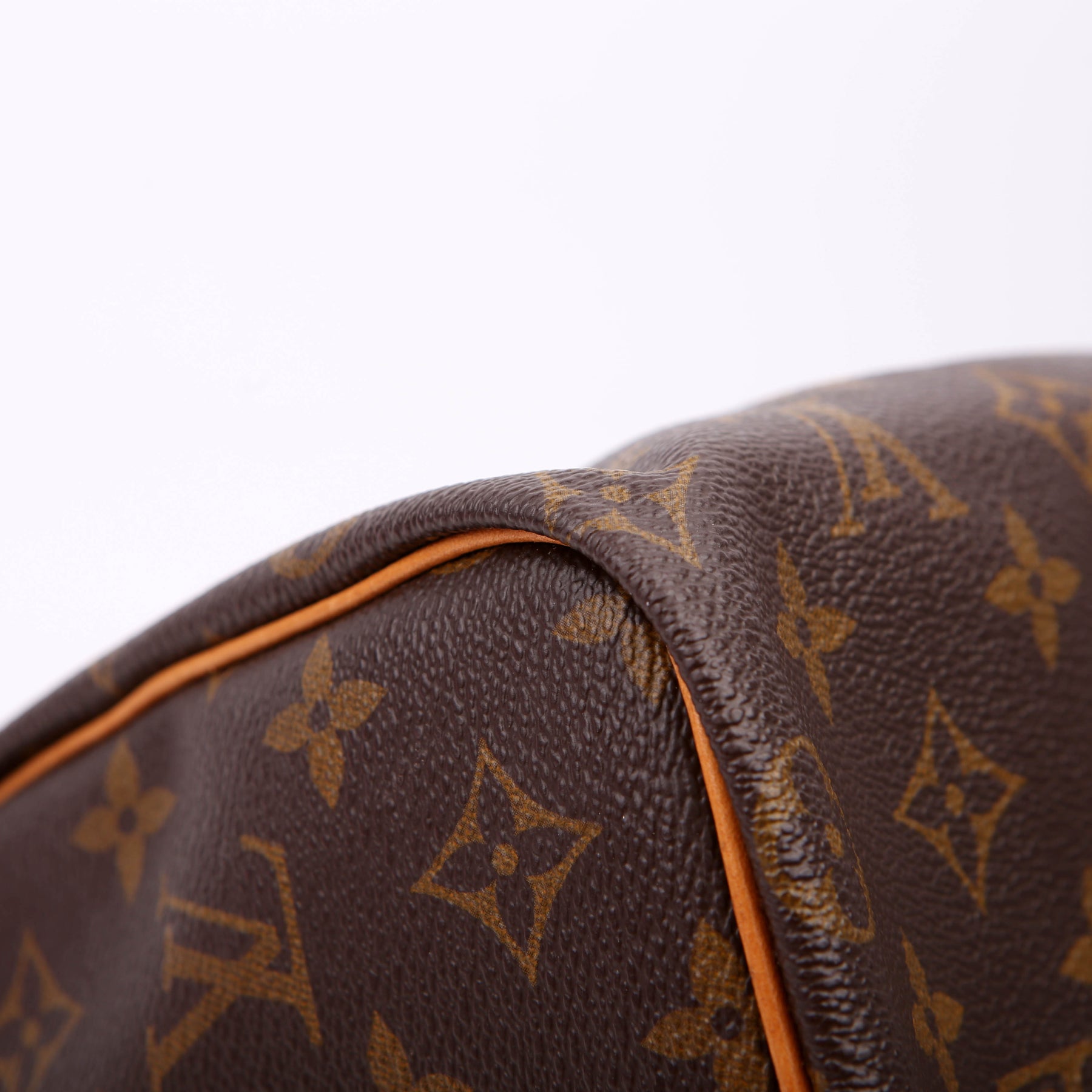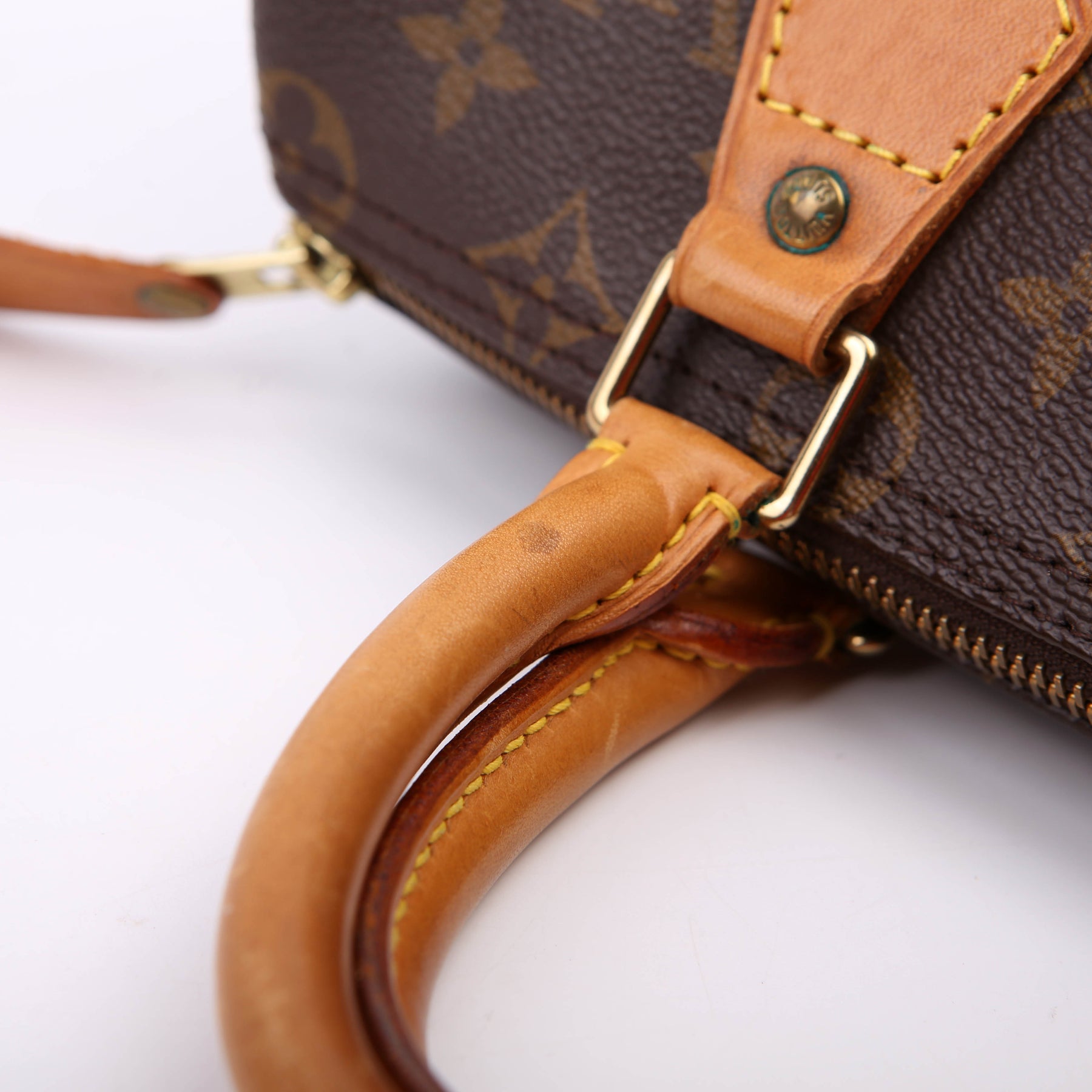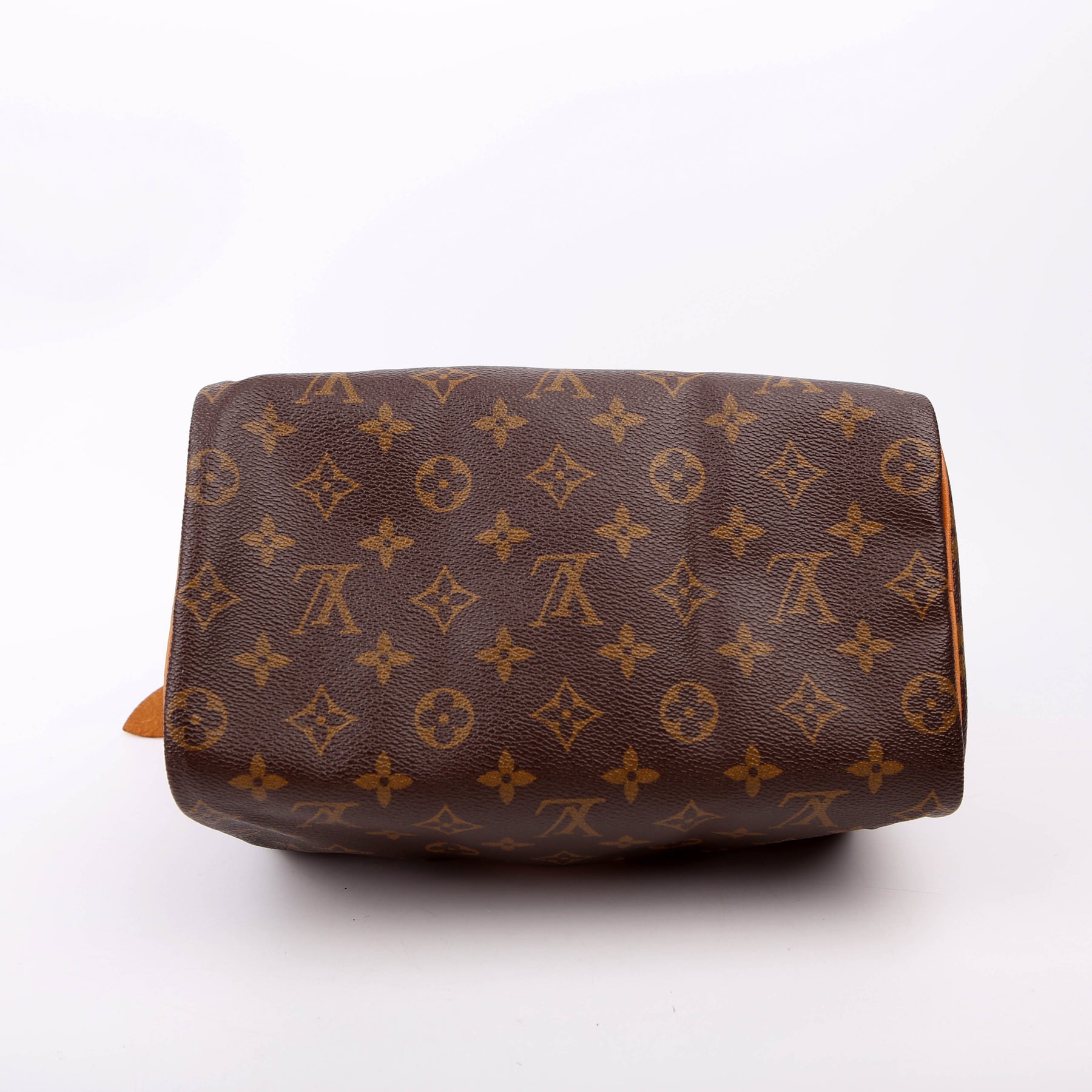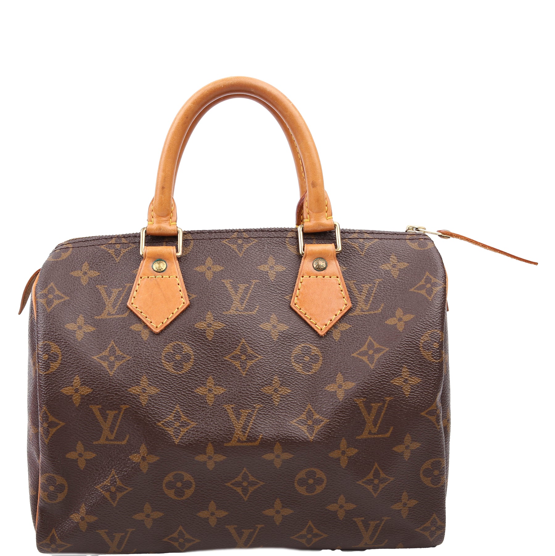 This pre-owned Louis Vuitton Speedy 25 is guaranteed 100% authentic. The exterior is in the classic Louis Vuitton Monogram coated canvas.