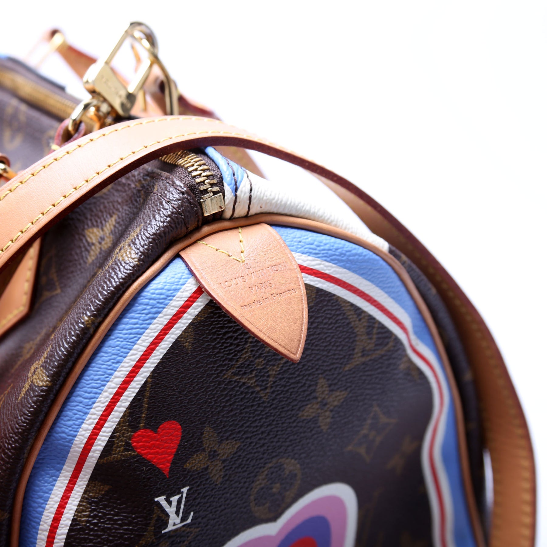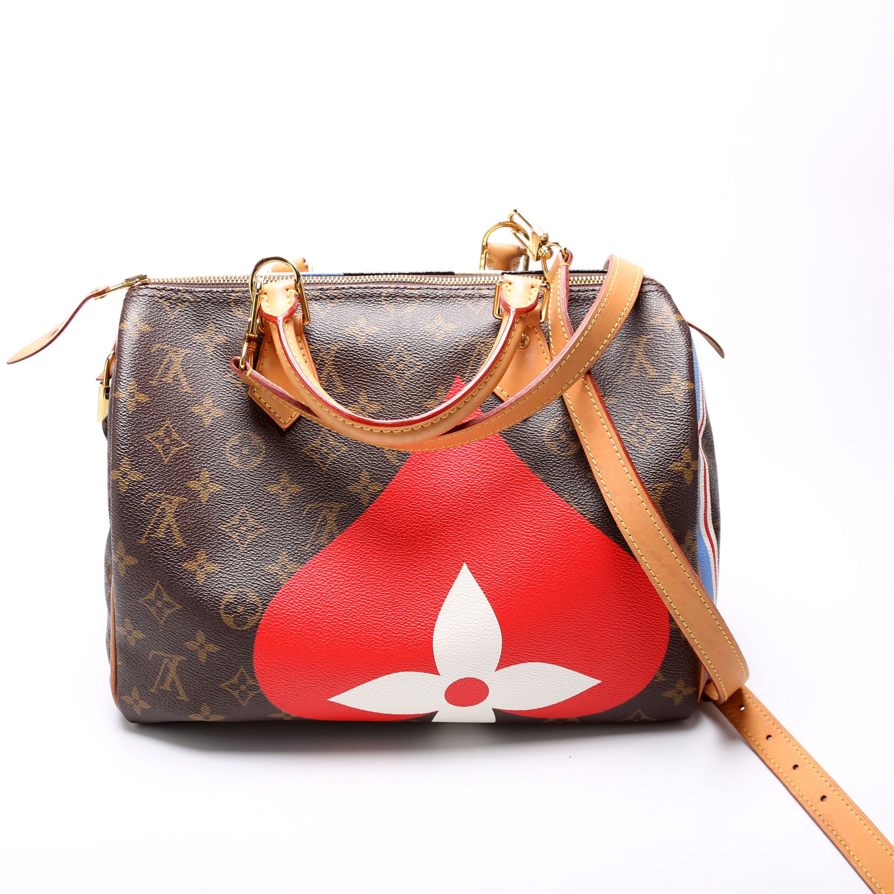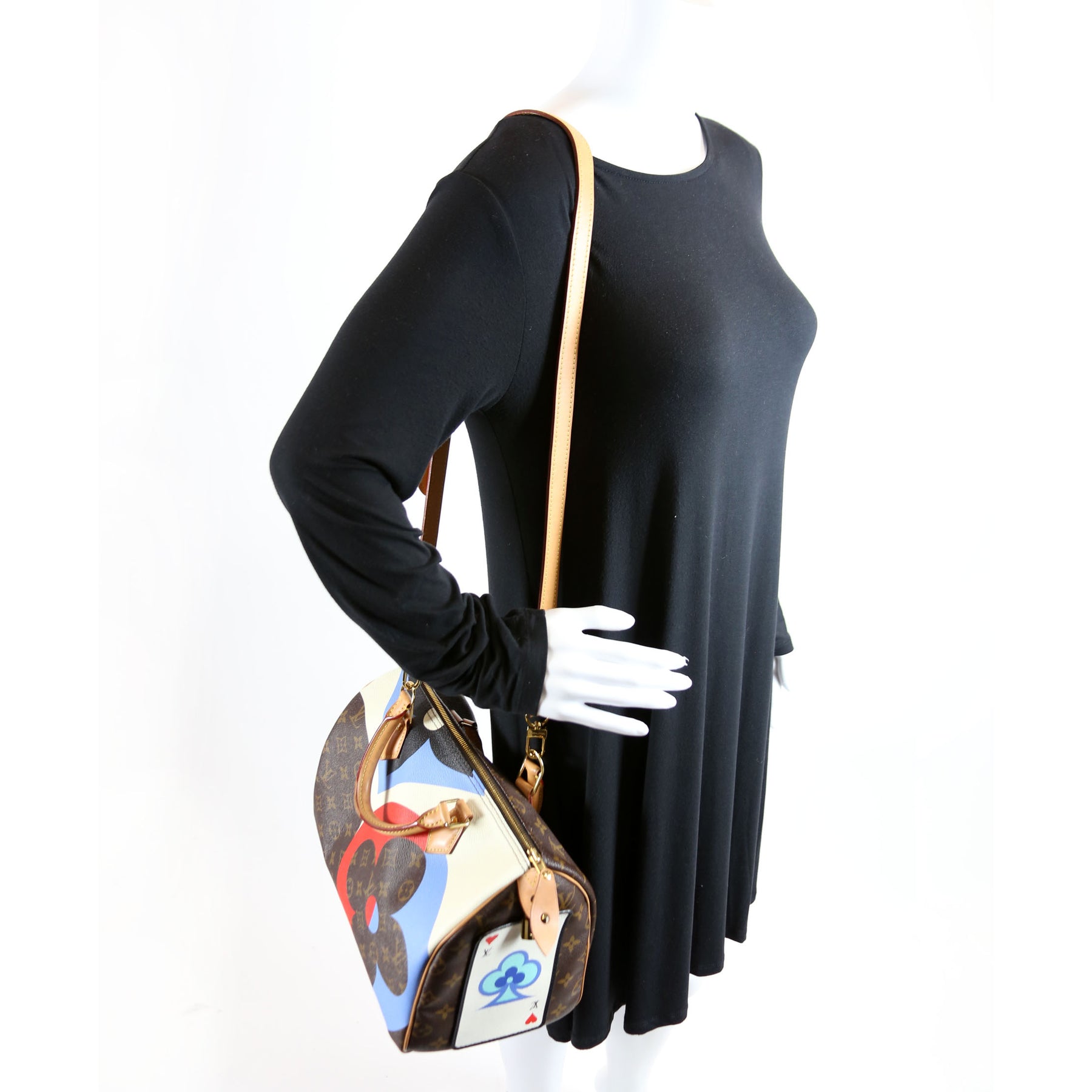 This pre-owned Louis Vuitton Speedy 30 Bandouliere Game On is guaranteed 100% authentic. The exterior is in the classic Louis Vuitton Monogram coated canvas.
