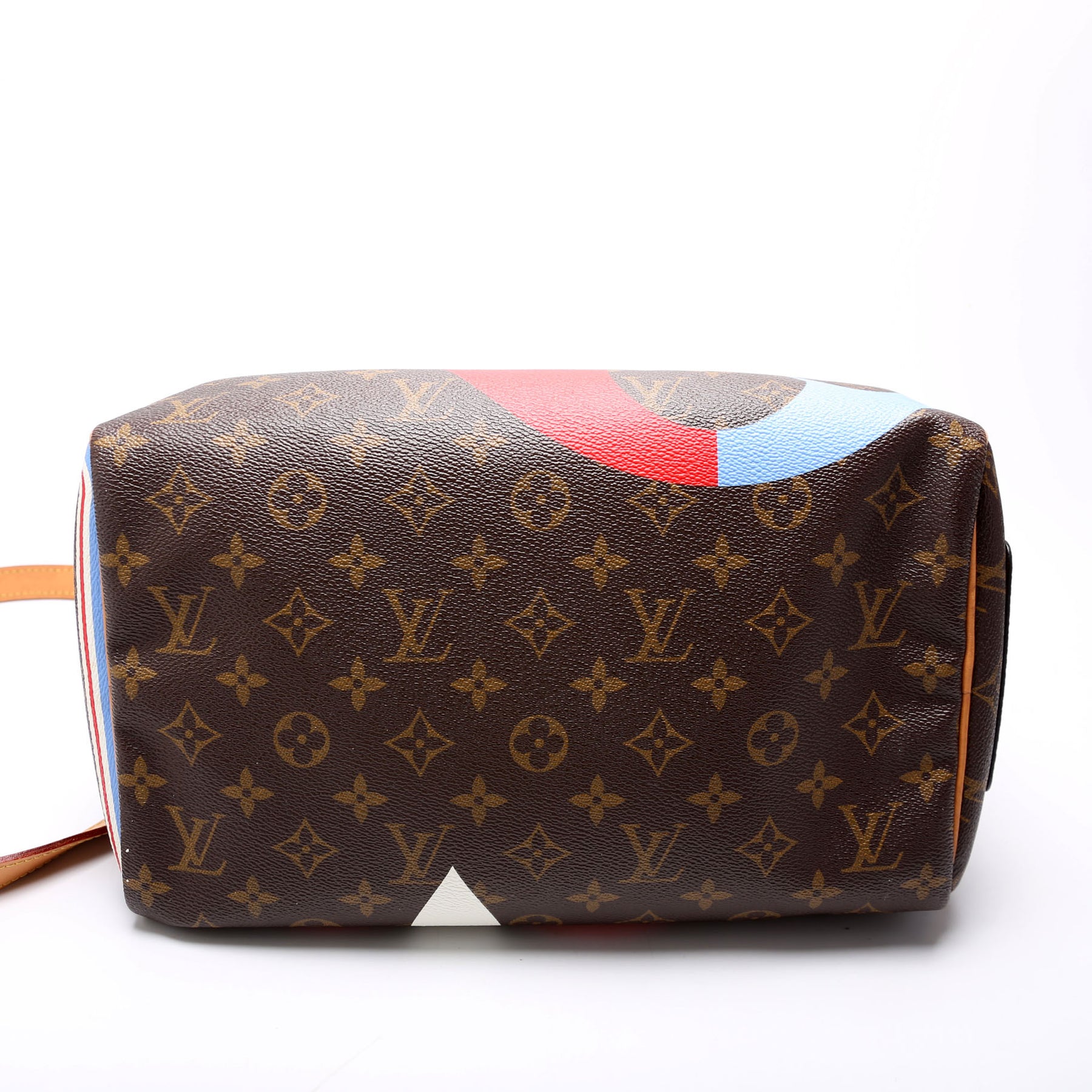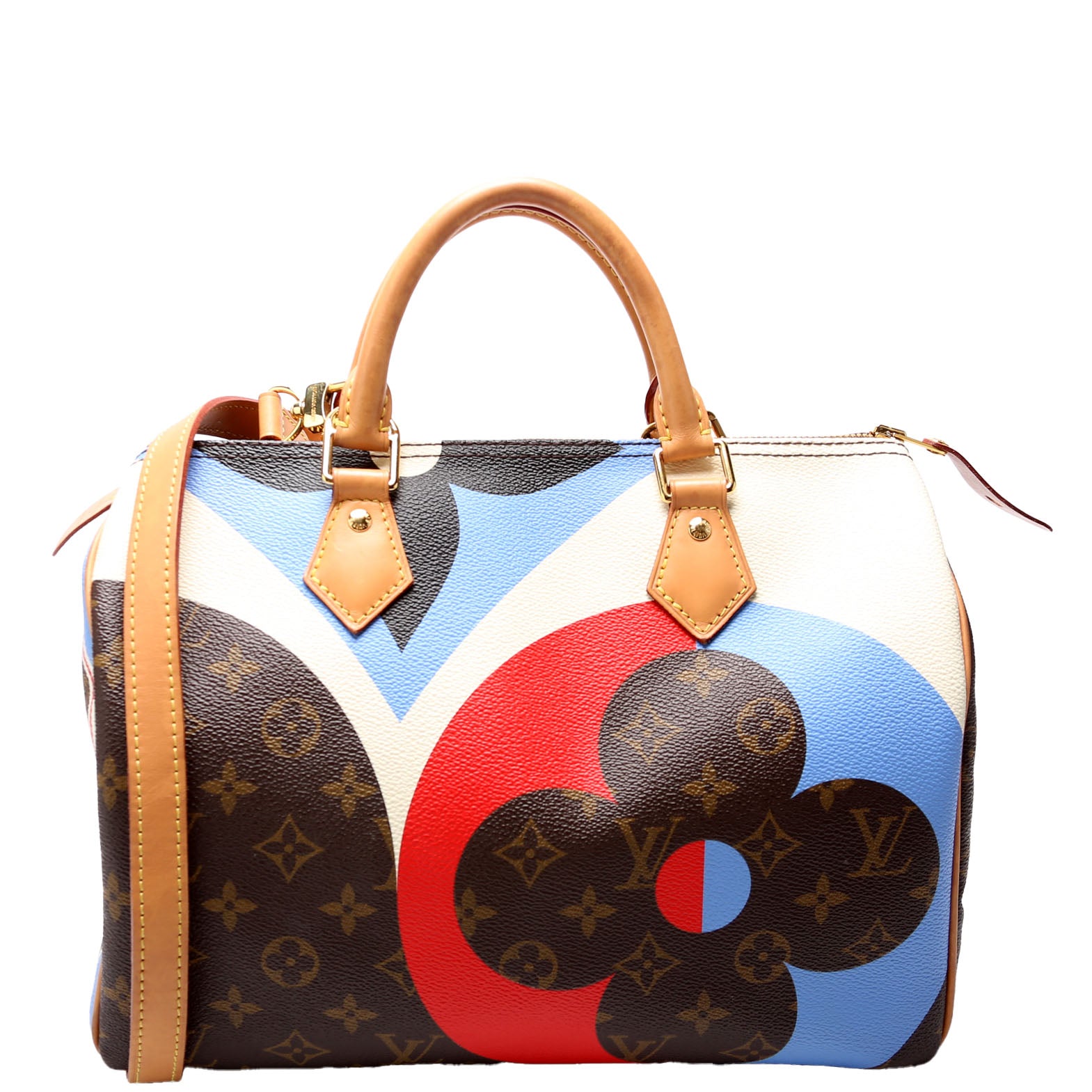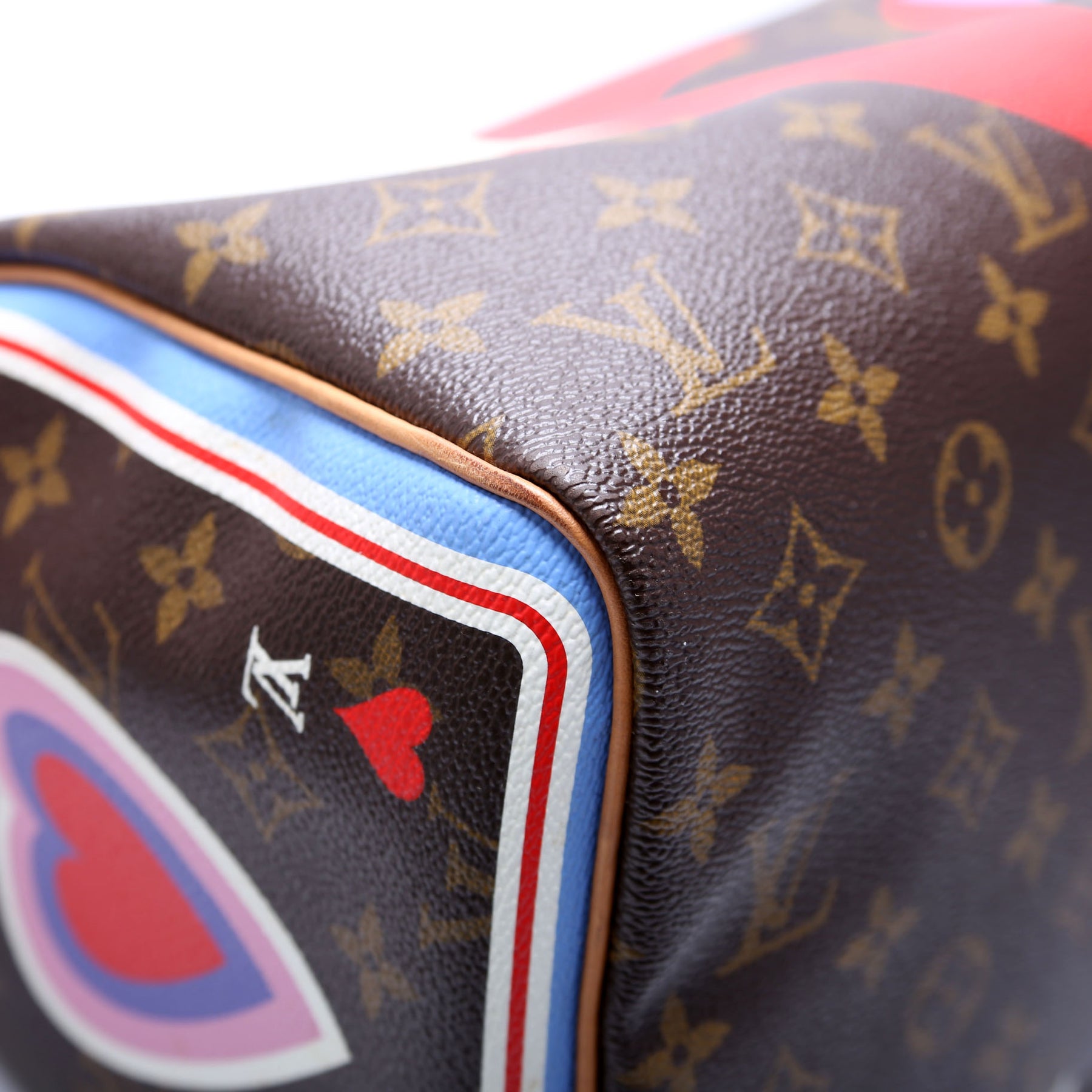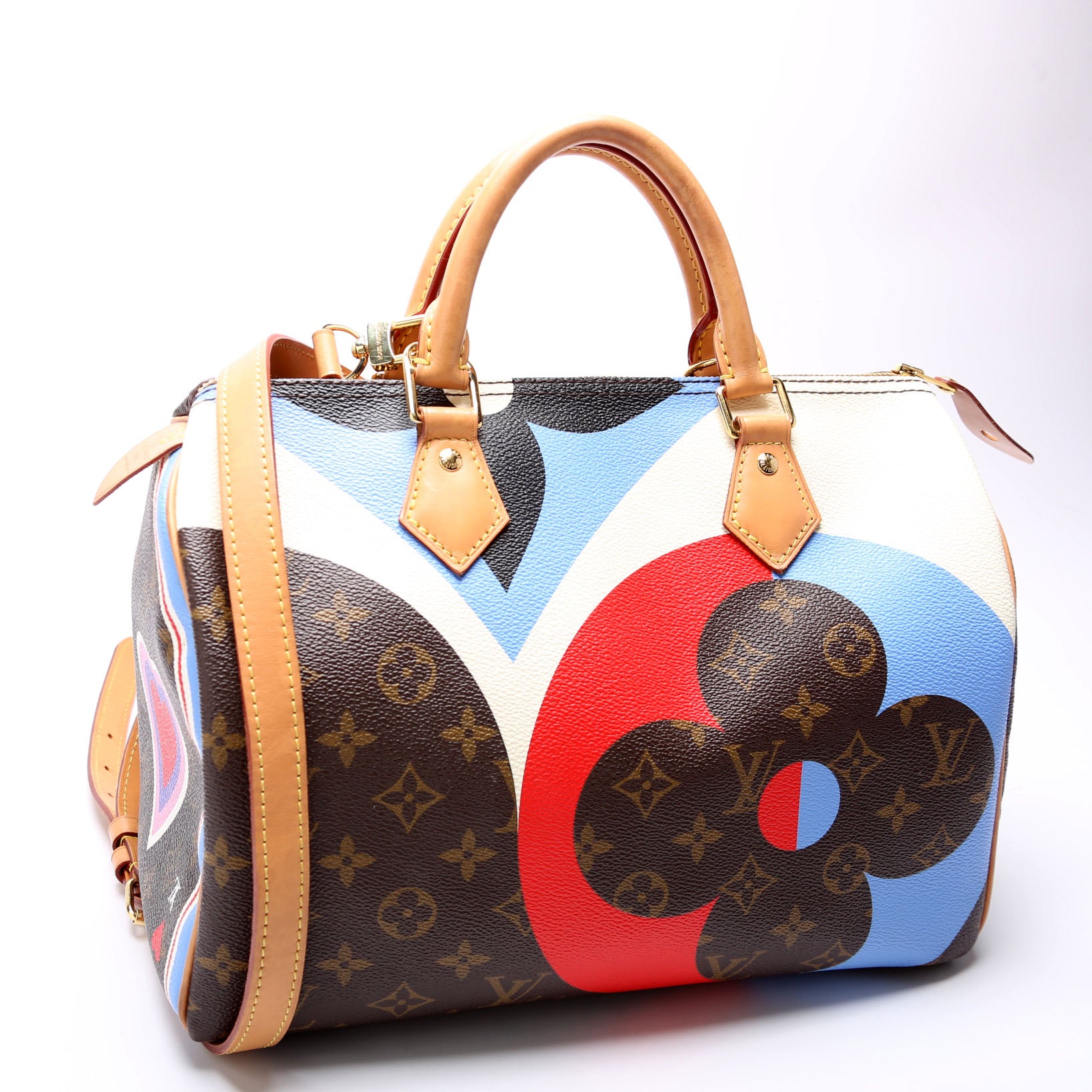 This pre-owned Louis Vuitton Speedy 30 Bandouliere Game On is guaranteed 100% authentic. The exterior is in the classic Louis Vuitton Monogram coated canvas.