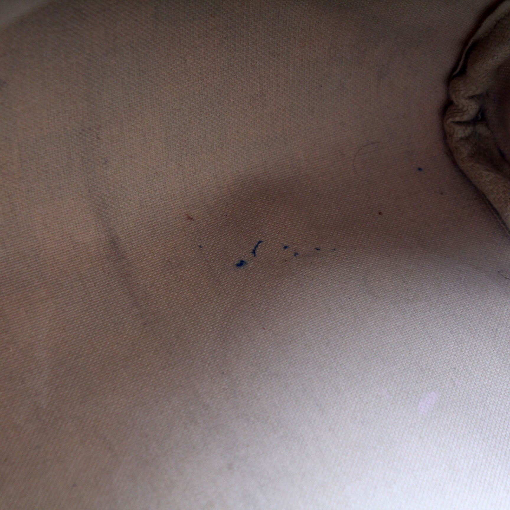 Interior: The interior is clean and free of rips or tears. It features one open pocket. There is discoloration to the interior fabric.