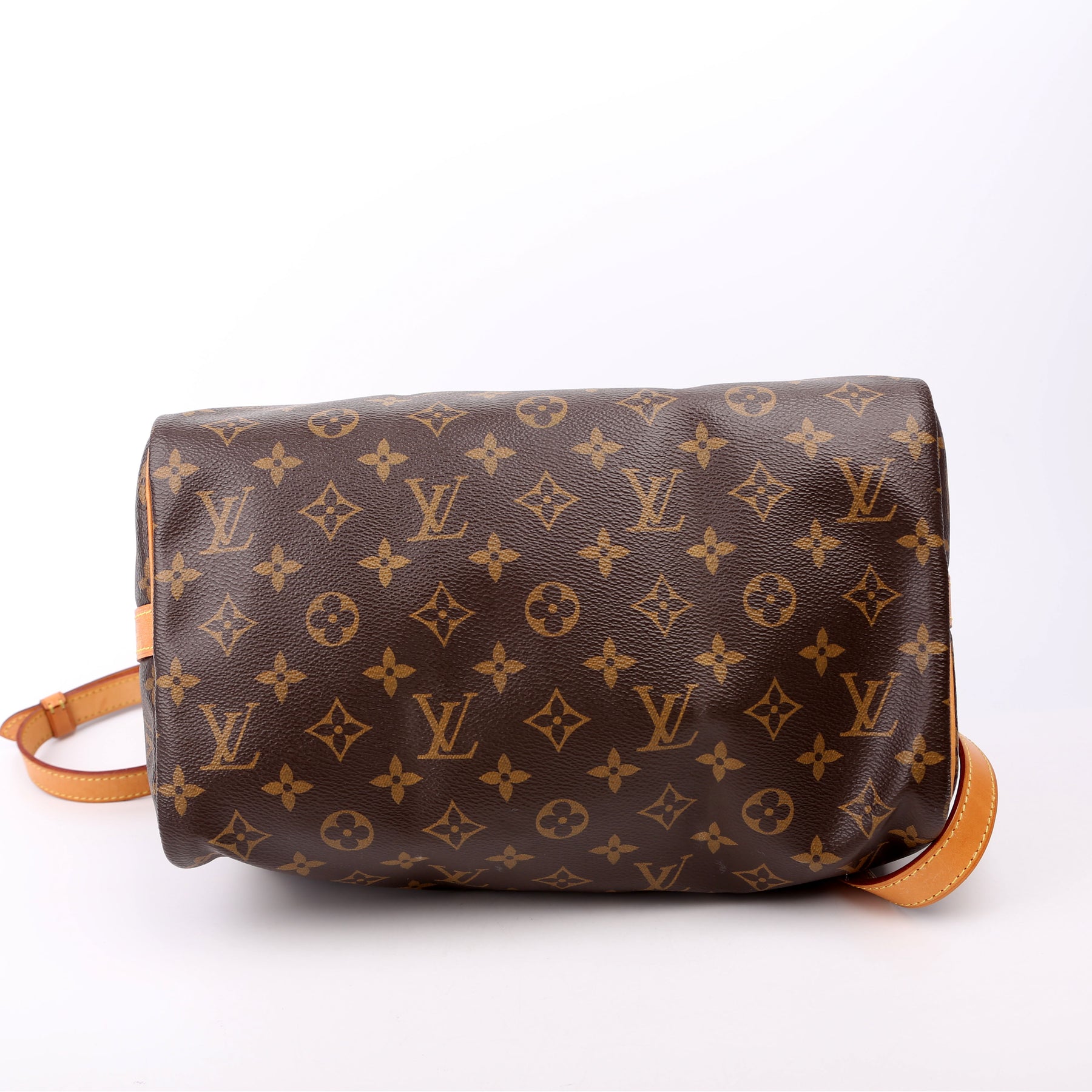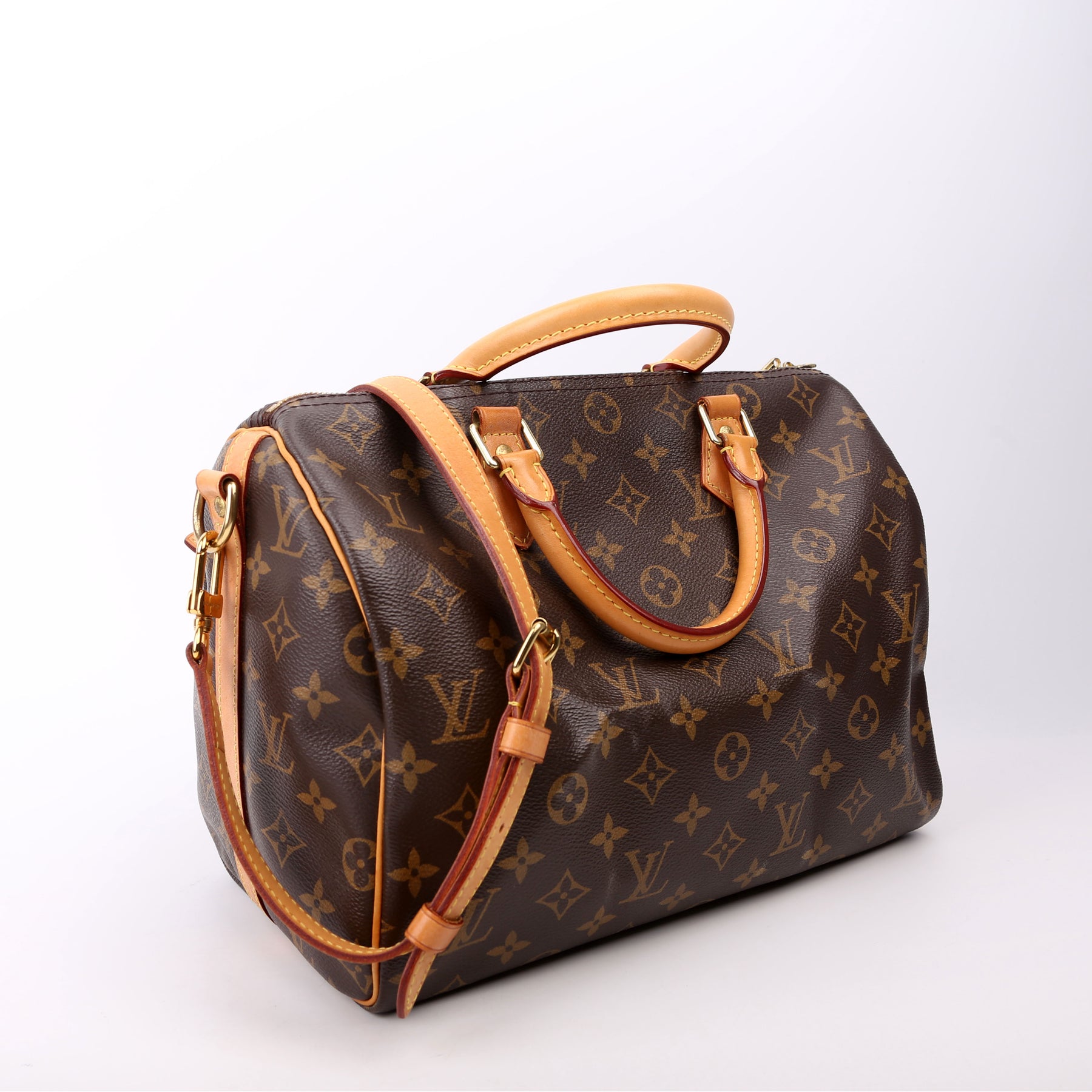 This pre-owned Louis Vuitton Speedy 30 Bandouliere is guaranteed 100% authentic. The exterior is in the classic Louis Vuitton Monogram coated canvas.