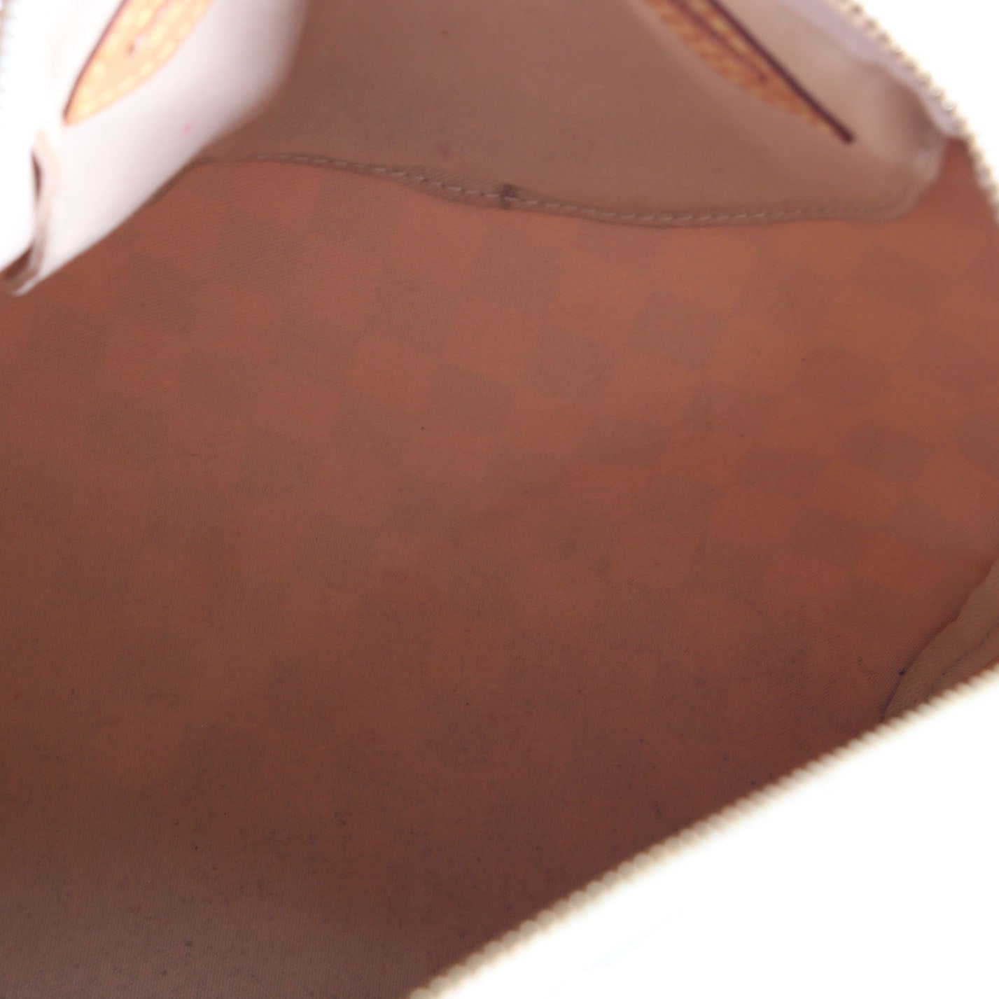 Interior: The interior shows light wear and staining. It features one open pocket.
