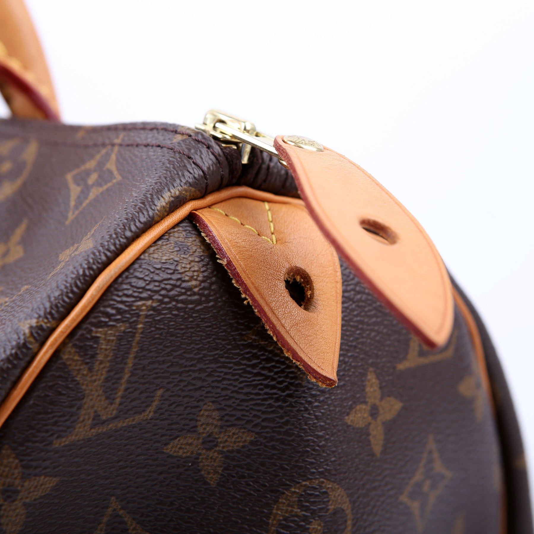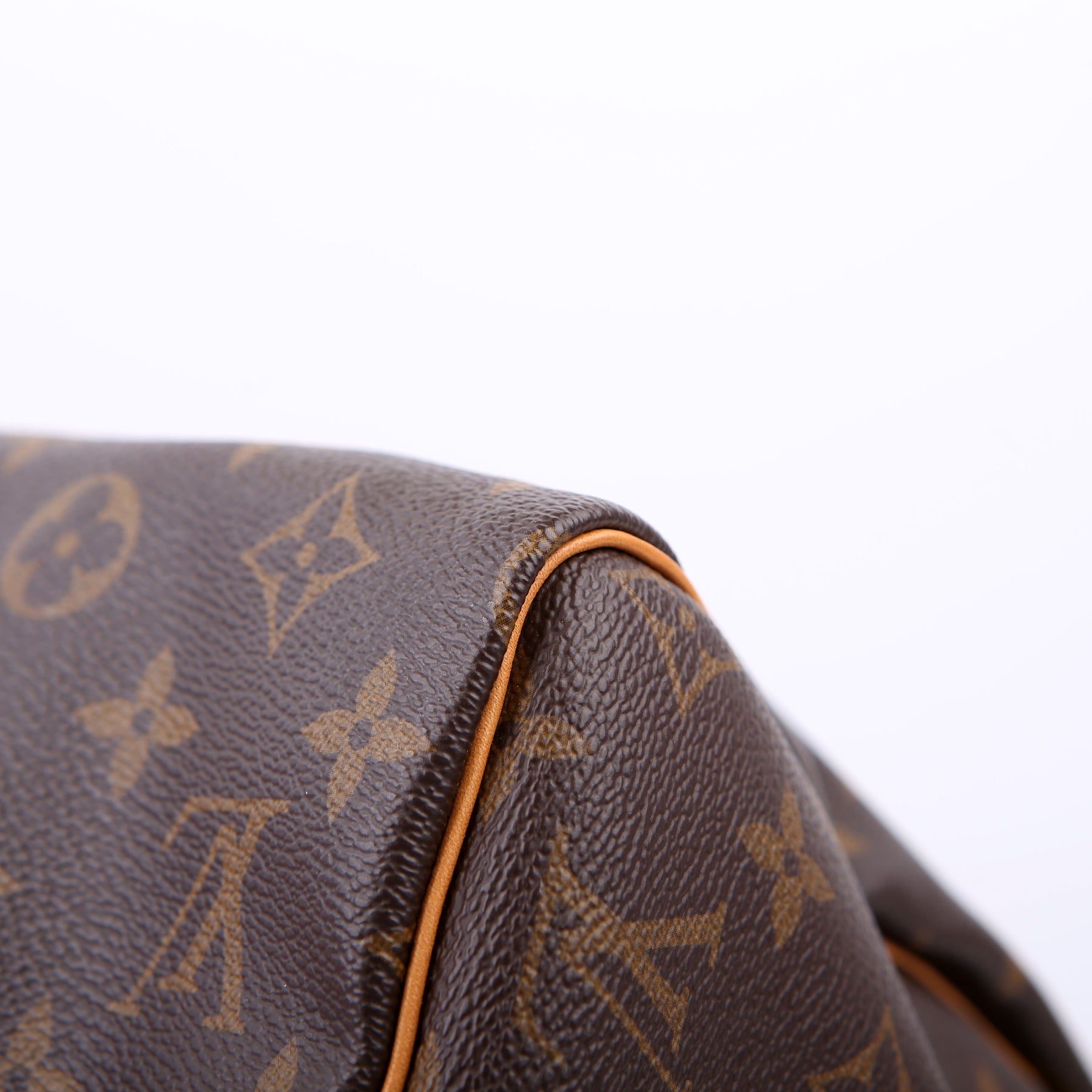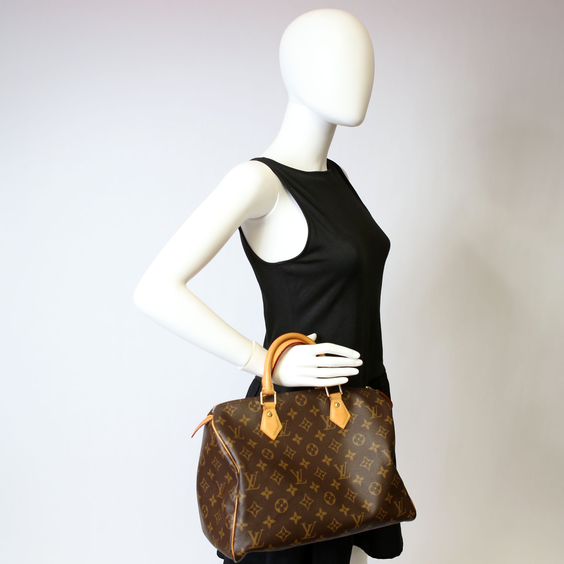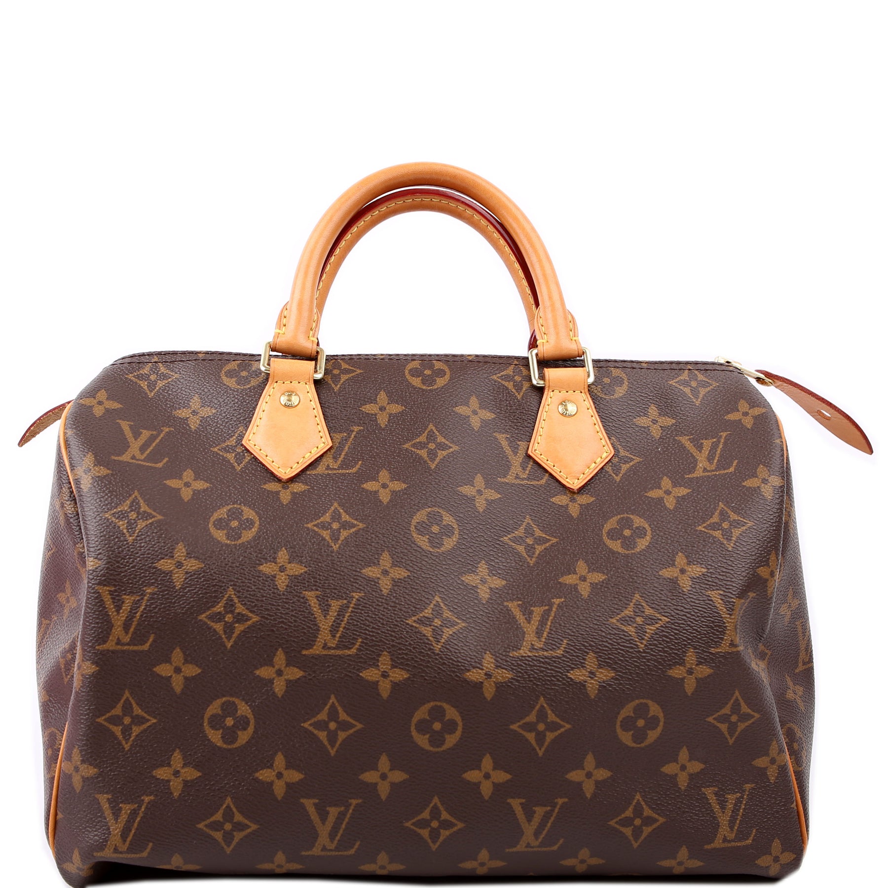 This pre-owned Louis Vuitton Speedy 30 is guaranteed 100% authentic. The exterior is in the classic Louis Vuitton Monogram coated canvas.