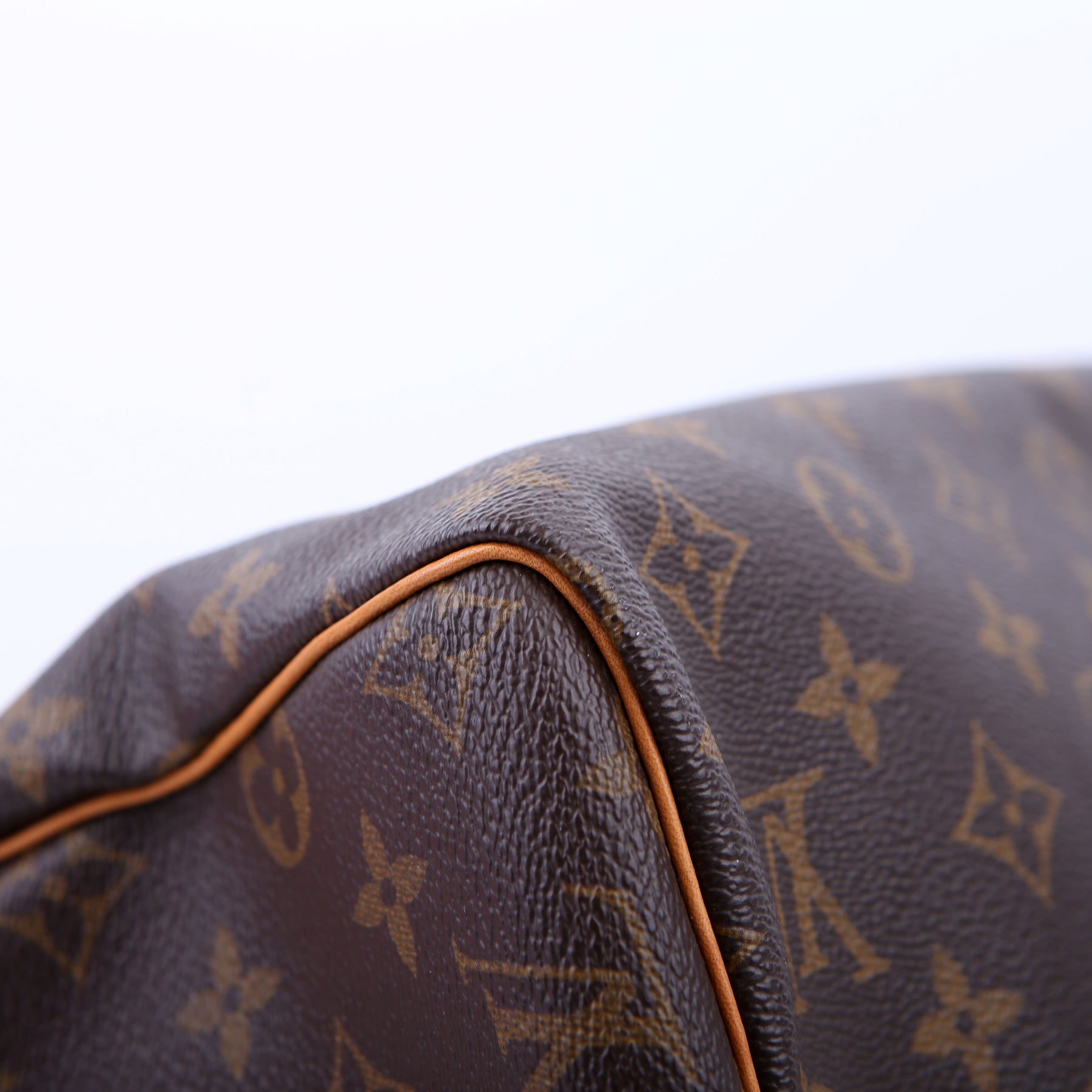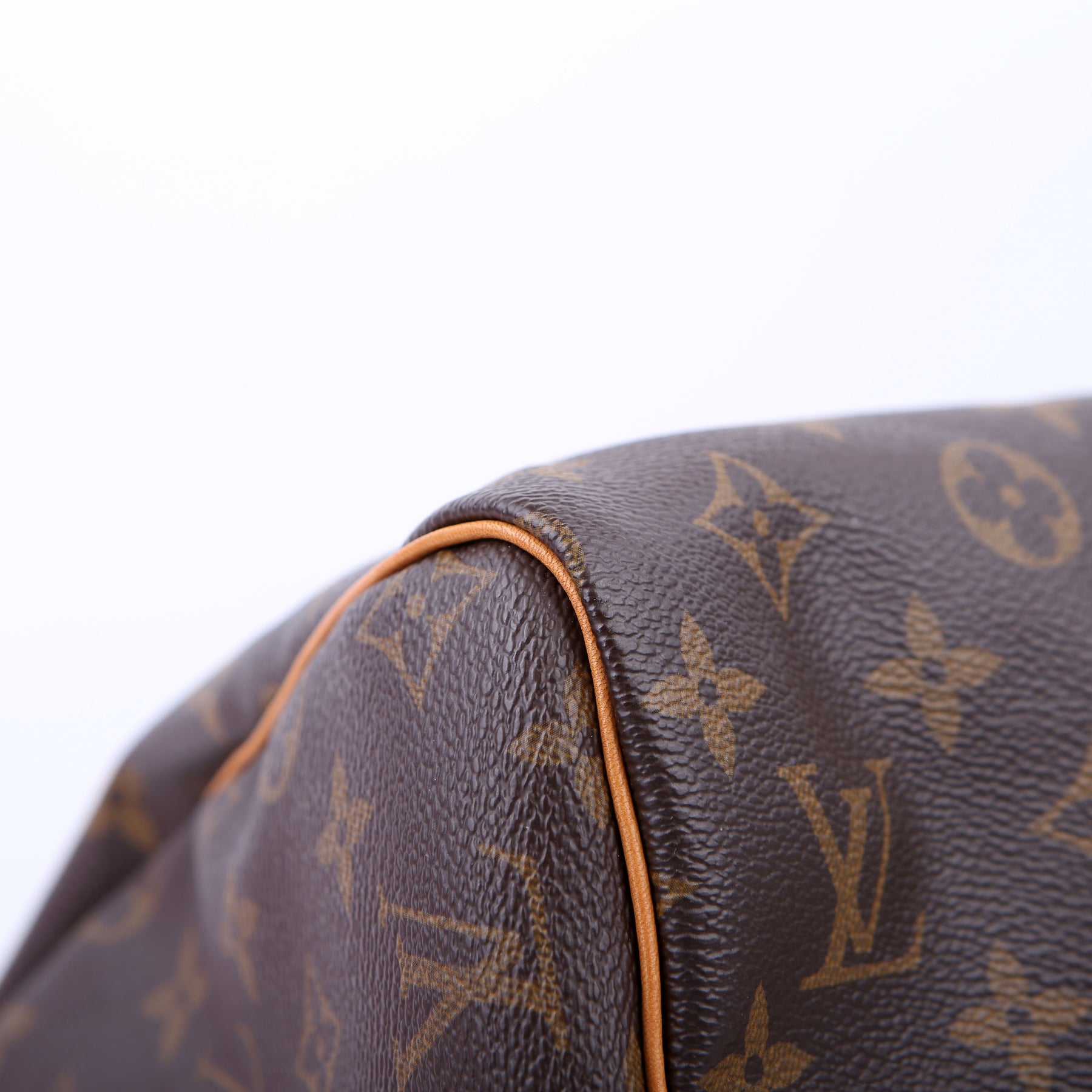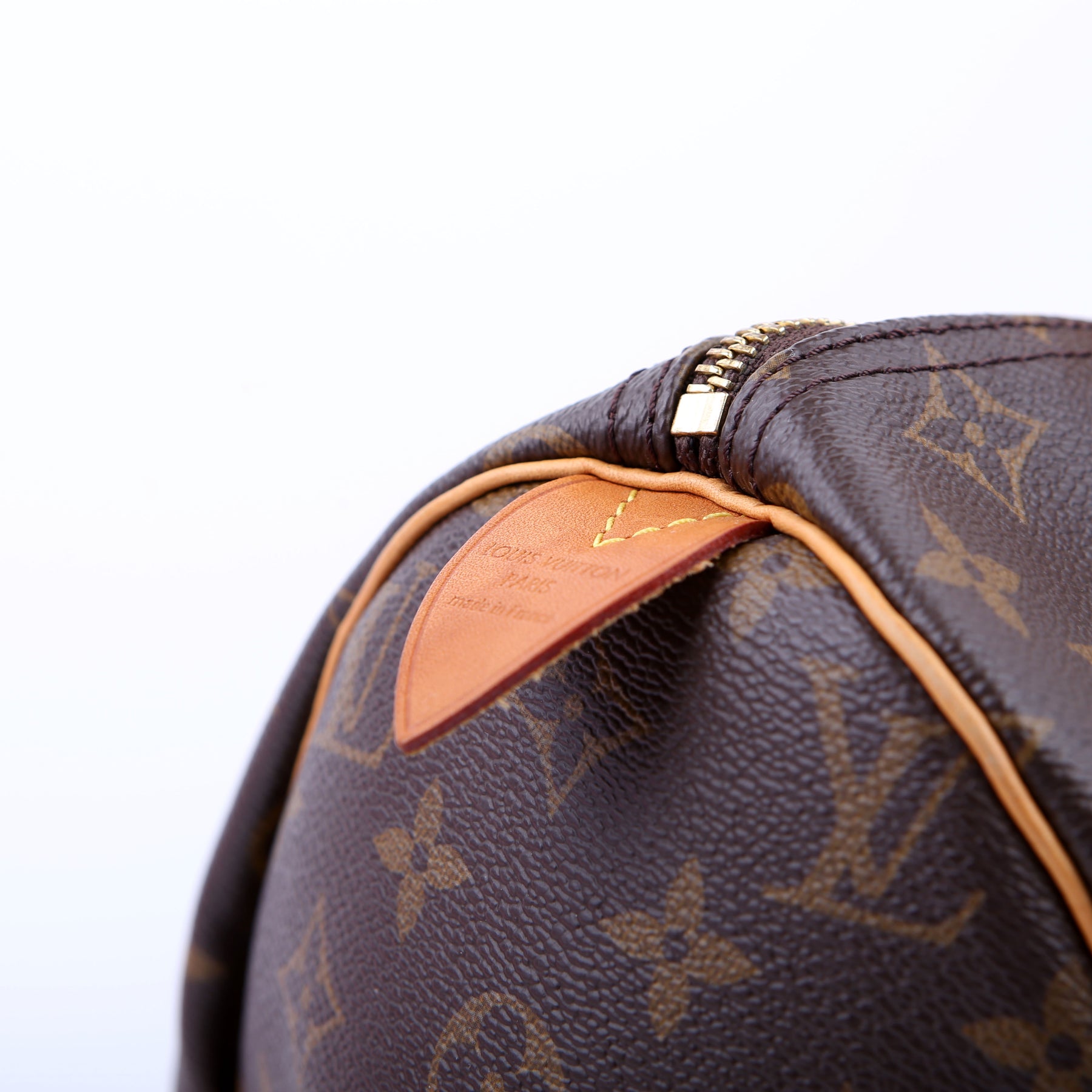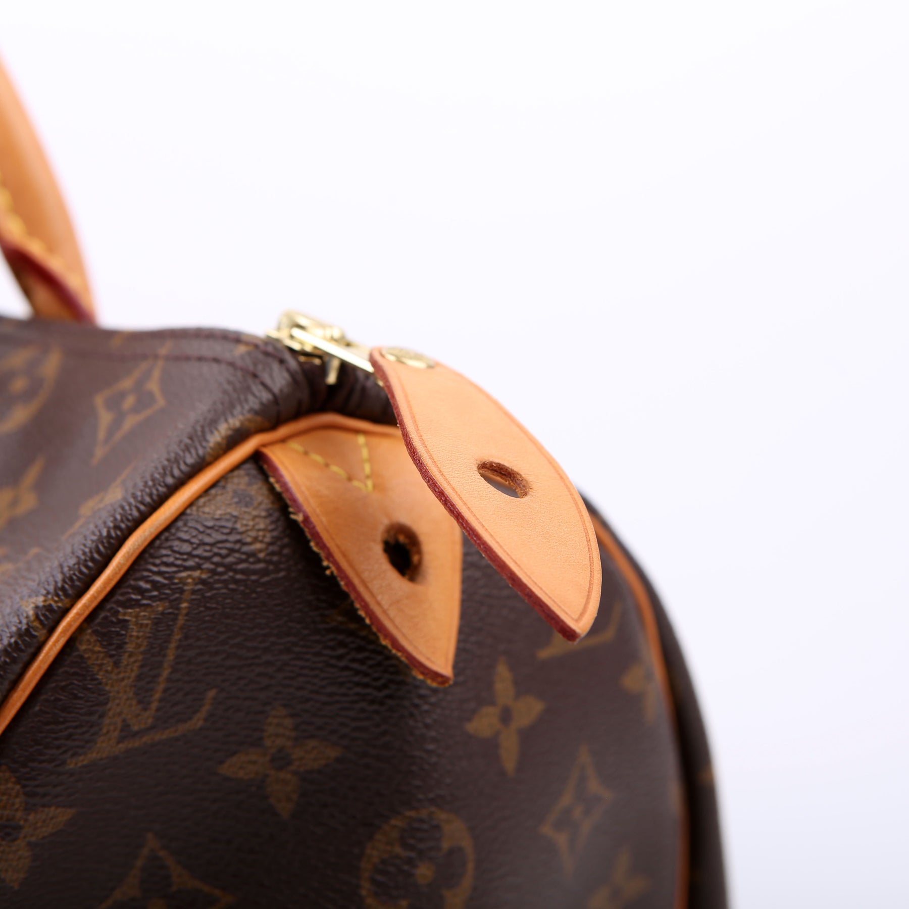 This pre-owned Louis Vuitton Speedy 30 is guaranteed 100% authentic. The exterior is in the classic Louis Vuitton Monogram coated canvas.