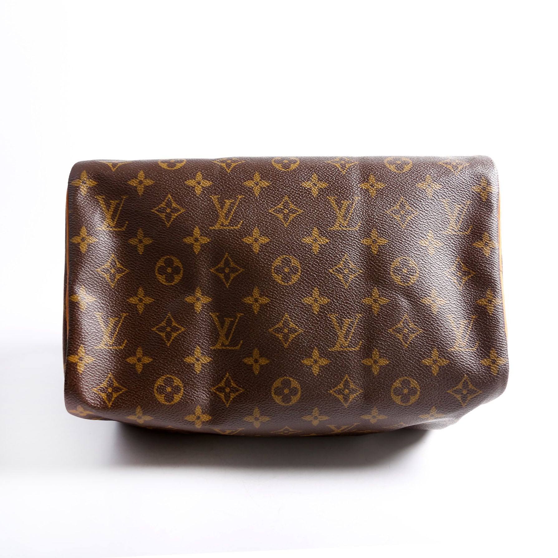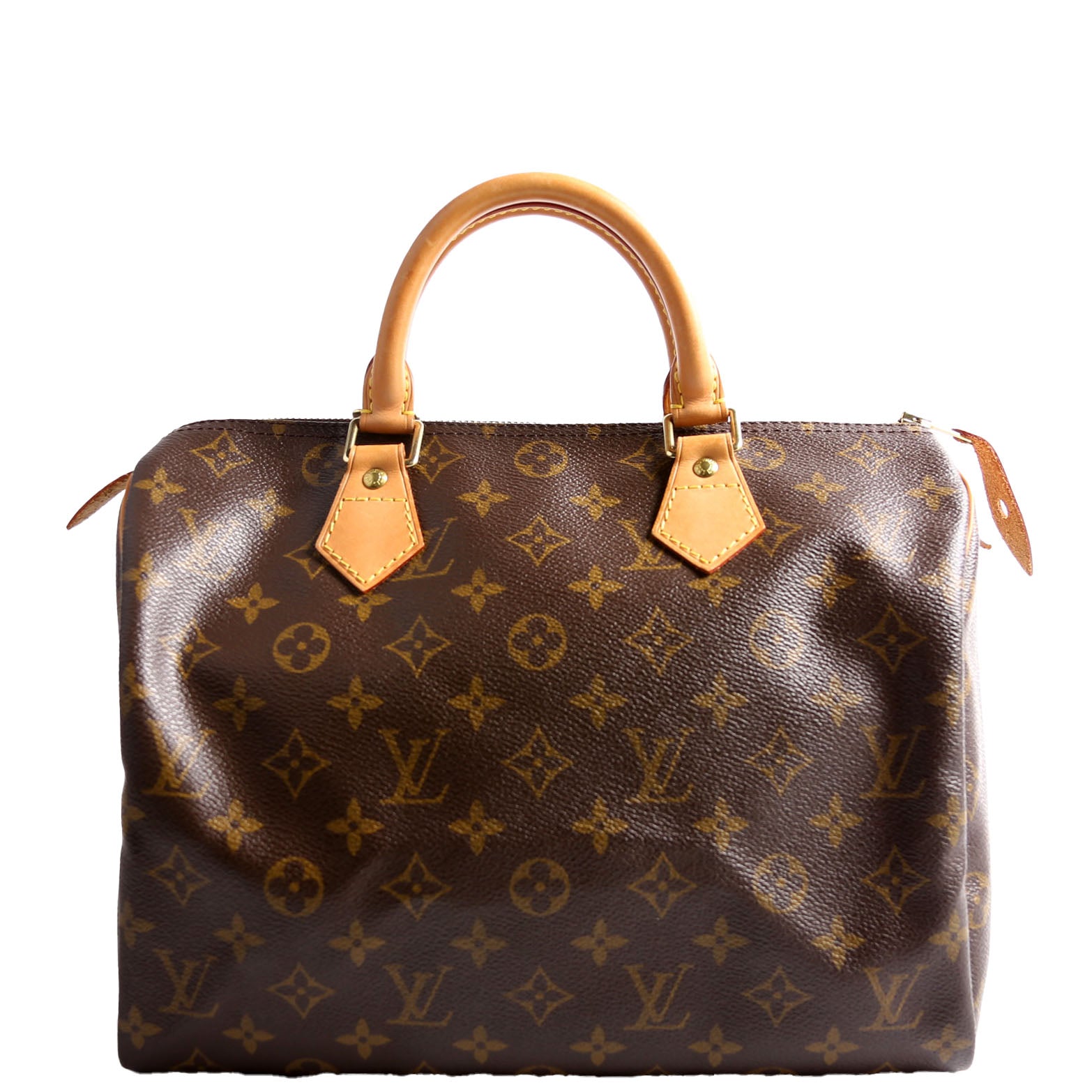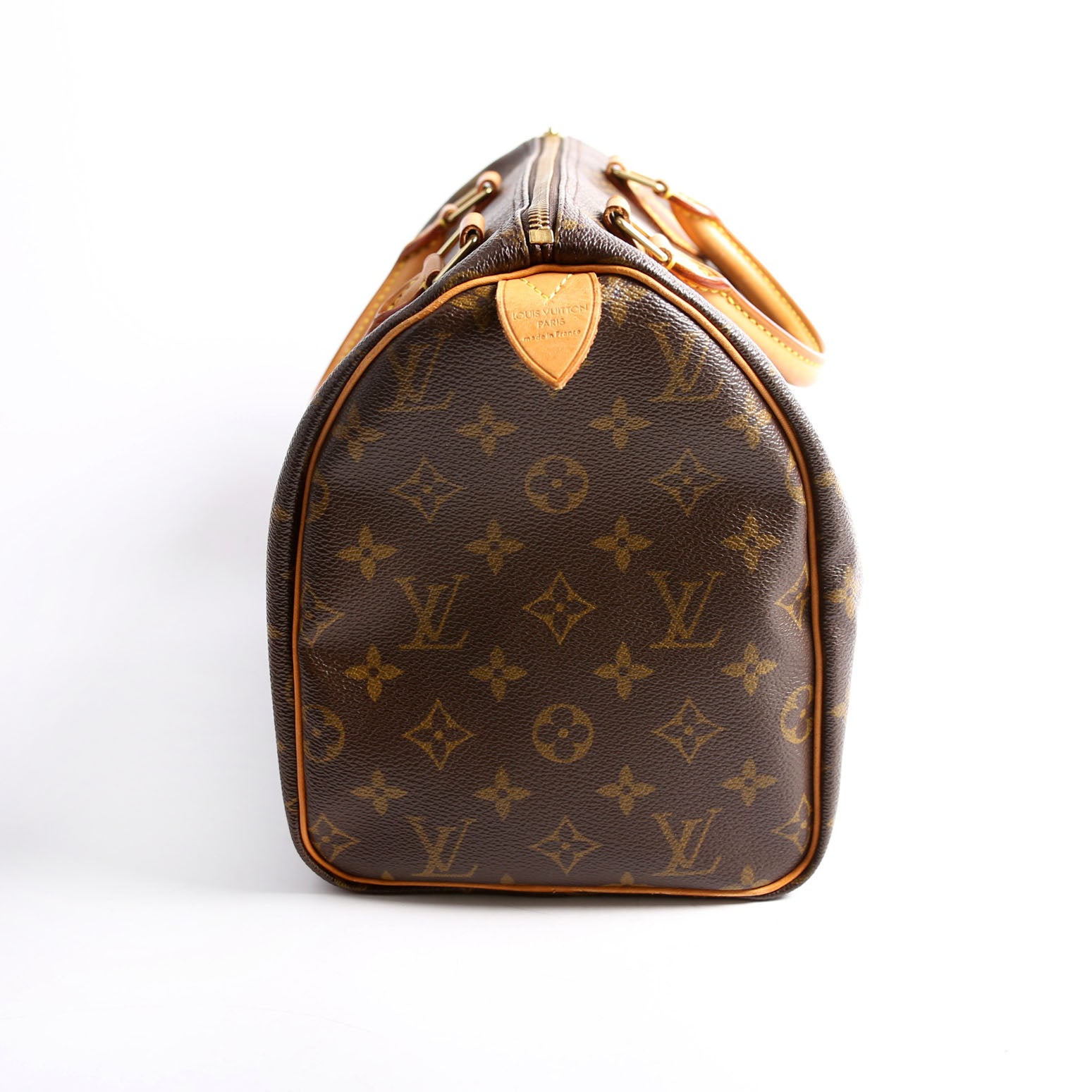 This pre-owned Louis Vuitton Speedy 30 is guaranteed 100% authentic. The exterior is in the classic Louis Vuitton Monogram coated canvas.
