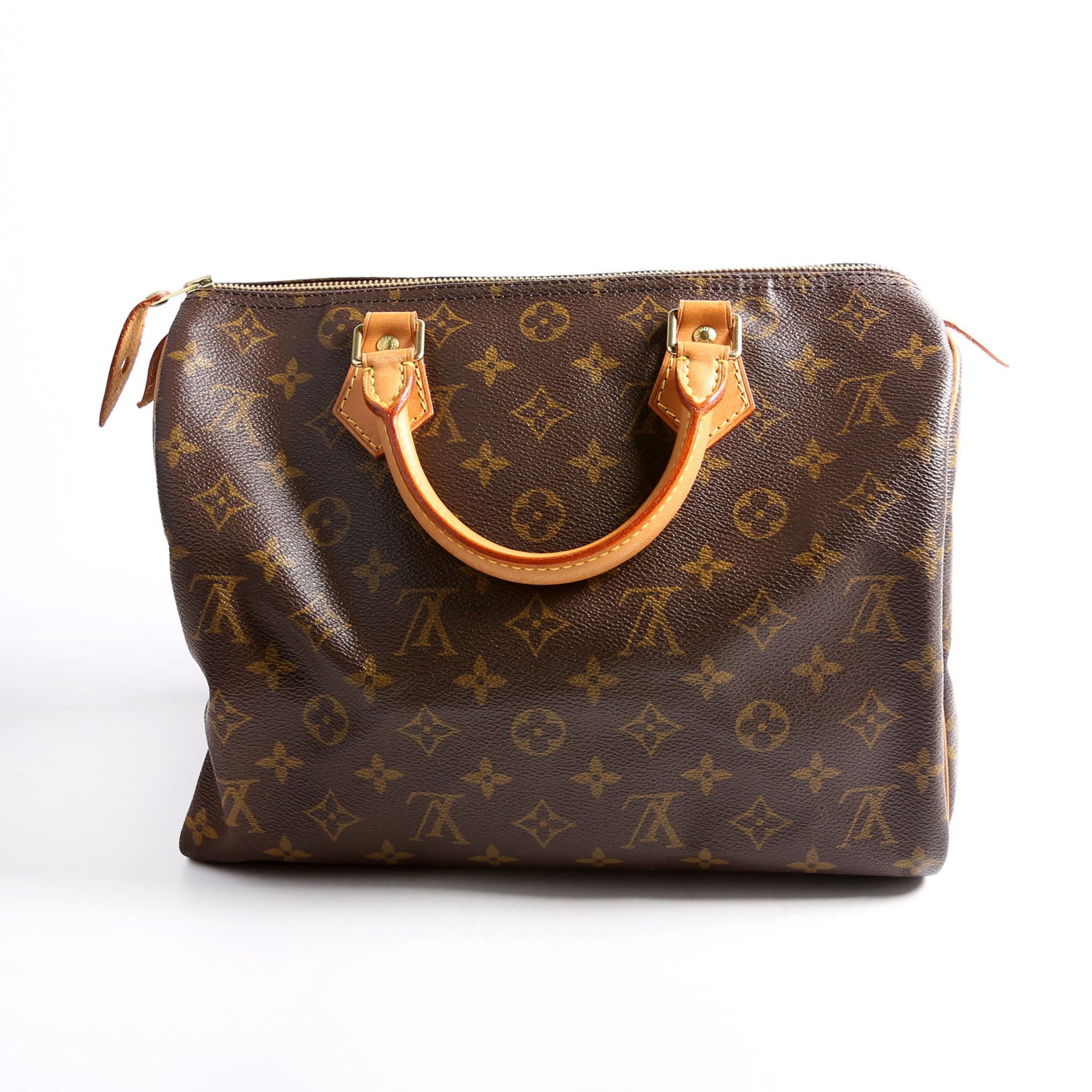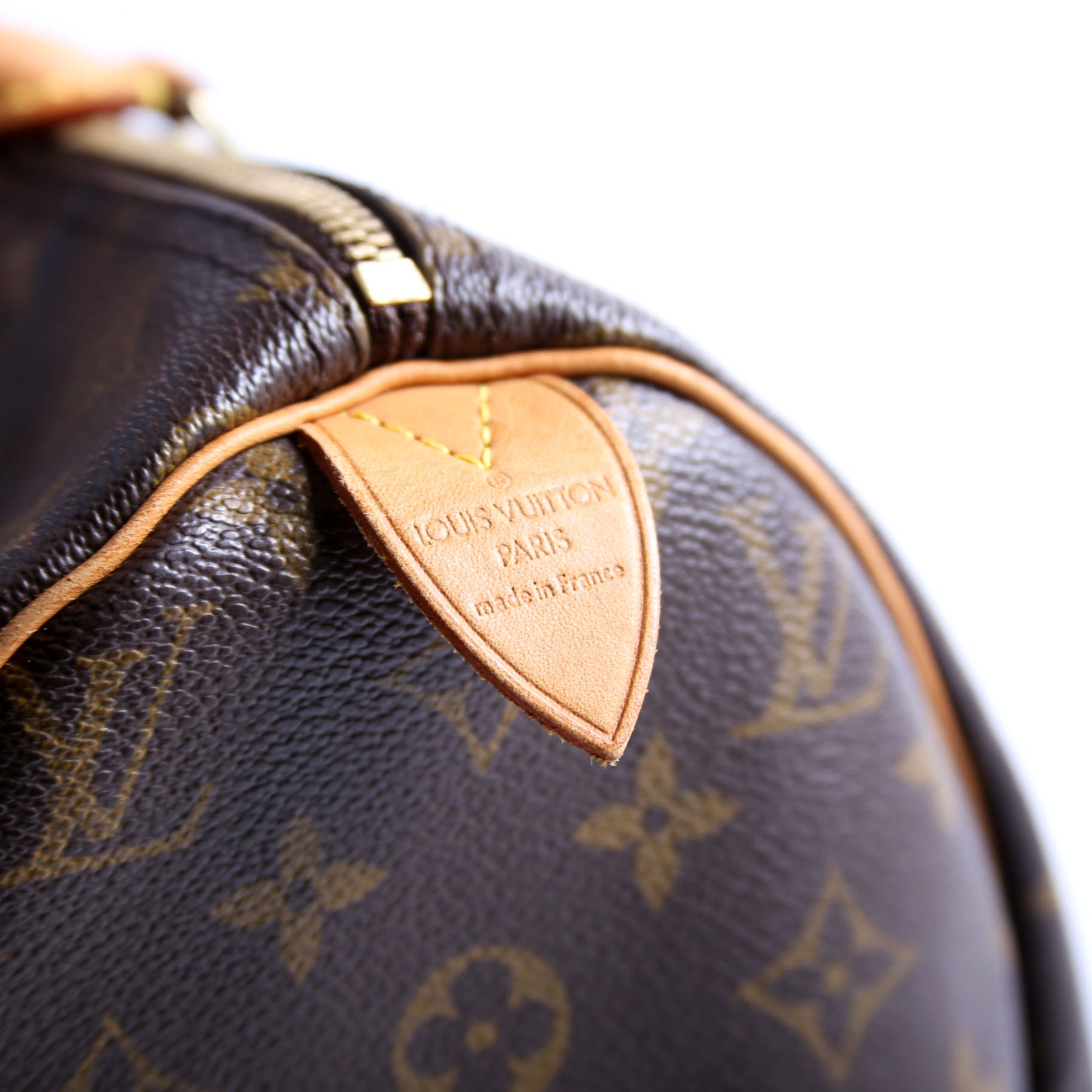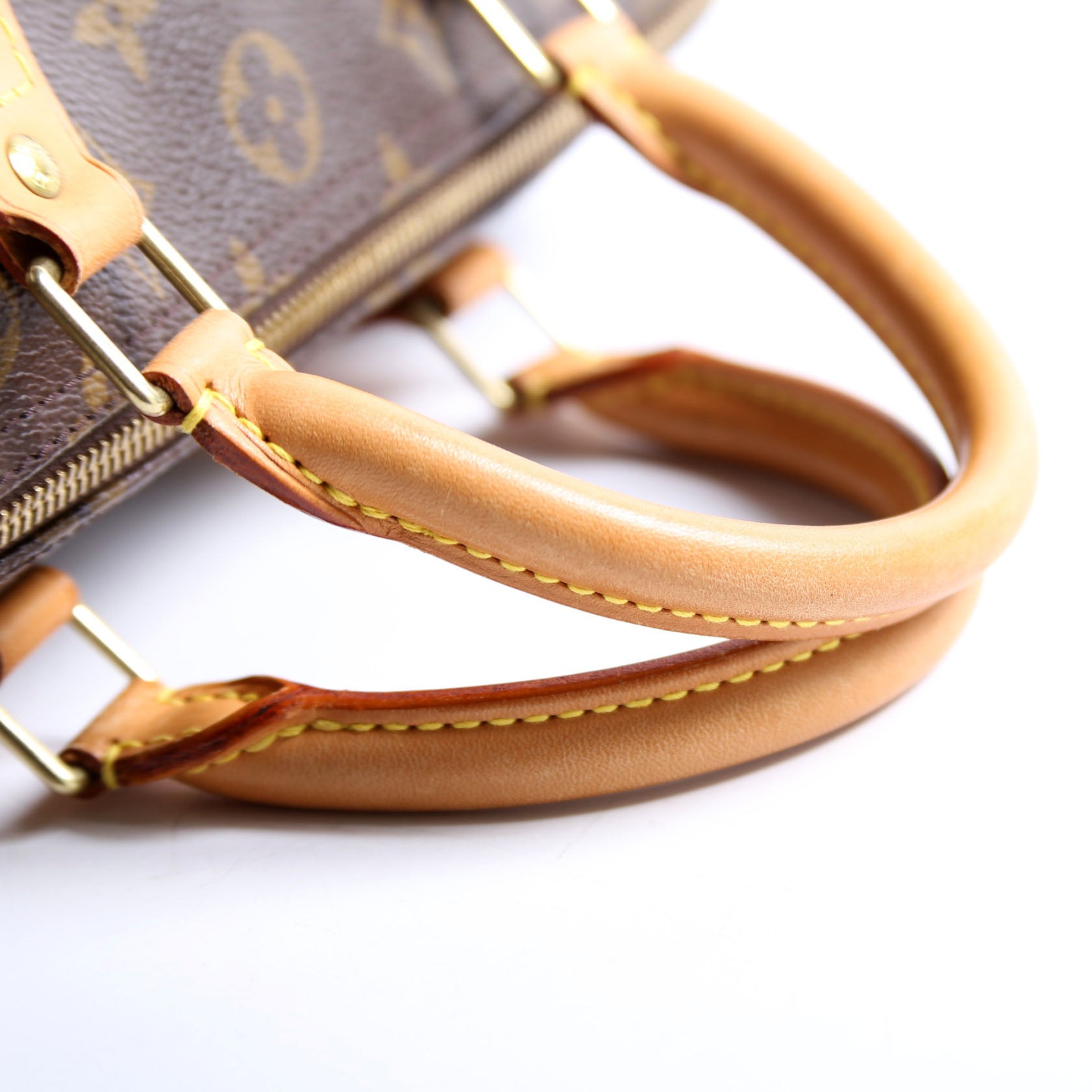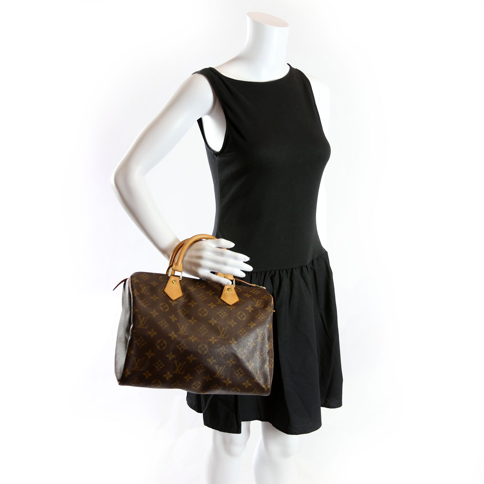 This pre-owned Louis Vuitton Speedy 30 is guaranteed 100% authentic. The exterior is in the classic Louis Vuitton Monogram coated canvas.