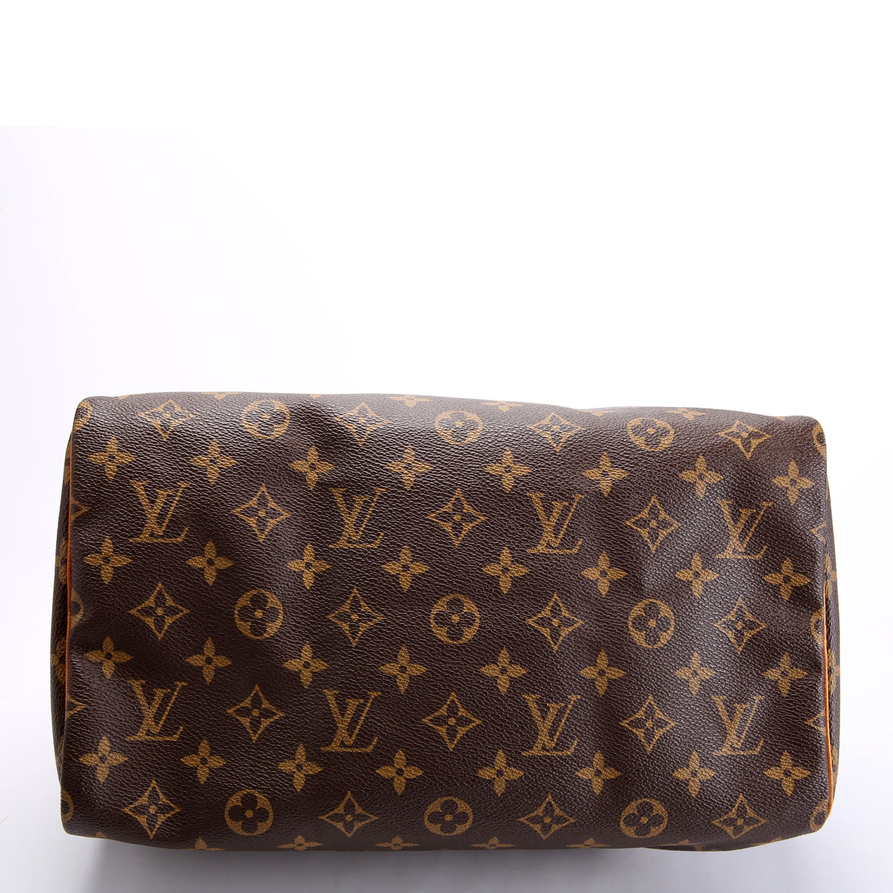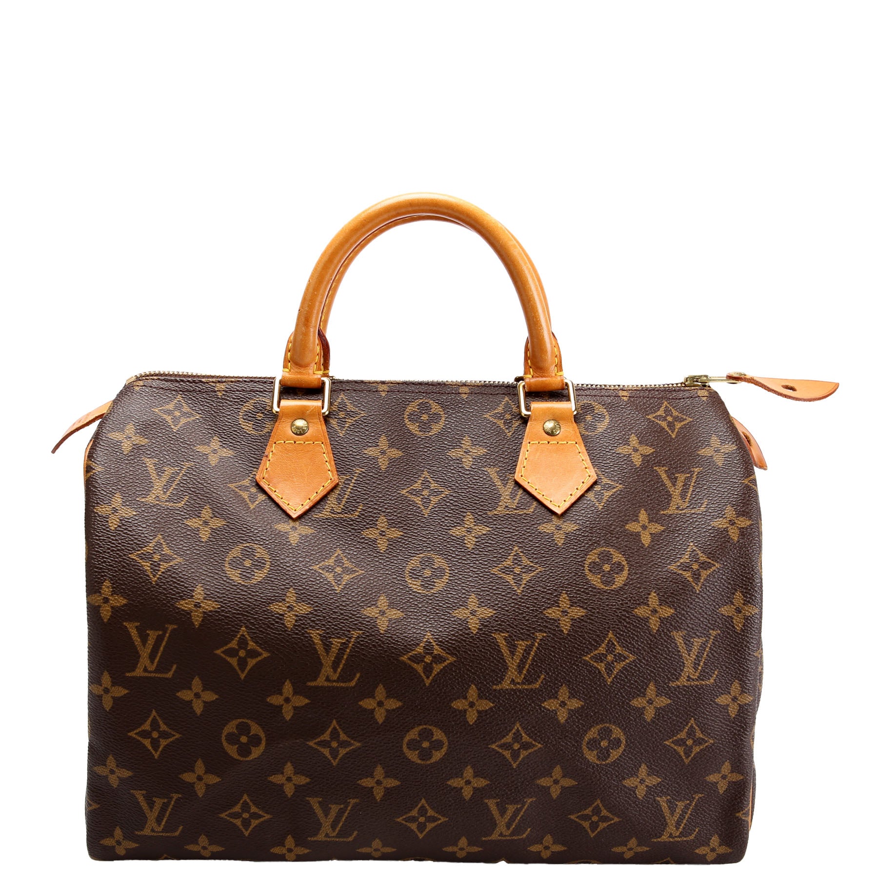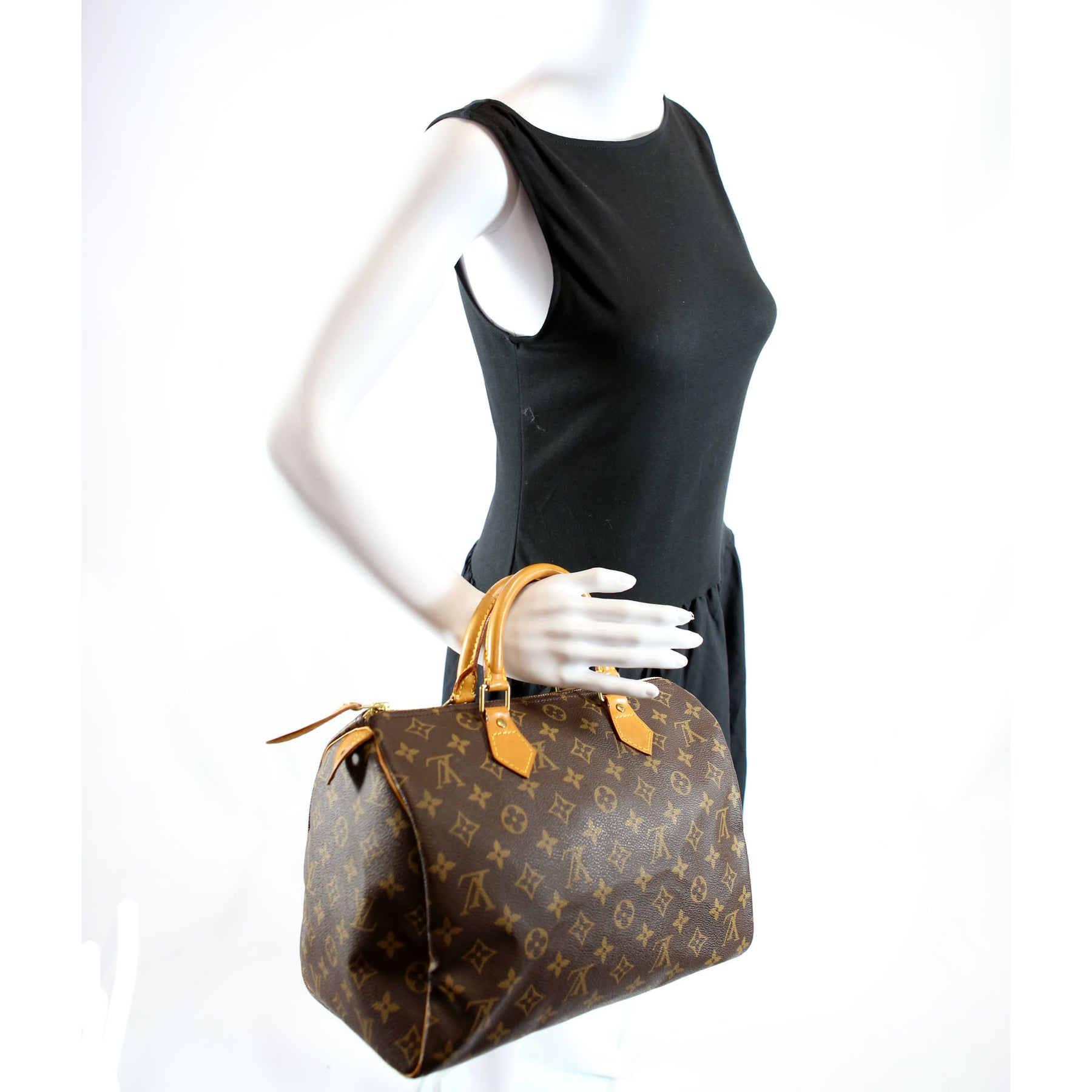This pre-owned Louis Vuitton Speedy 30 is guaranteed 100% authentic. The exterior is in the classic Louis Vuitton Monogram coated canvas.