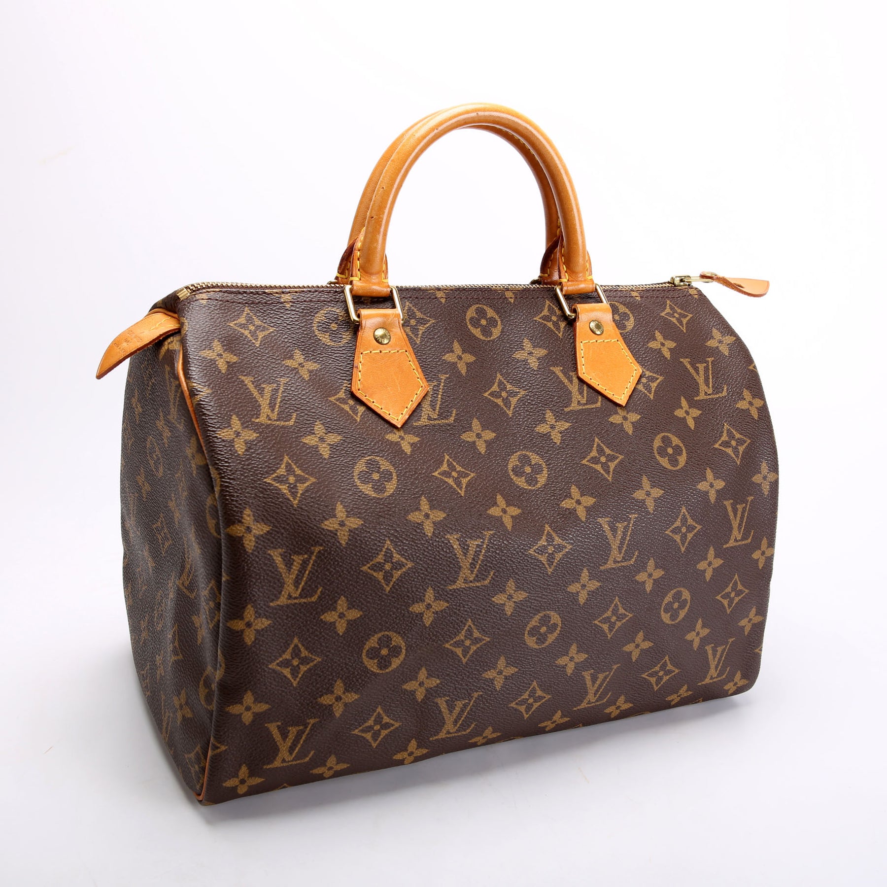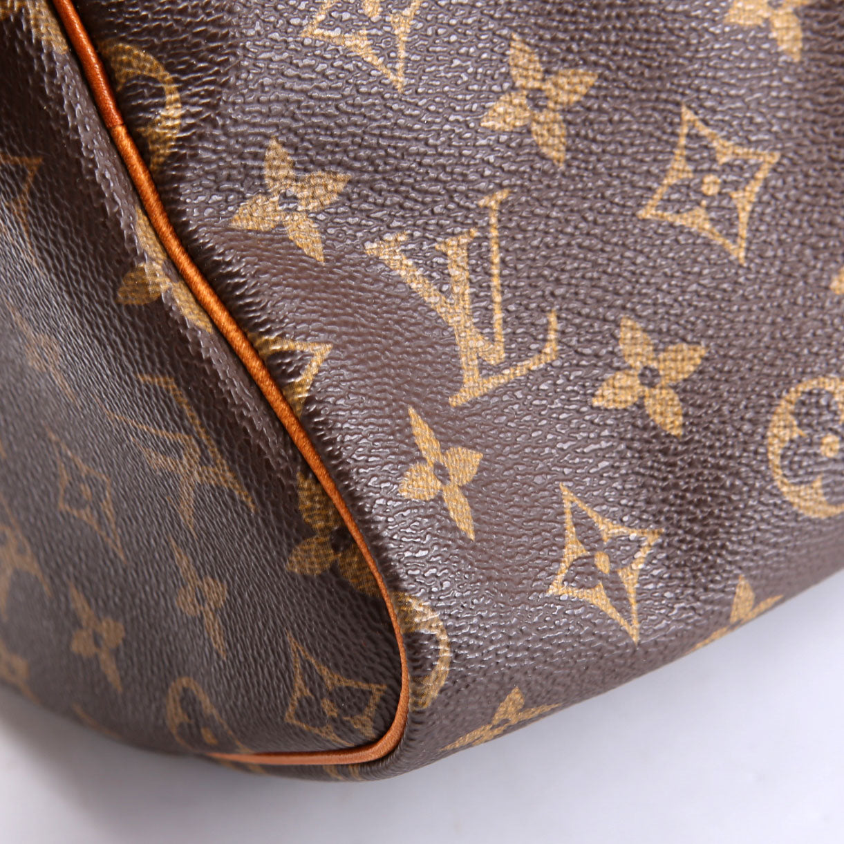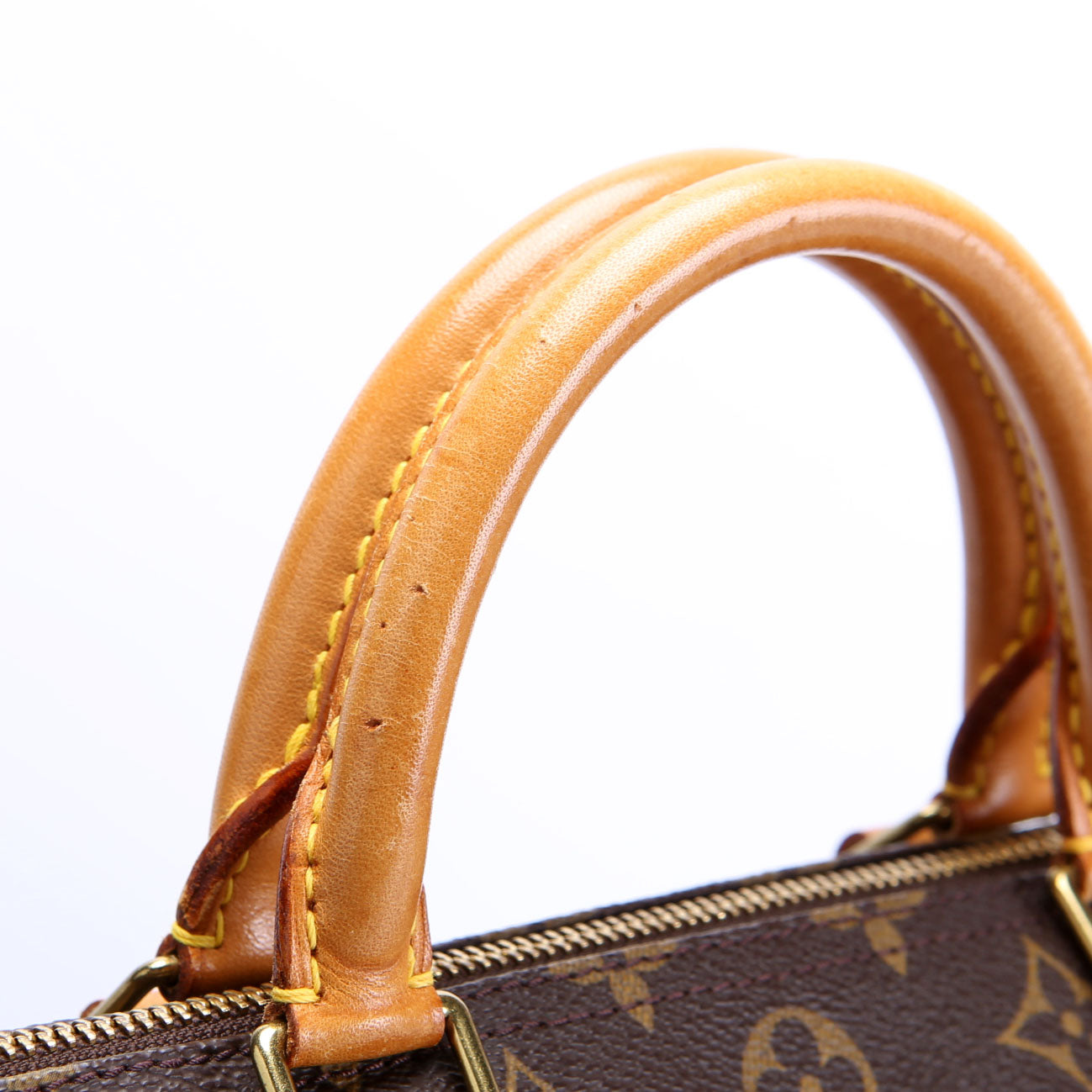 This pre-owned Louis Vuitton Speedy 30 is guaranteed 100% authentic. The exterior is in the classic Louis Vuitton Monogram coated canvas.