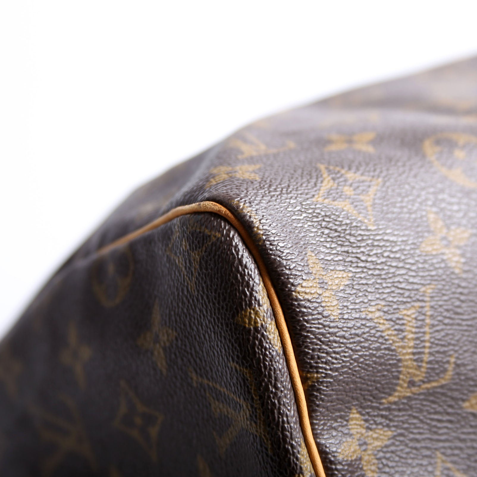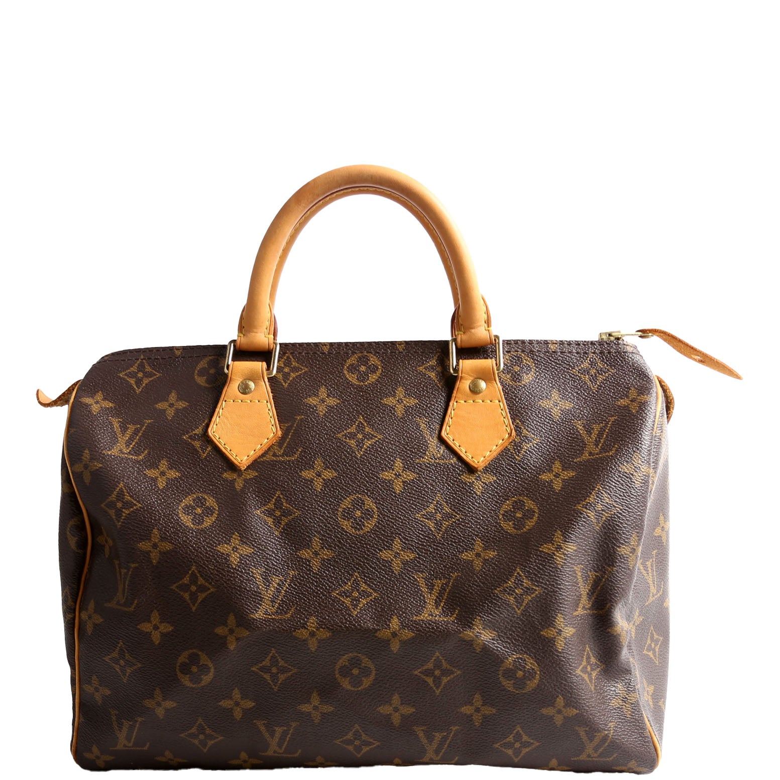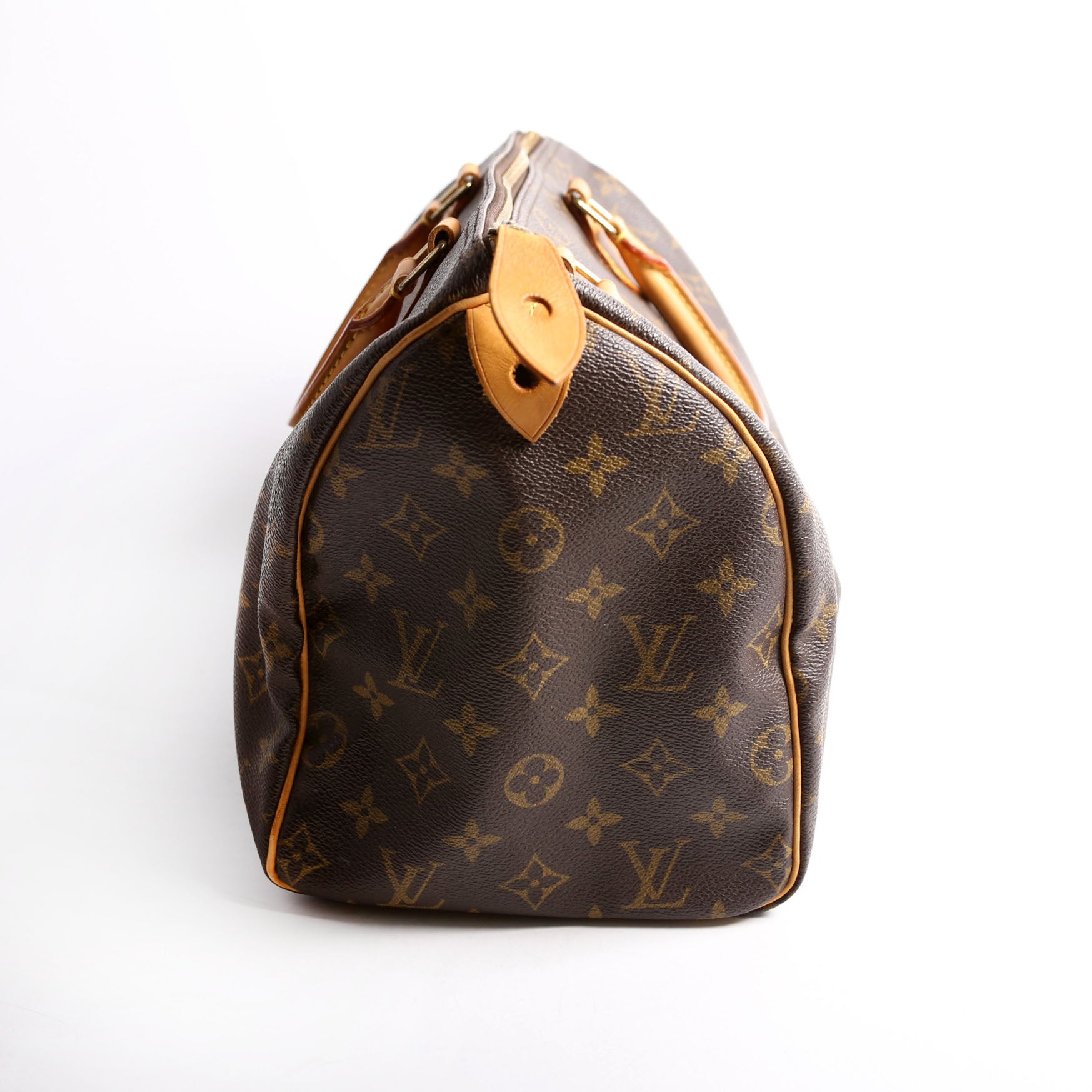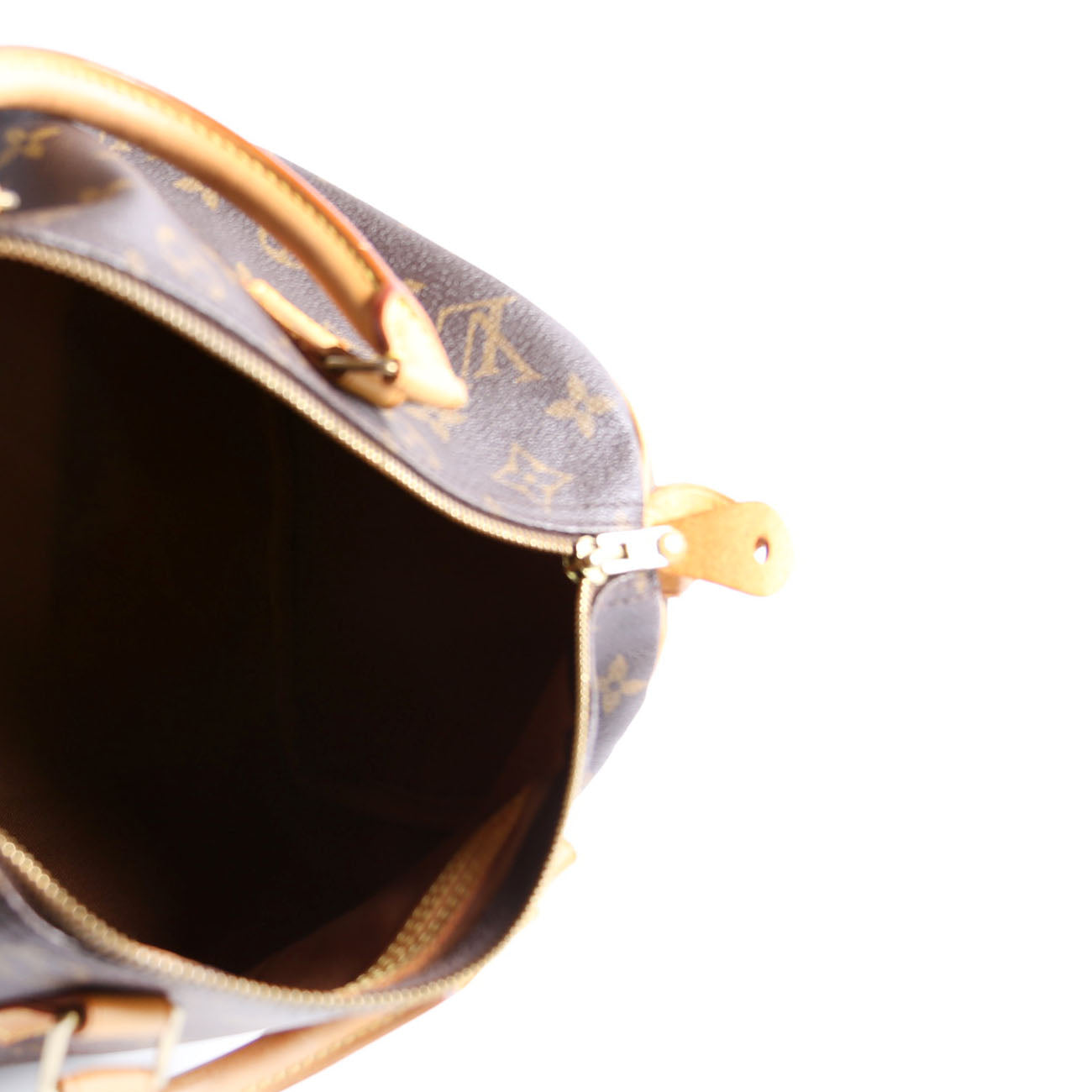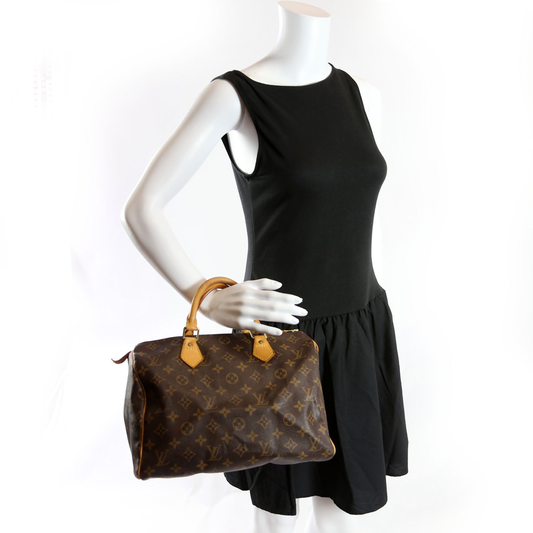 This pre-owned Louis Vuitton Speedy 30 is guaranteed 100% authentic. The exterior is in the classic Louis Vuitton Monogram coated canvas.