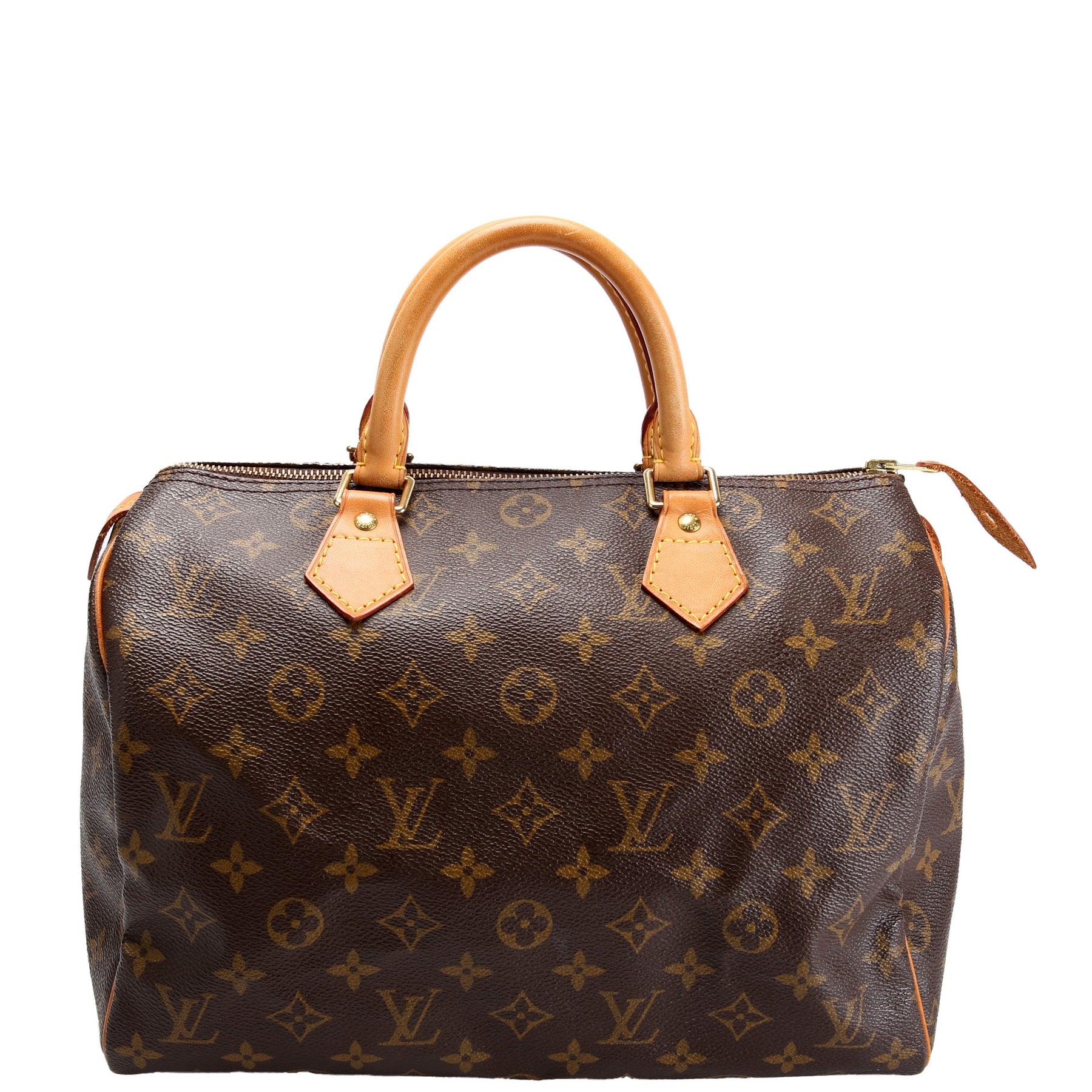 This pre-owned Louis Vuitton Speedy 30 is guaranteed 100% authentic. The exterior is in the classic Louis Vuitton Monogram Coated Canvas.