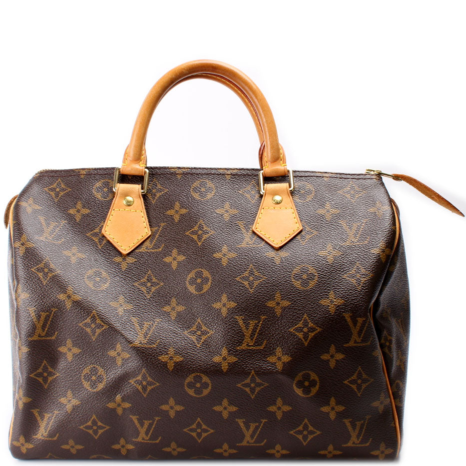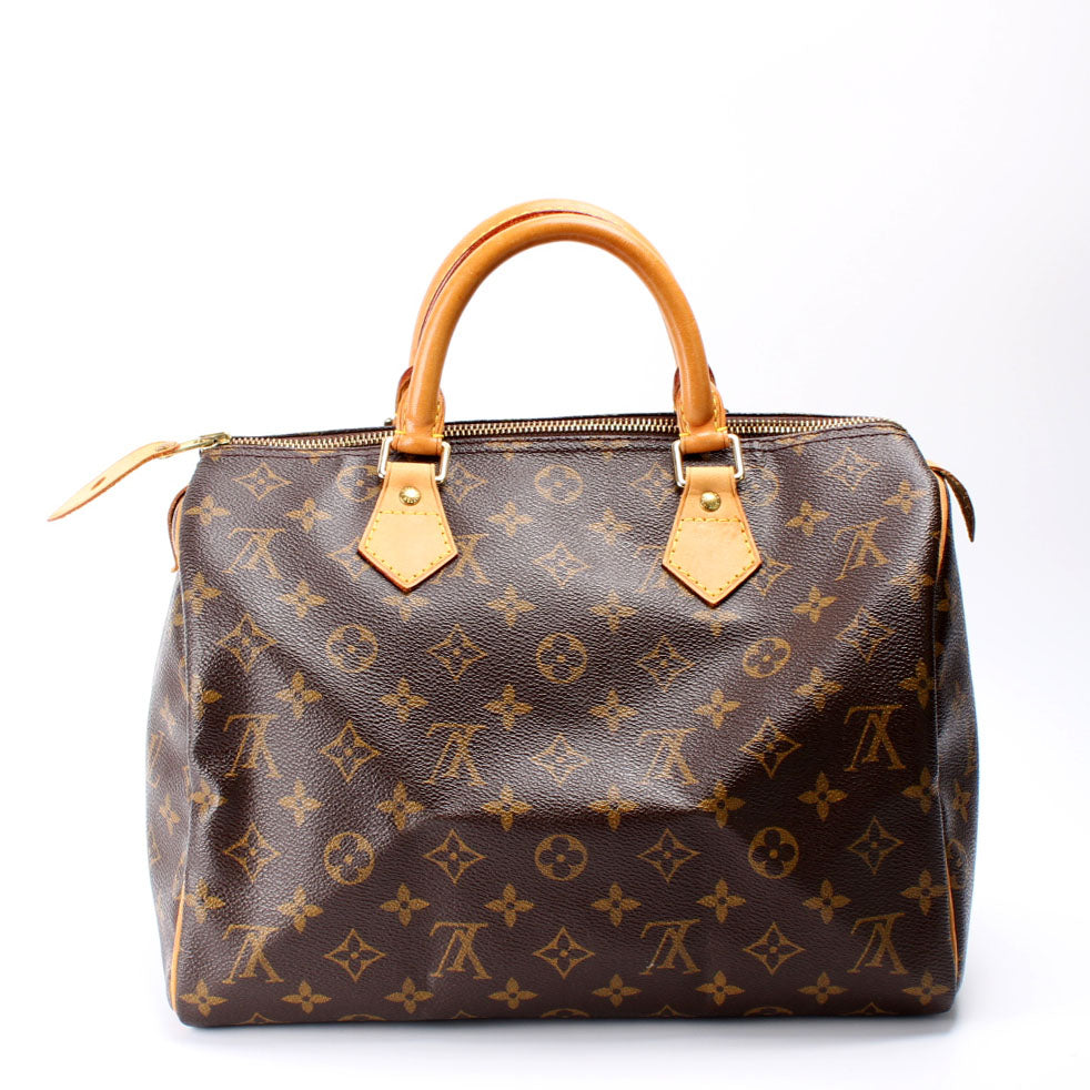 This pre-owned Louis Vuitton Speedy 30 is guaranteed 100% authentic. The exterior is in the classic Louis Vuitton Monogram coated canvas.