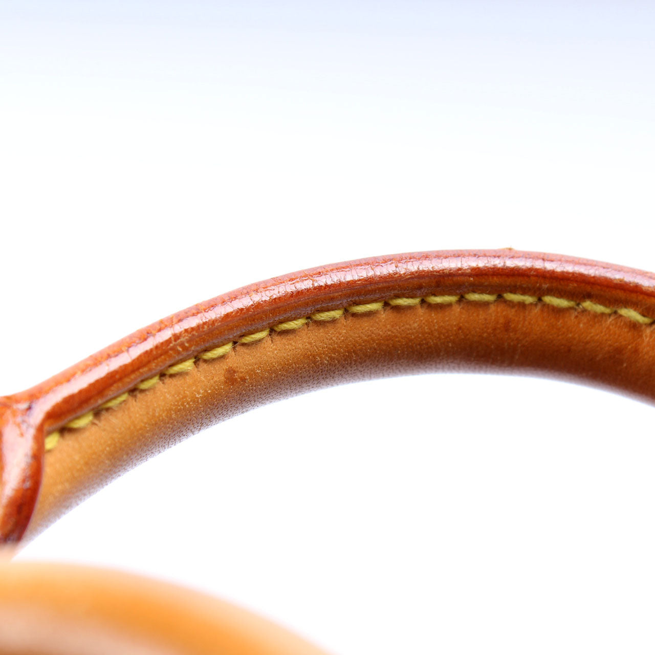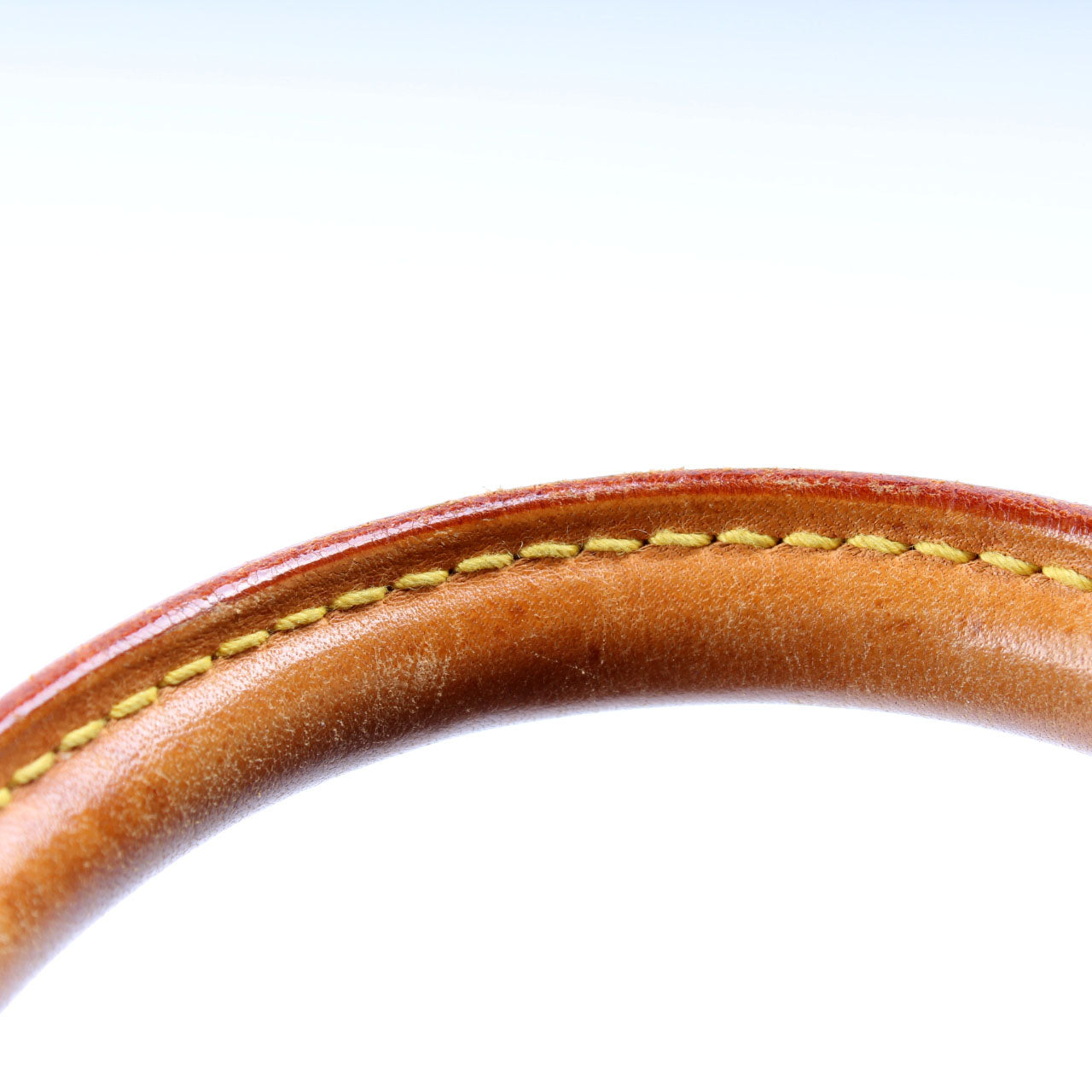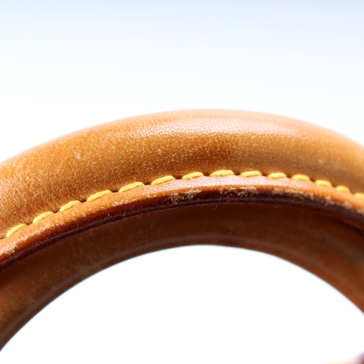 Handle: The leather handles show signs of wear and discoloration.