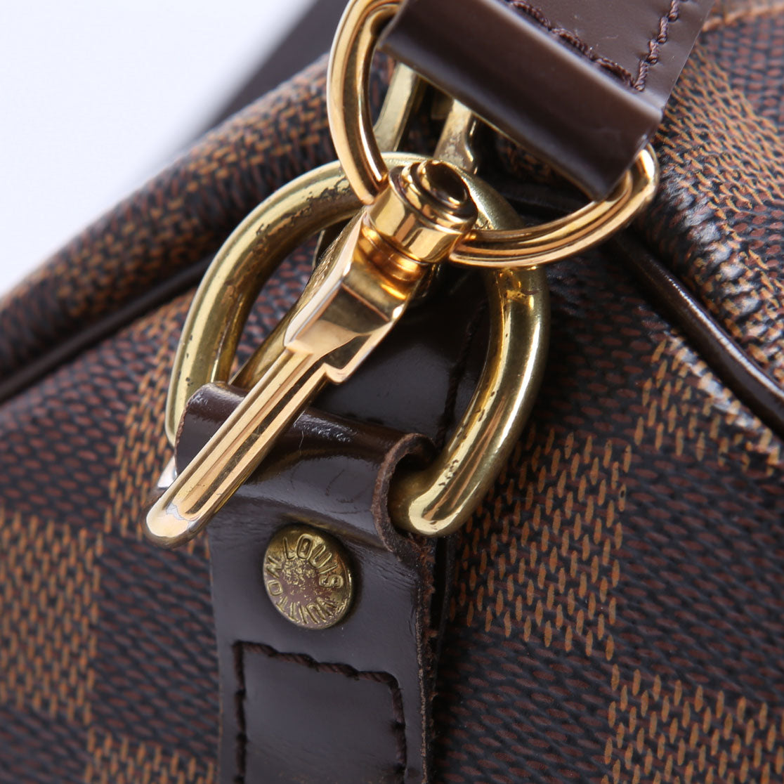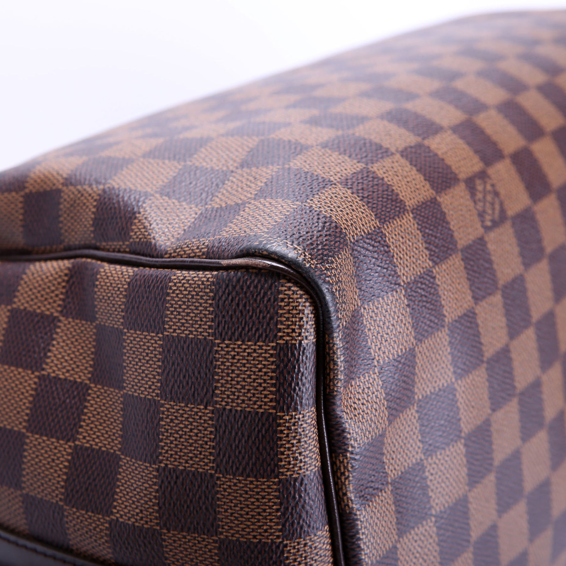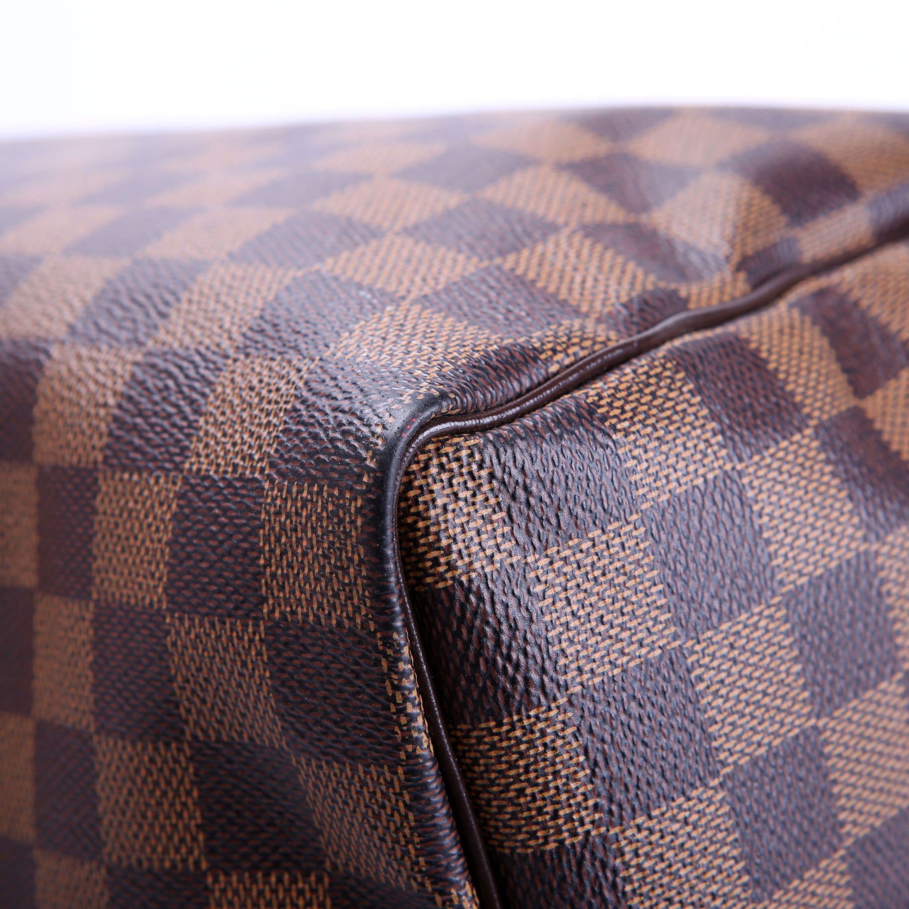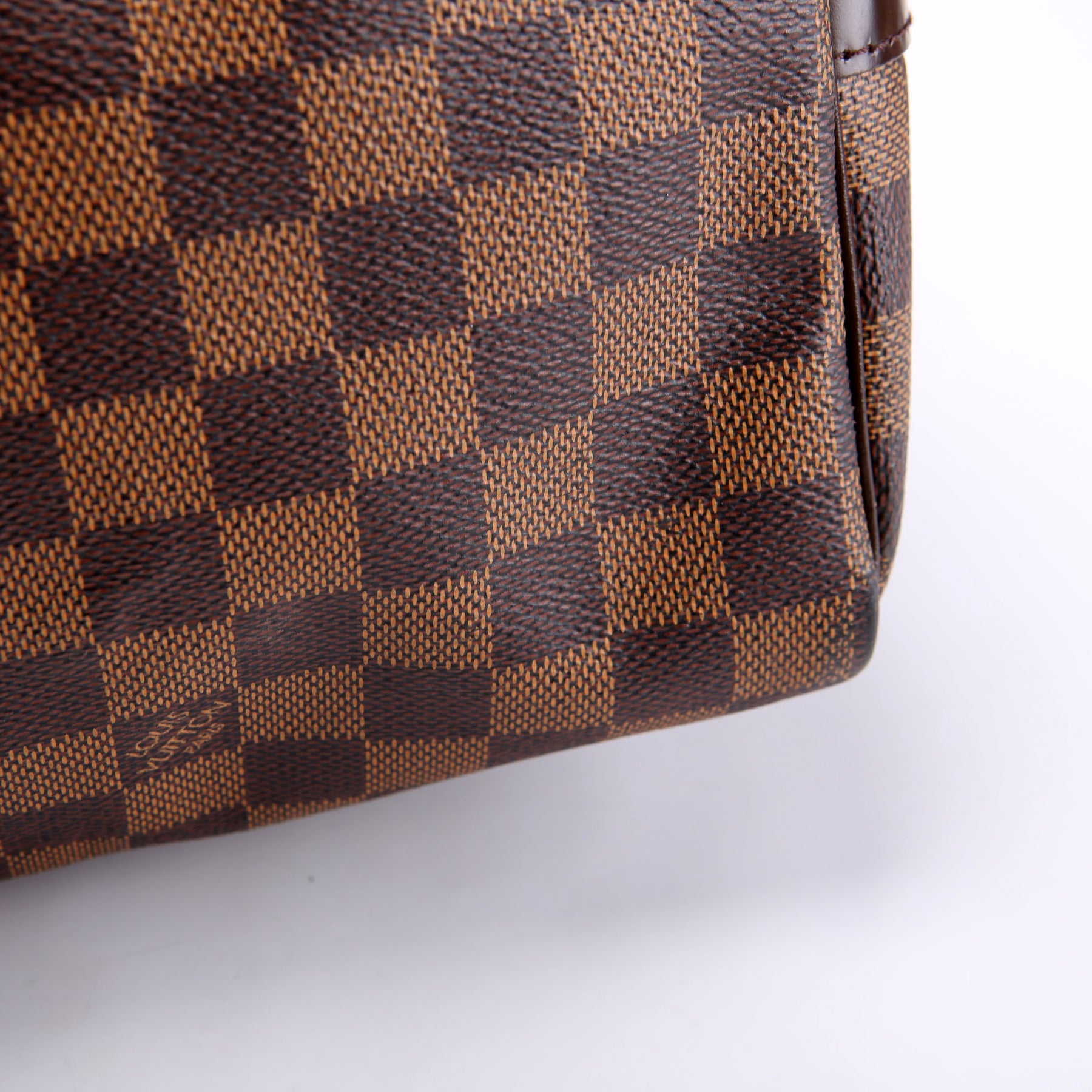 This pre-owned Louis Vuitton Speedy 35 Bandouliere is guaranteed 100% authentic. The exterior is in the classic Louis Vuitton Damier Ebene.