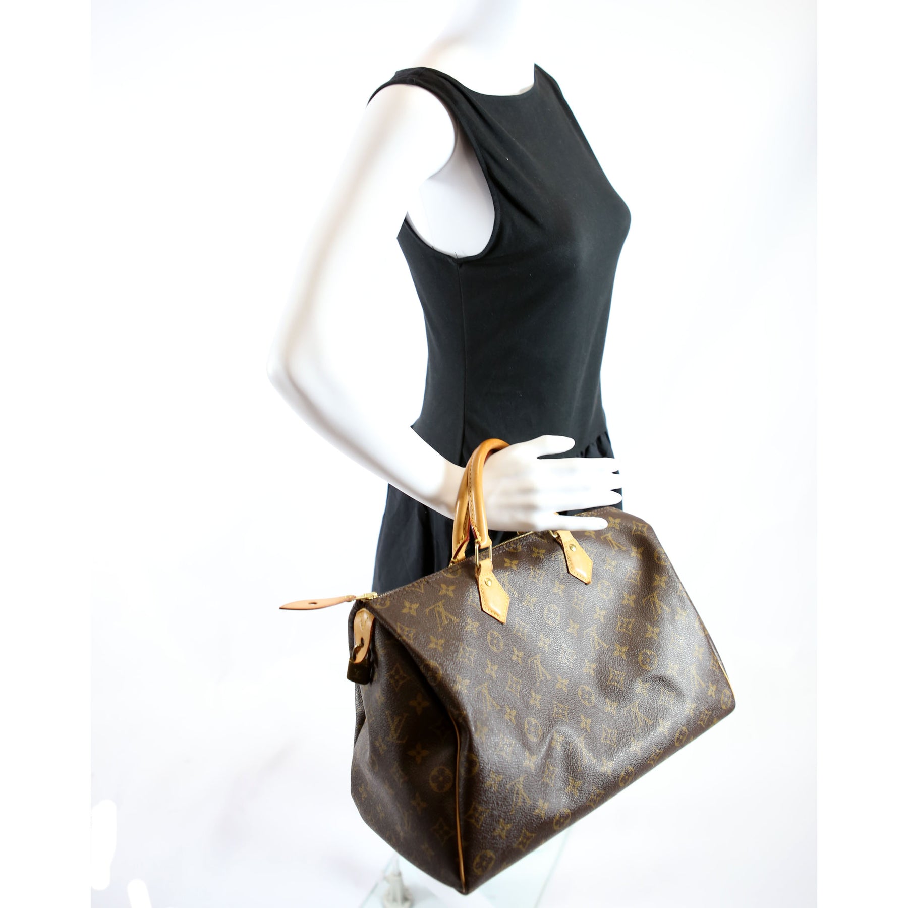 This pre-owned Louis Vuitton Speedy 35 Monogram is guaranteed 100% authentic. The exterior is in the classic Louis Vuitton Monogram Coated Canvas.